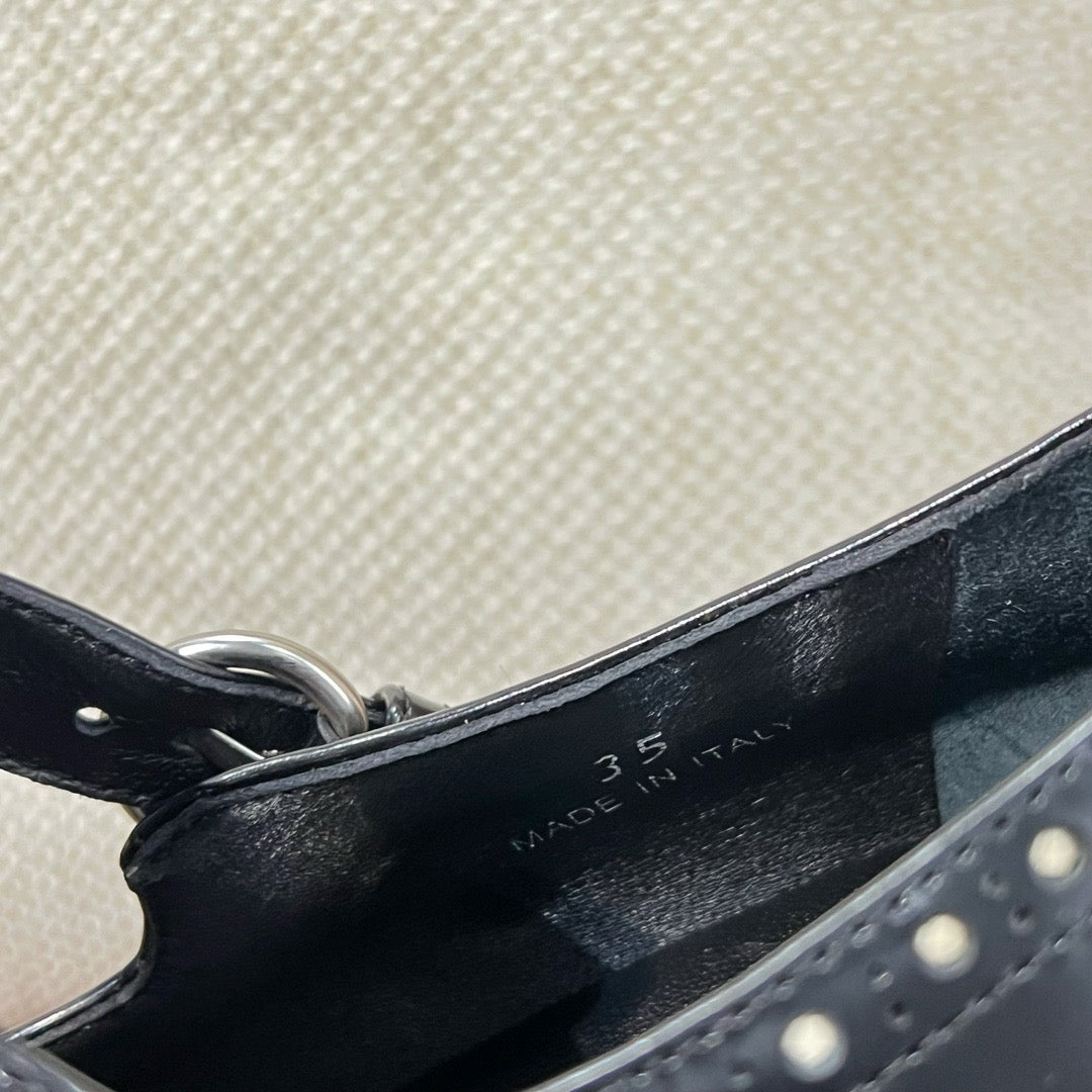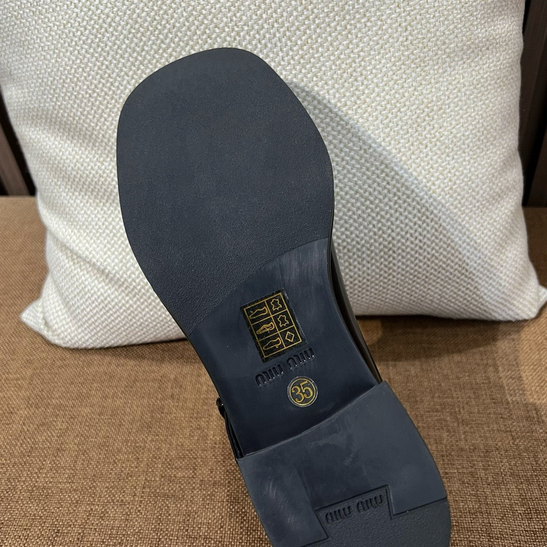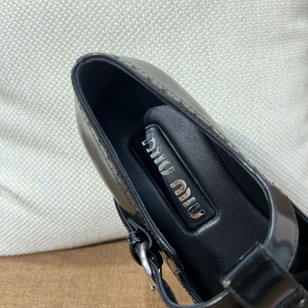 미우미우 브러쉬드 레더 티 스트랩 브로그 슈즈