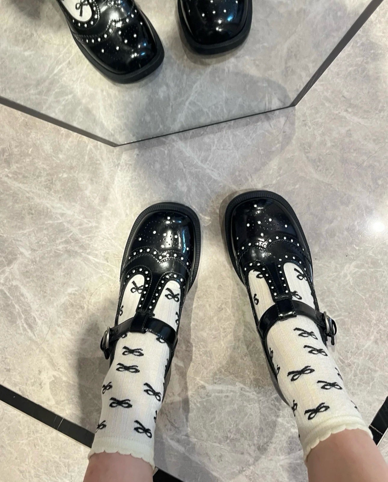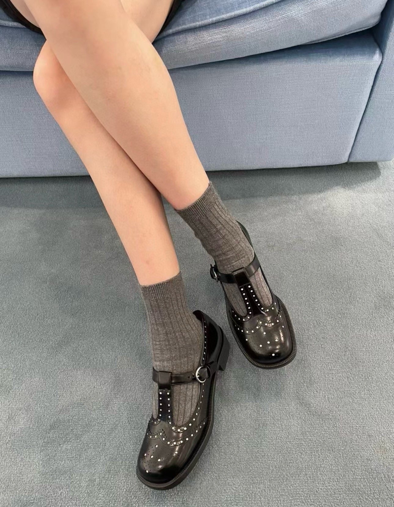 미우미우 브러쉬드 레더 티 스트랩 브로그 슈즈(Miu Miu Brushed Leather T-Strap Brogue Shoes)는 어떤 코디에 어울리나요?