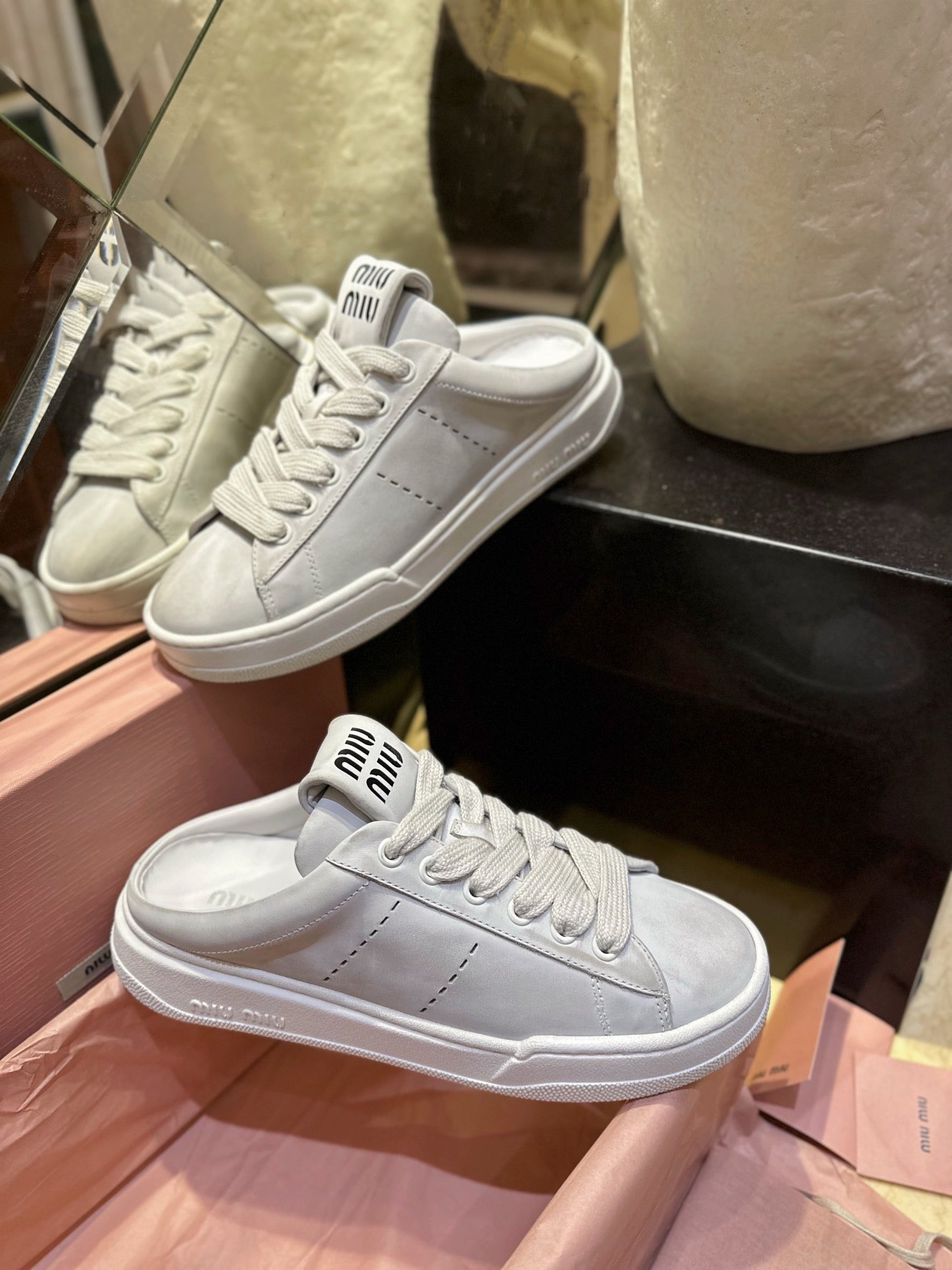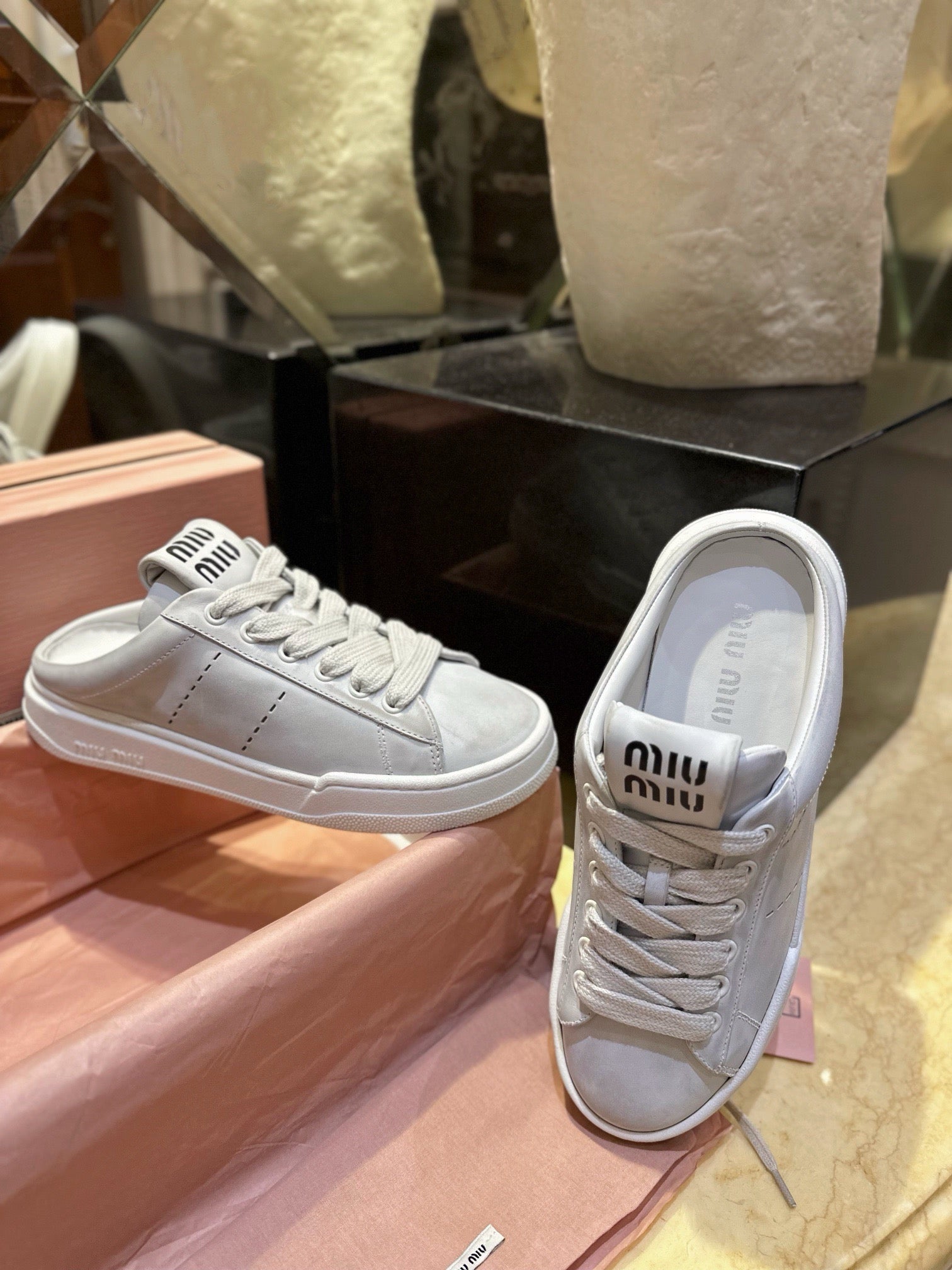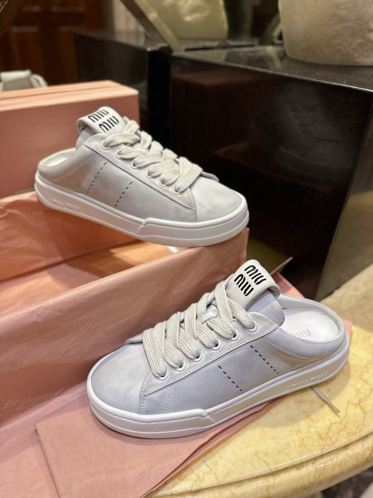 미우미우 블리치드 가죽 스니커즈 뮬(Miu Miu Bleached Leather Sneaker Mules) - 유니크한 감성의 데일리 슈즈