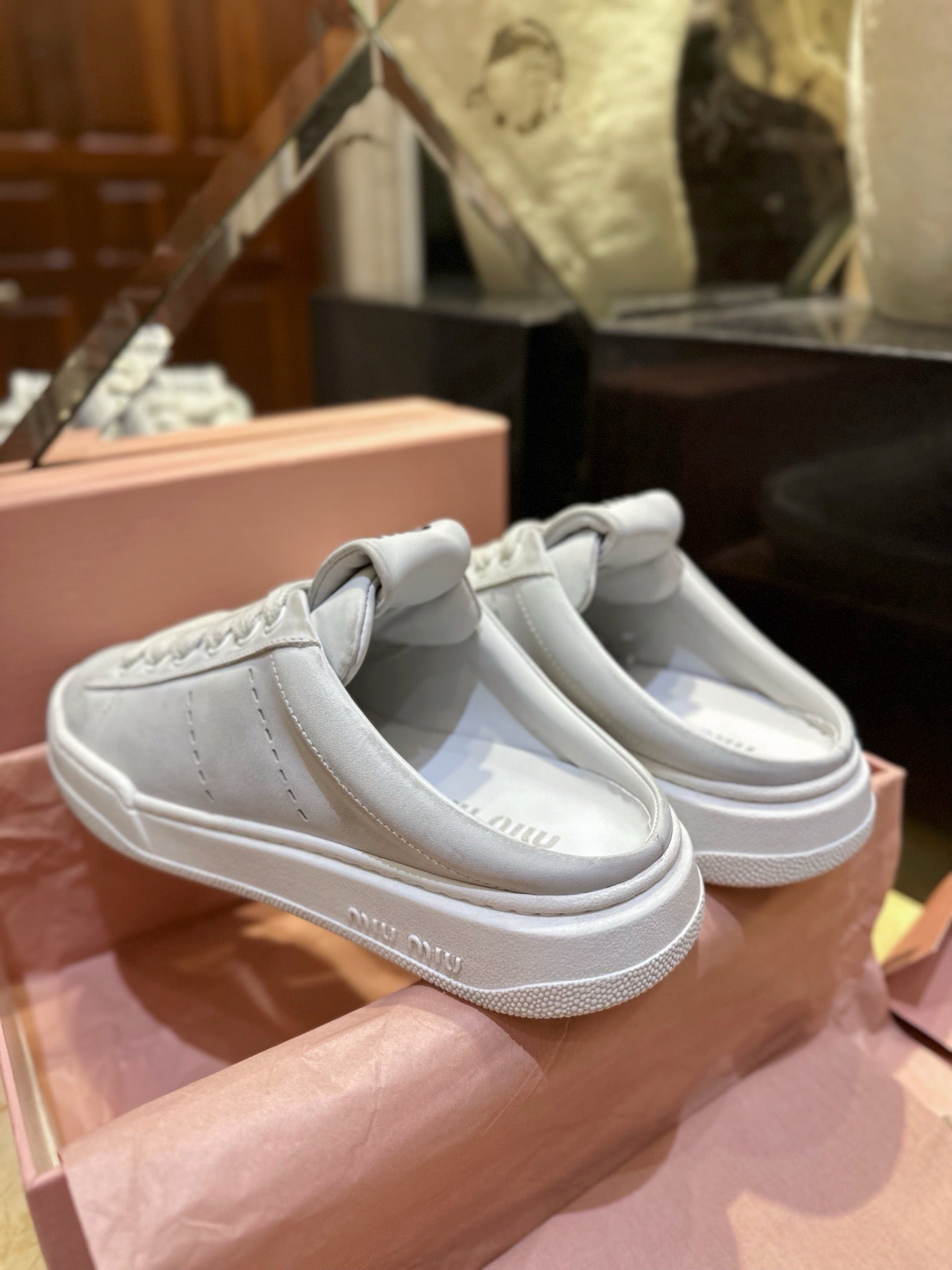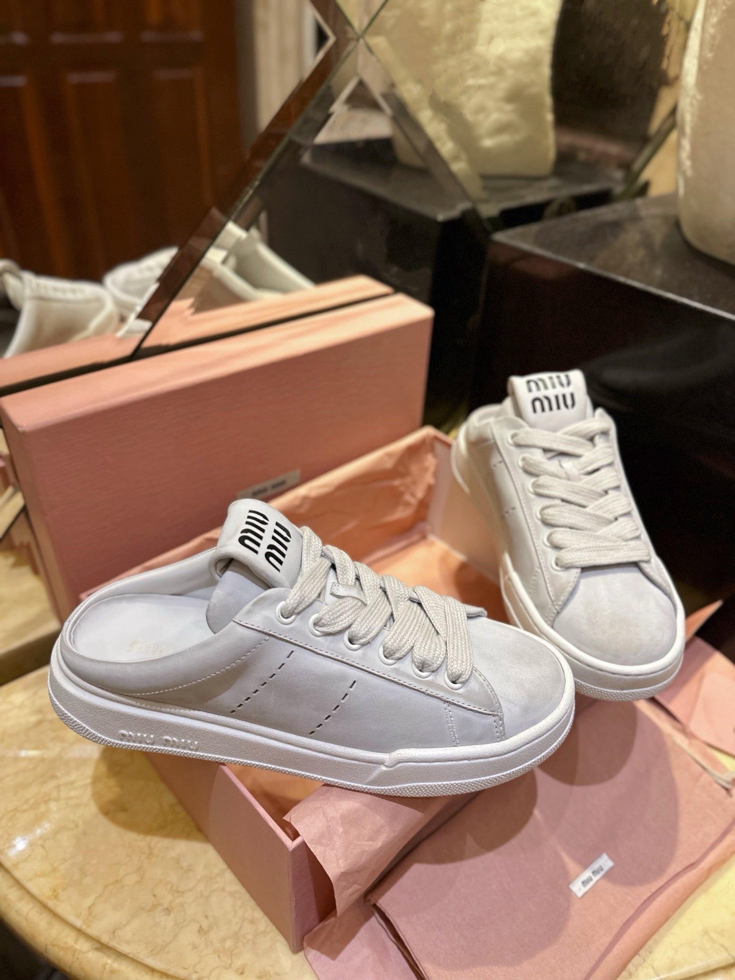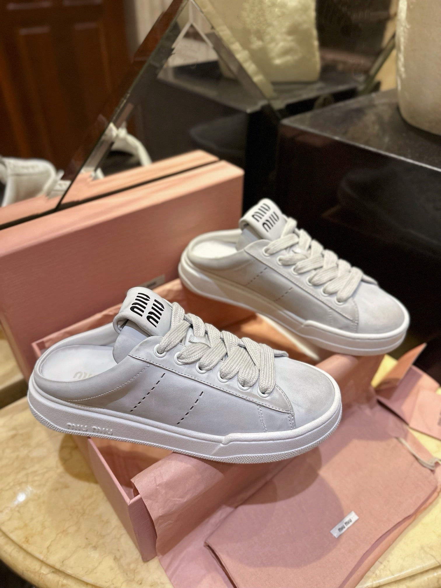 미우미우 블리치드 가죽 스니커즈 뮬(Miu Miu Bleached Leather Sneaker Mules) - 유니크한 감성의 데일리 슈즈