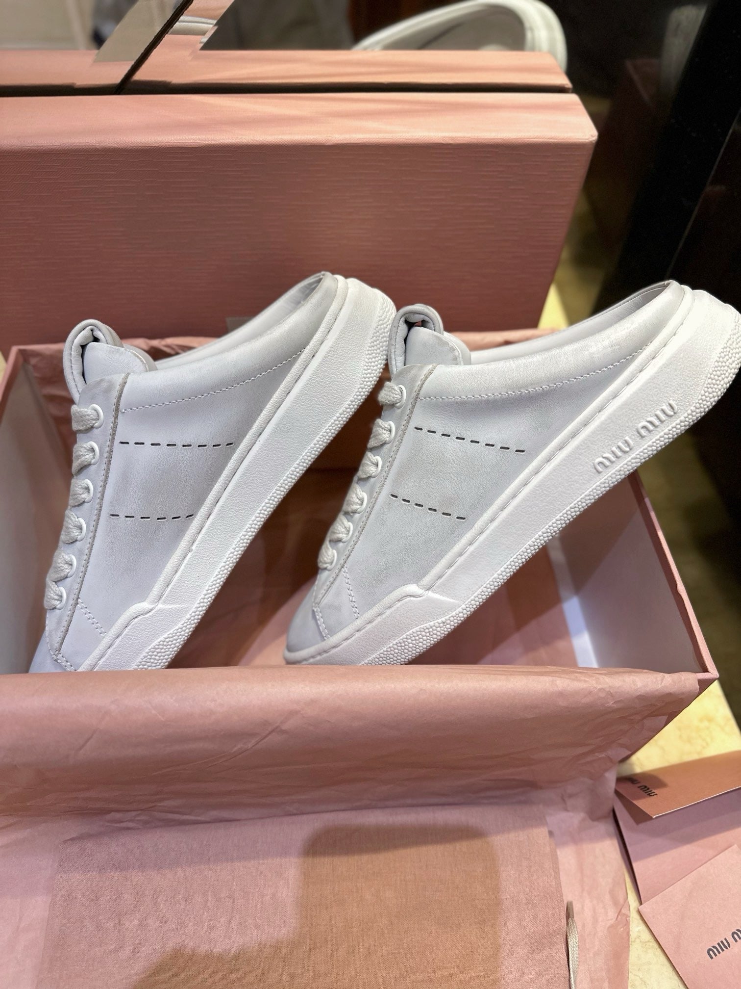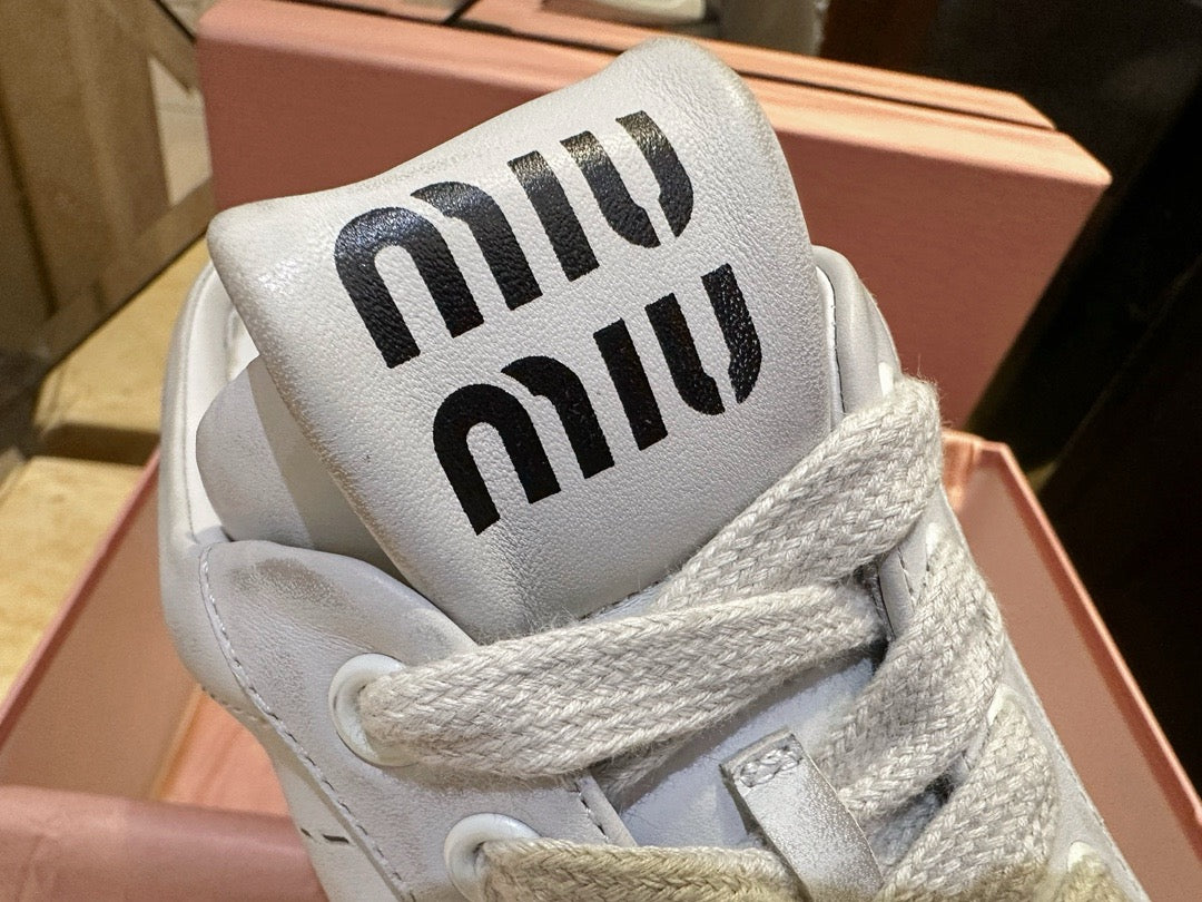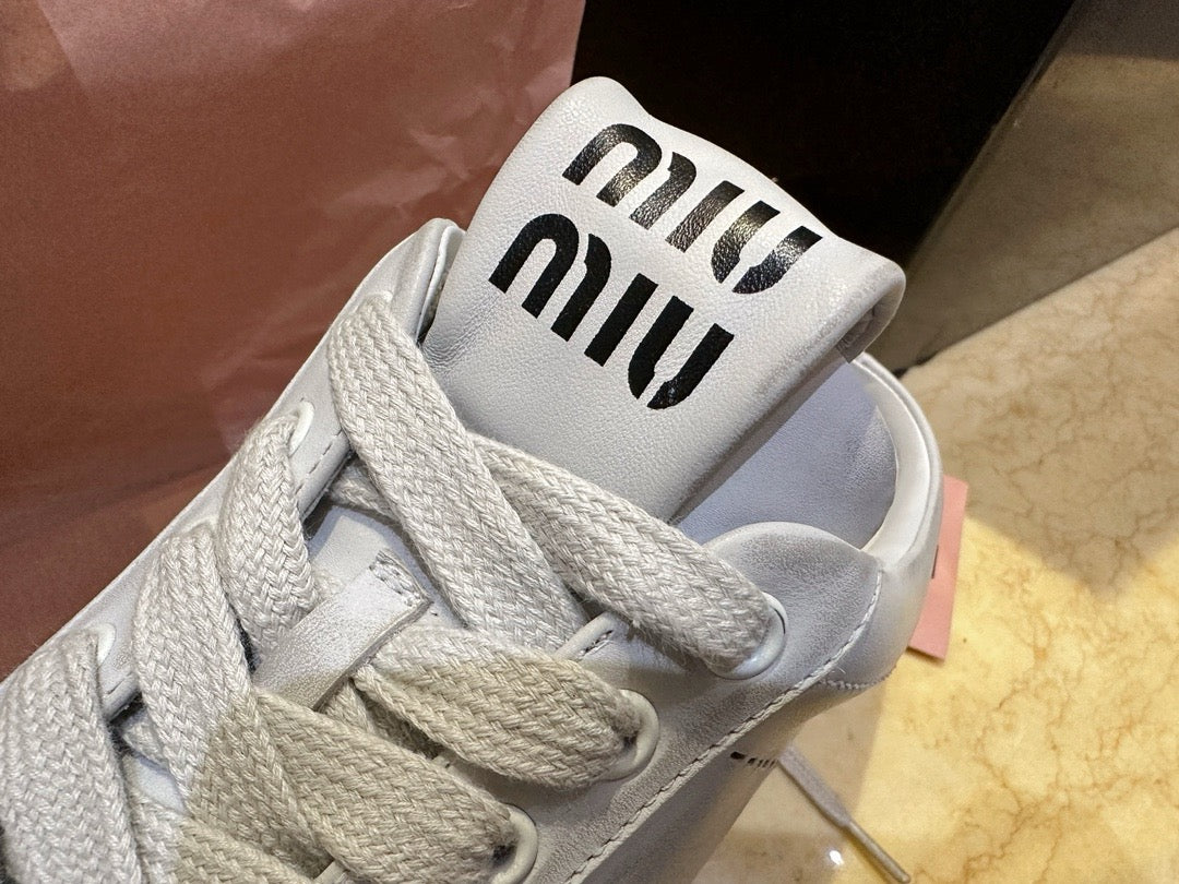 미우미우 블리치드 가죽 스니커즈 뮬