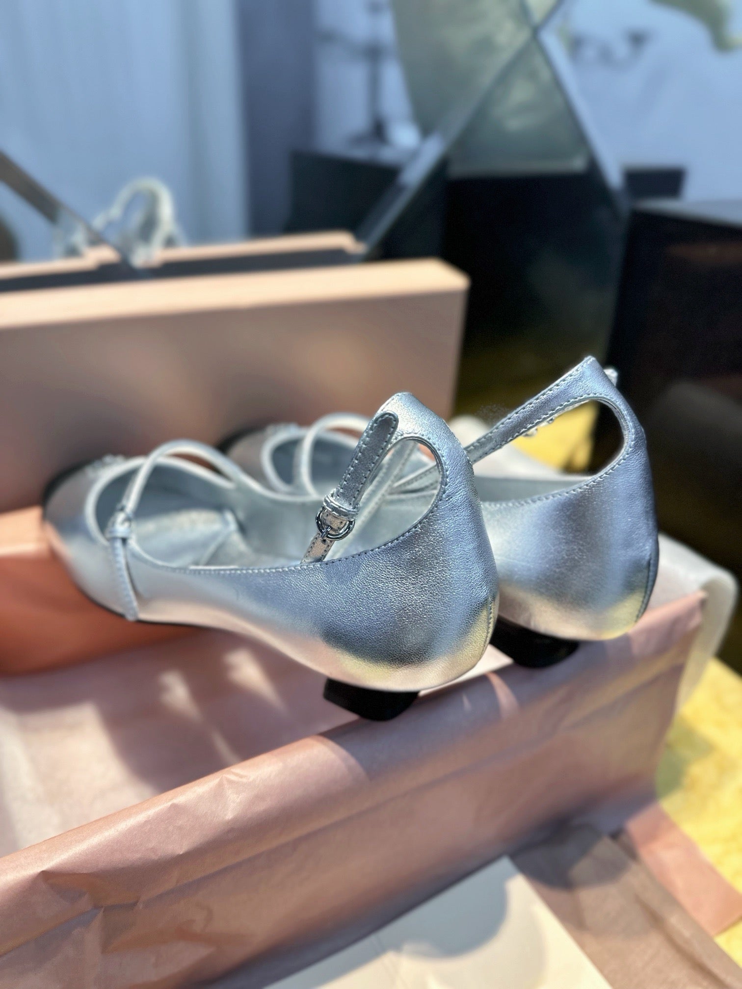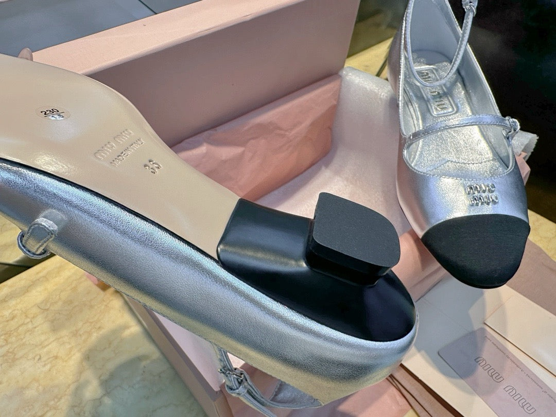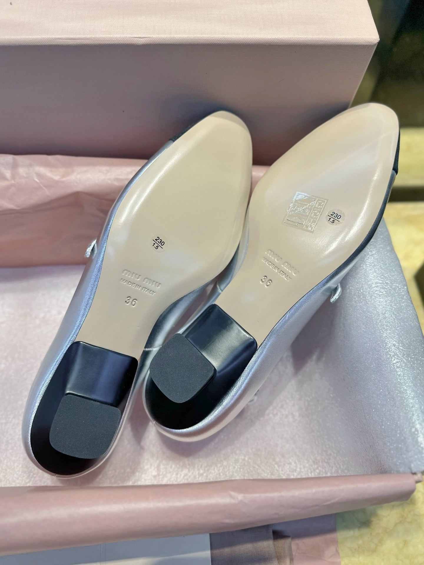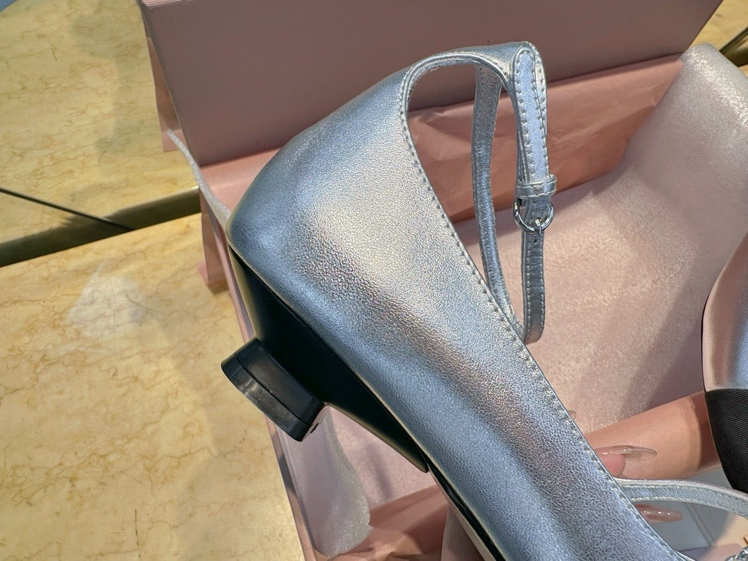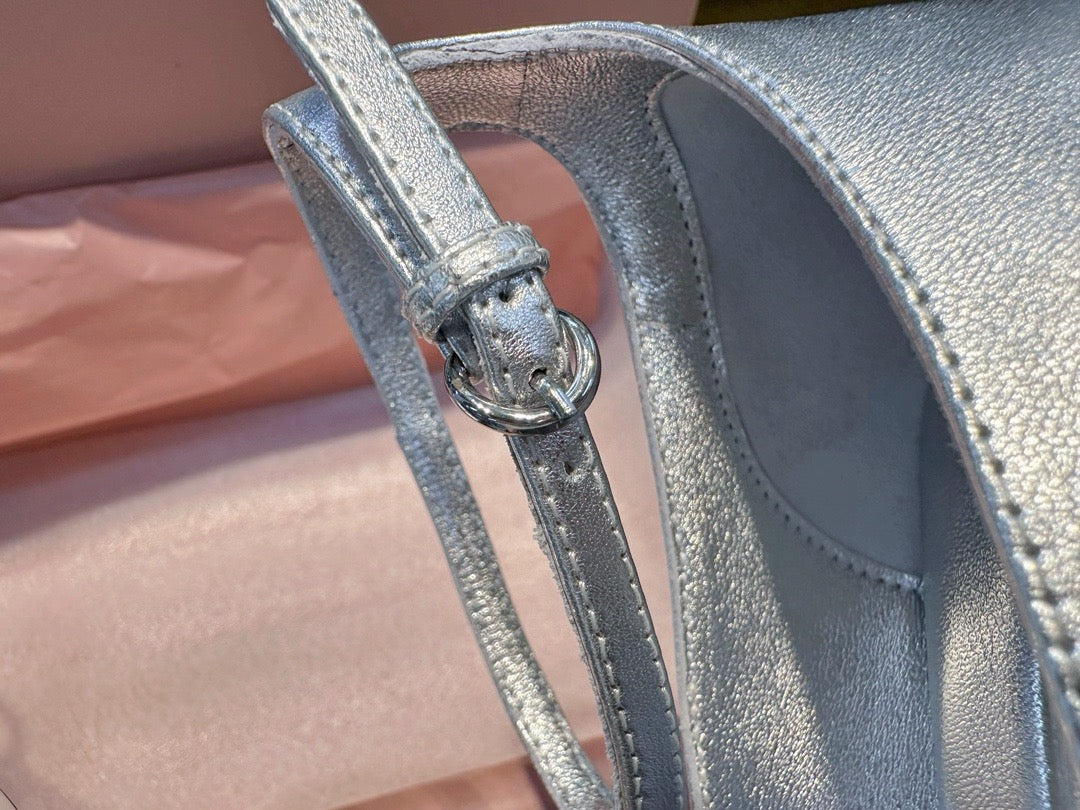 미우미우 사틴 샴브레이 크리스탈 슬링백 펌프스(Miu Miu Satin Chambray Crystal Slingback Pumps) - 빛나는 여성미를 담은 디자인