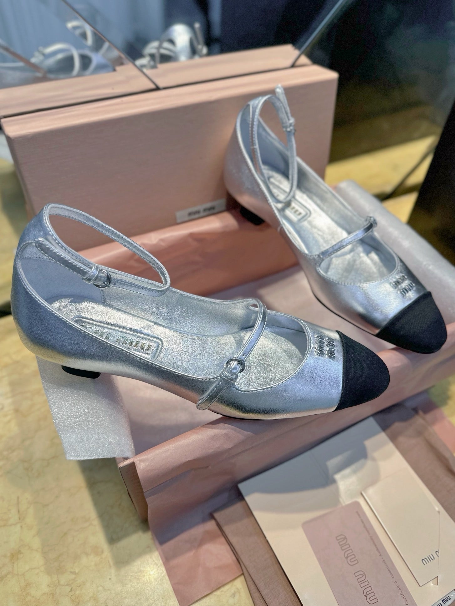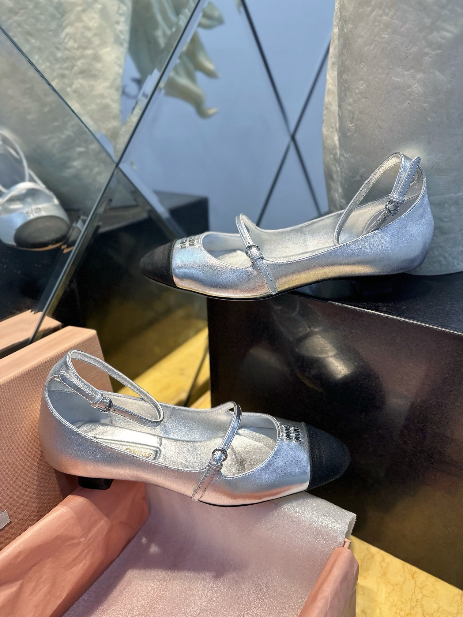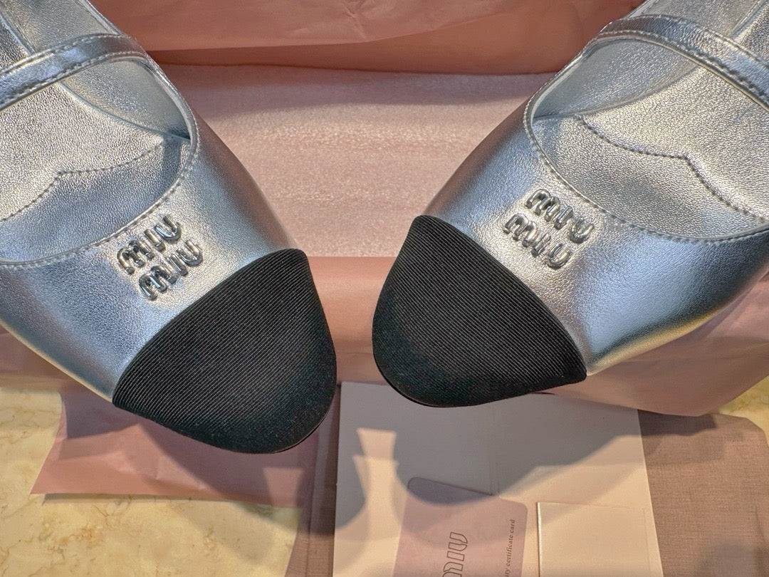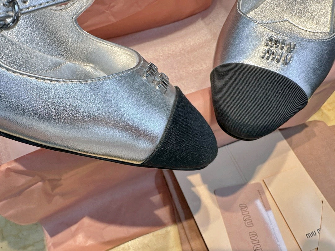 미우미우 사틴 샴브레이 크리스탈 슬링백 펌프스(Miu Miu Satin Chambray Crystal Slingback Pumps) - 빛나는 여성미를 담은 디자인