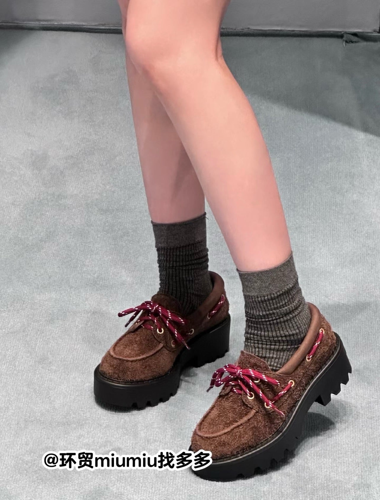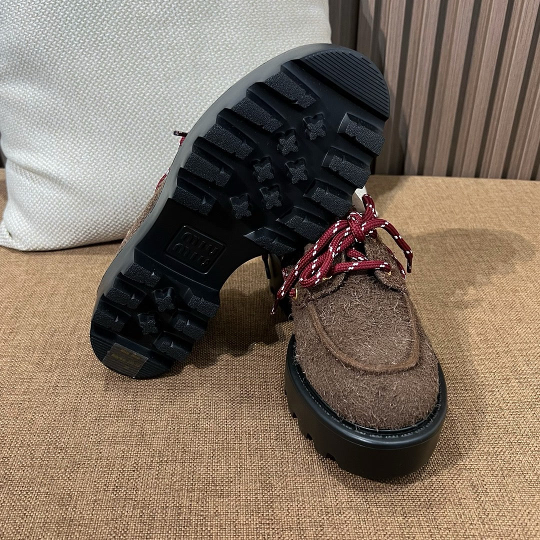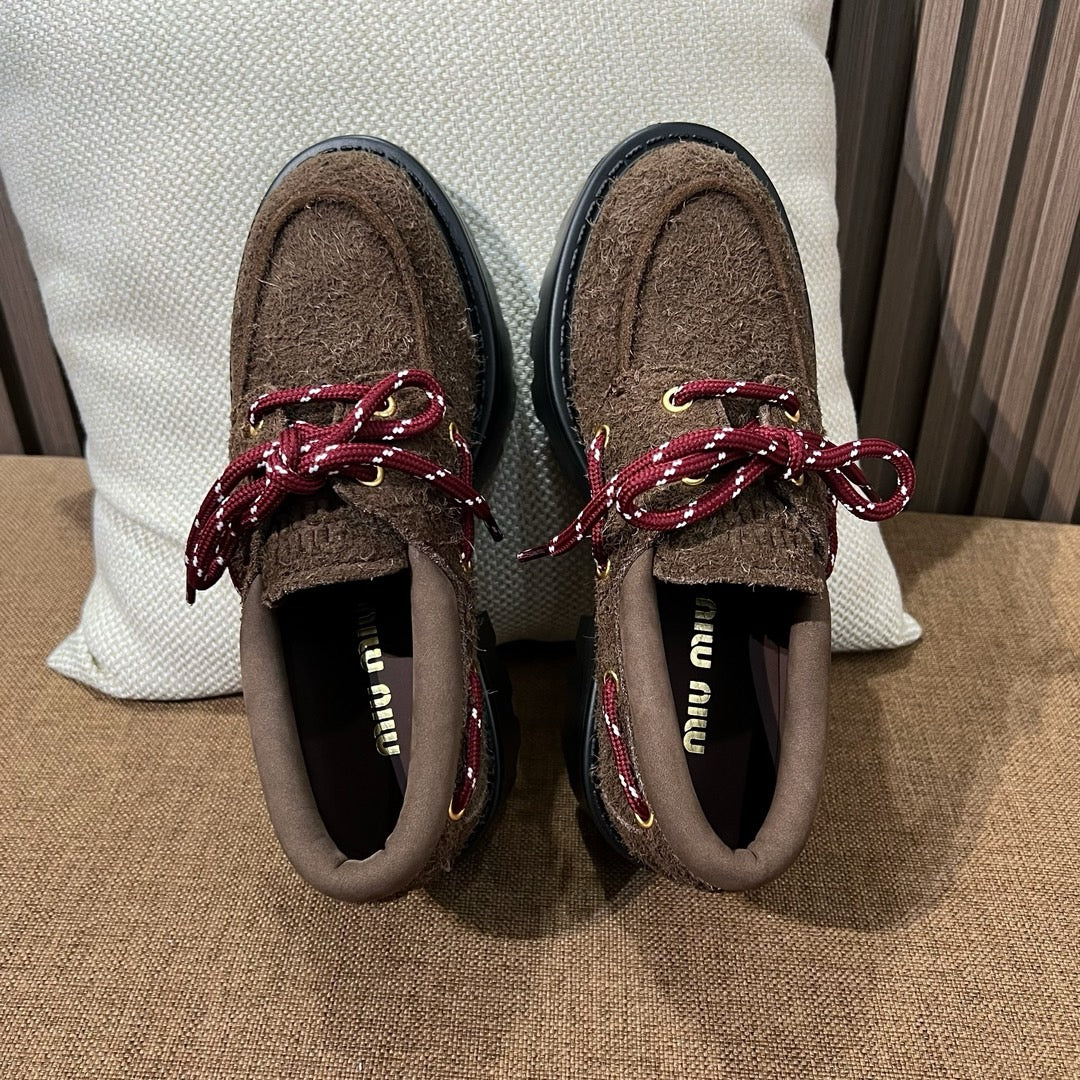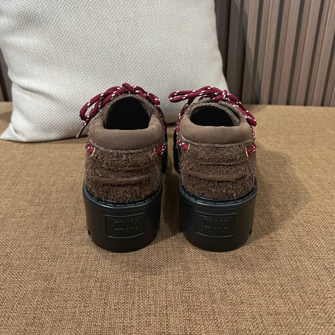 미우미우 스웨이드 레이스업 로퍼