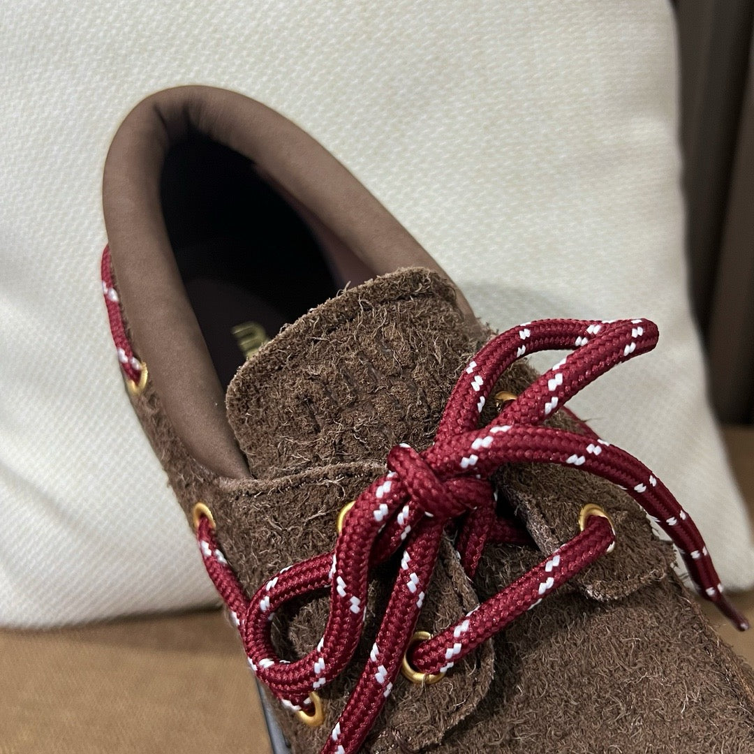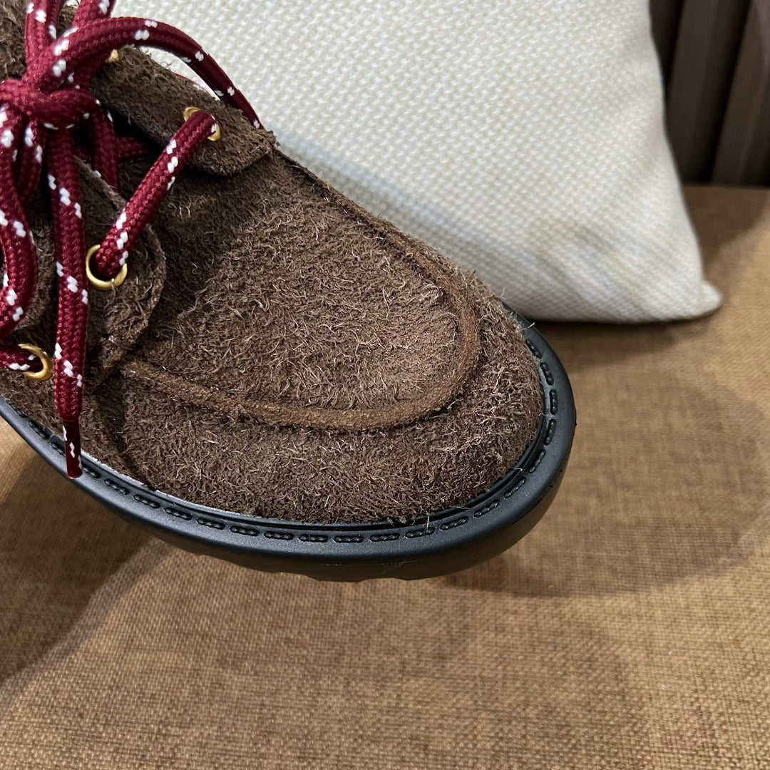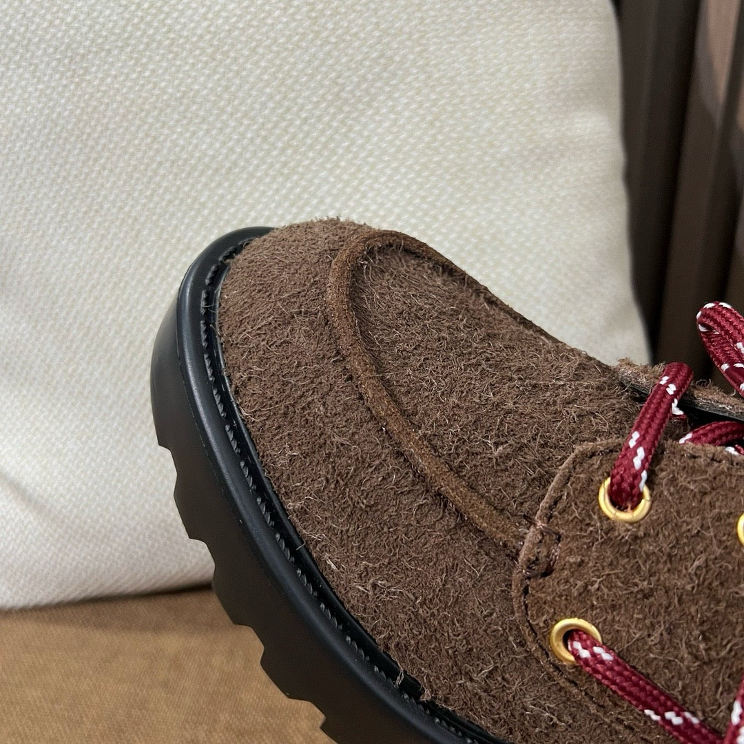 외피는 송아지 스웨이드 소재이며, 내부는 가죽 라이닝으로 되어 있어 통기성과 고급스러움을 동시에 갖췄습니다.
