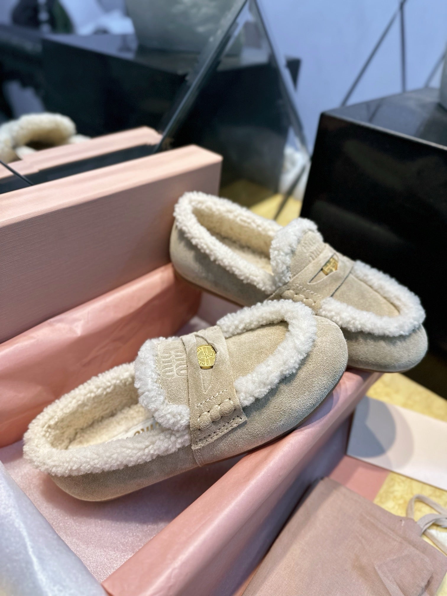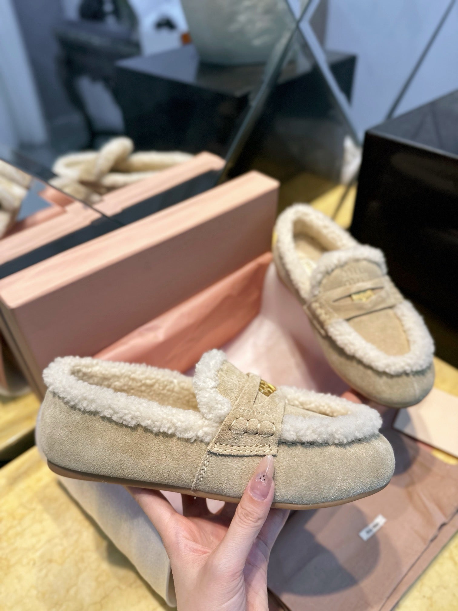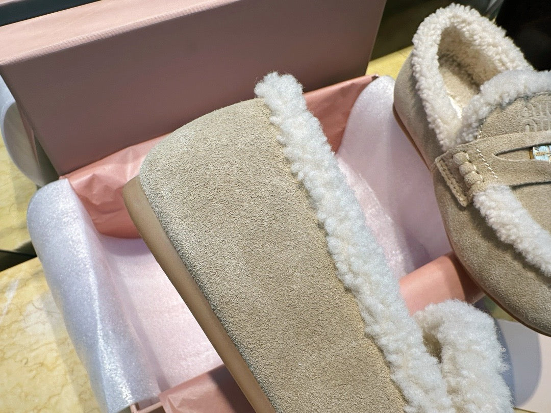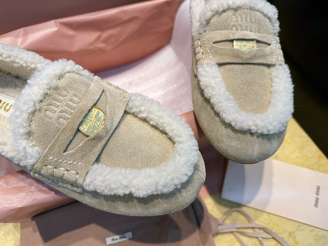 미우미우 시어링 스웨이드 로퍼(Miu Miu Shearling Suede Loafer)는 부드러운 스웨이드 소재와 풍성한 시어링(무스탕 라이닝)이 조화를 이루는 따뜻하고 고급스러운 여성 로퍼입니다. 클래식한 실루엣에 편안함과 포근함을 더해 겨울철 스타일의 필수 아이템으로 제격입니다.
