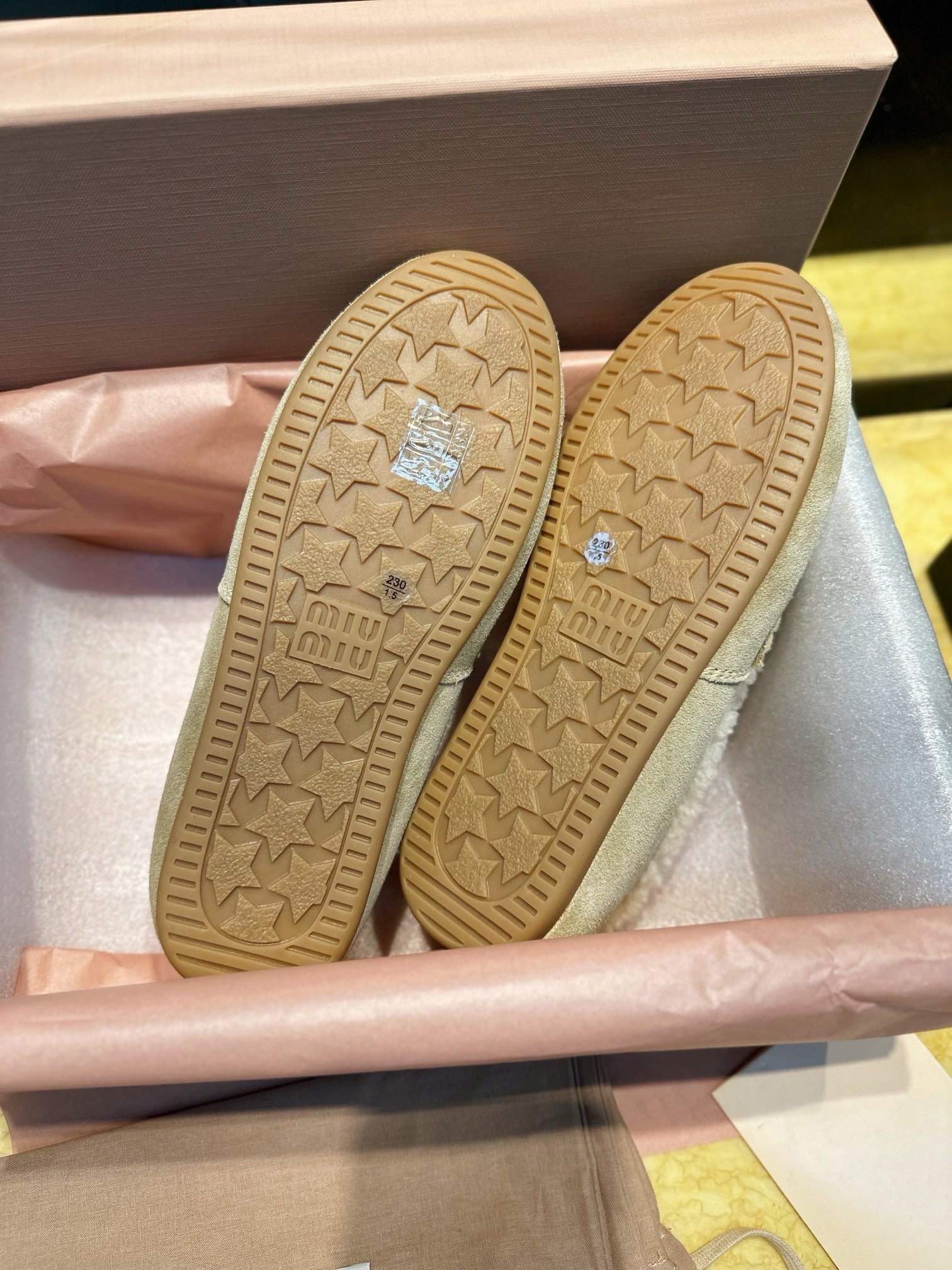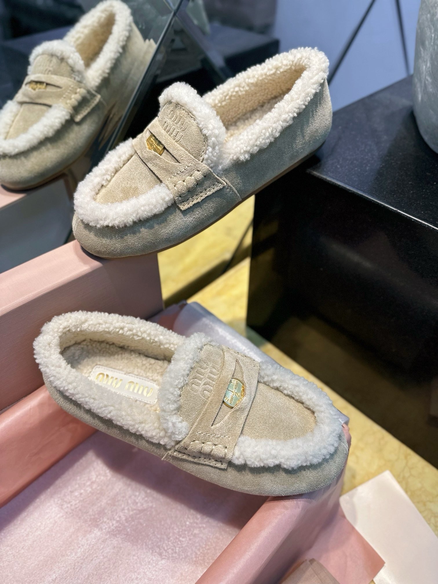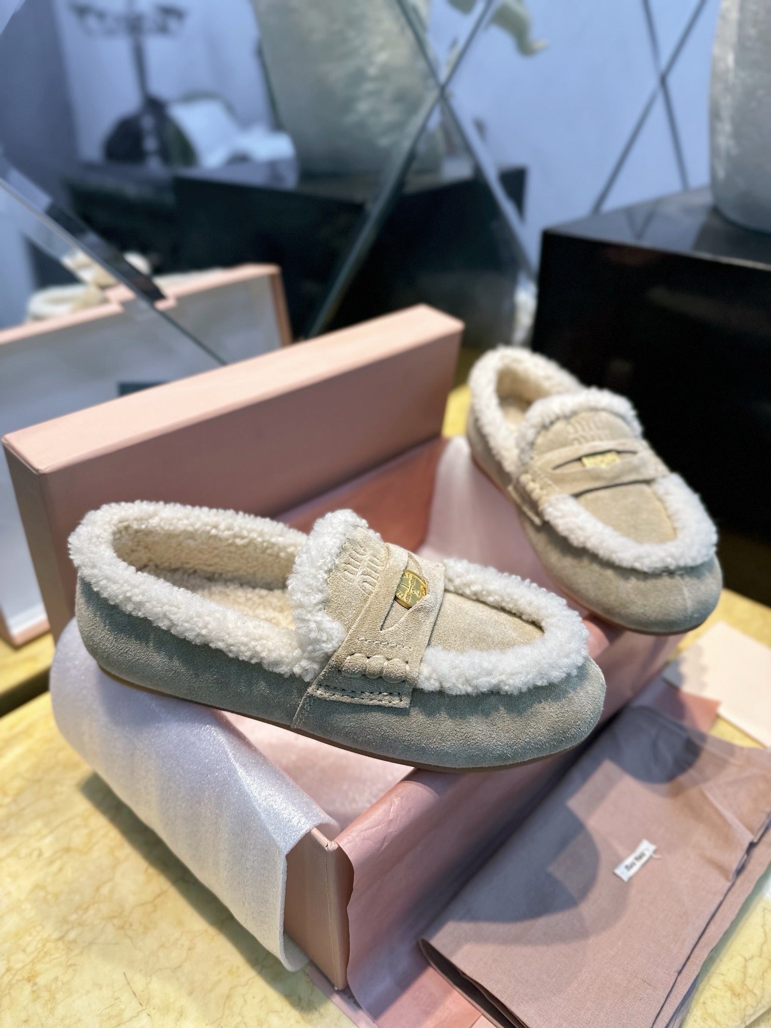 미우미우 시어링 스웨이드 로퍼(Miu Miu Shearling Suede Loafer)는 부드러운 스웨이드 소재와 풍성한 시어링(무스탕 라이닝)이 조화를 이루는 따뜻하고 고급스러운 여성 로퍼입니다. 클래식한 실루엣에 편안함과 포근함을 더해 겨울철 스타일의 필수 아이템으로 제격입니다.