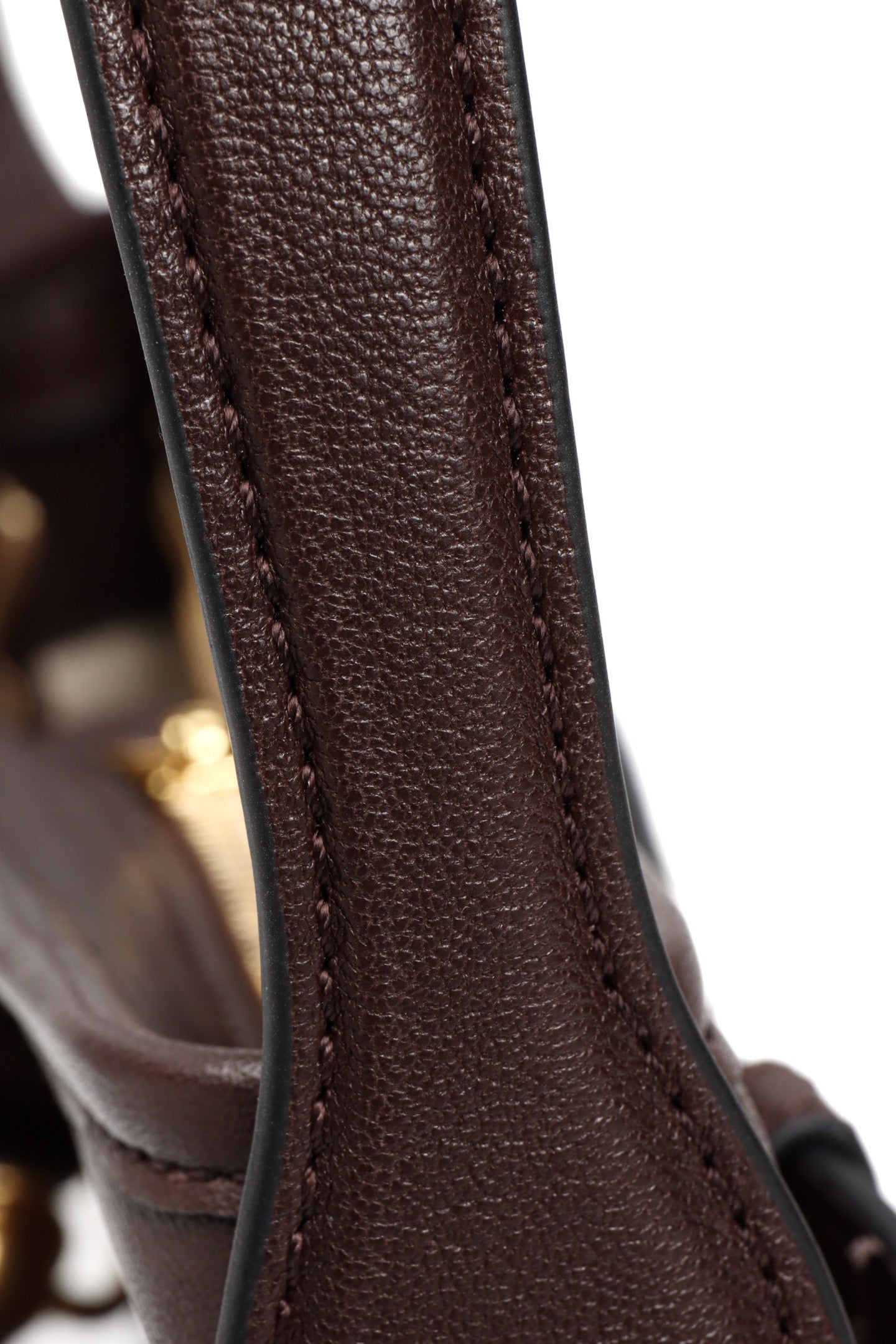 이 백은 2009년 미우미우 아카이브에서 영감을 받아 재해석된 디자인으로, 매끄럽고 부드러운 나파 가죽과 앤티크 골드톤 하드웨어가 조화를 이룹니다. 프론트 엠보싱 로고가 세련된 포인트로 작용하며, 구조적인 실루엣이 시크한 분위기를 완성합니다.