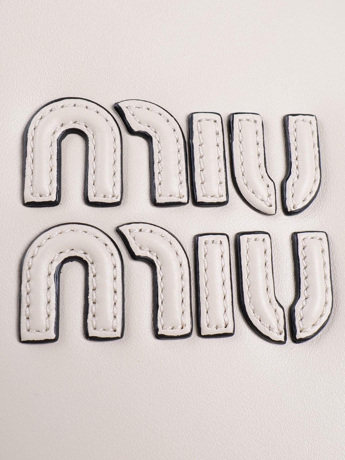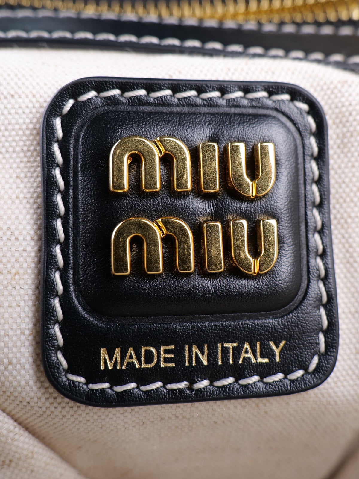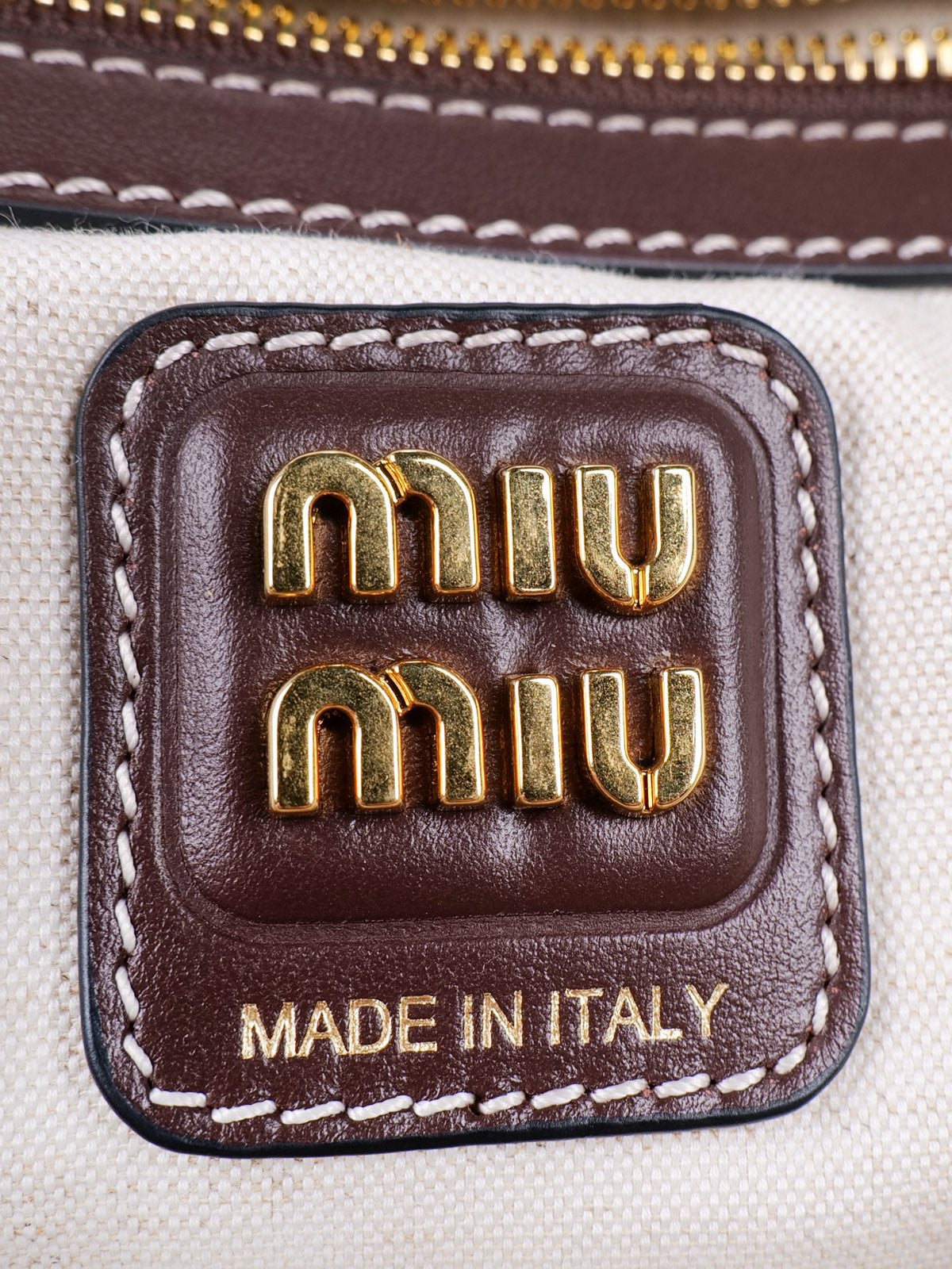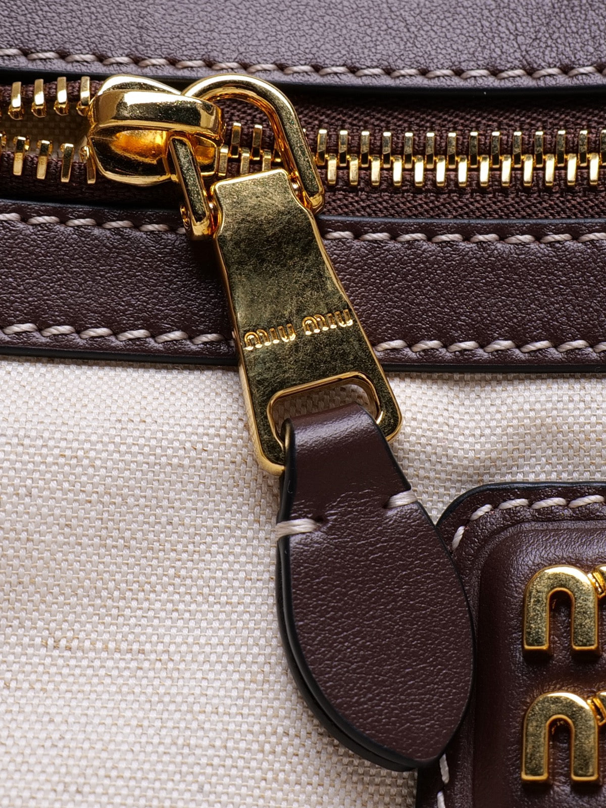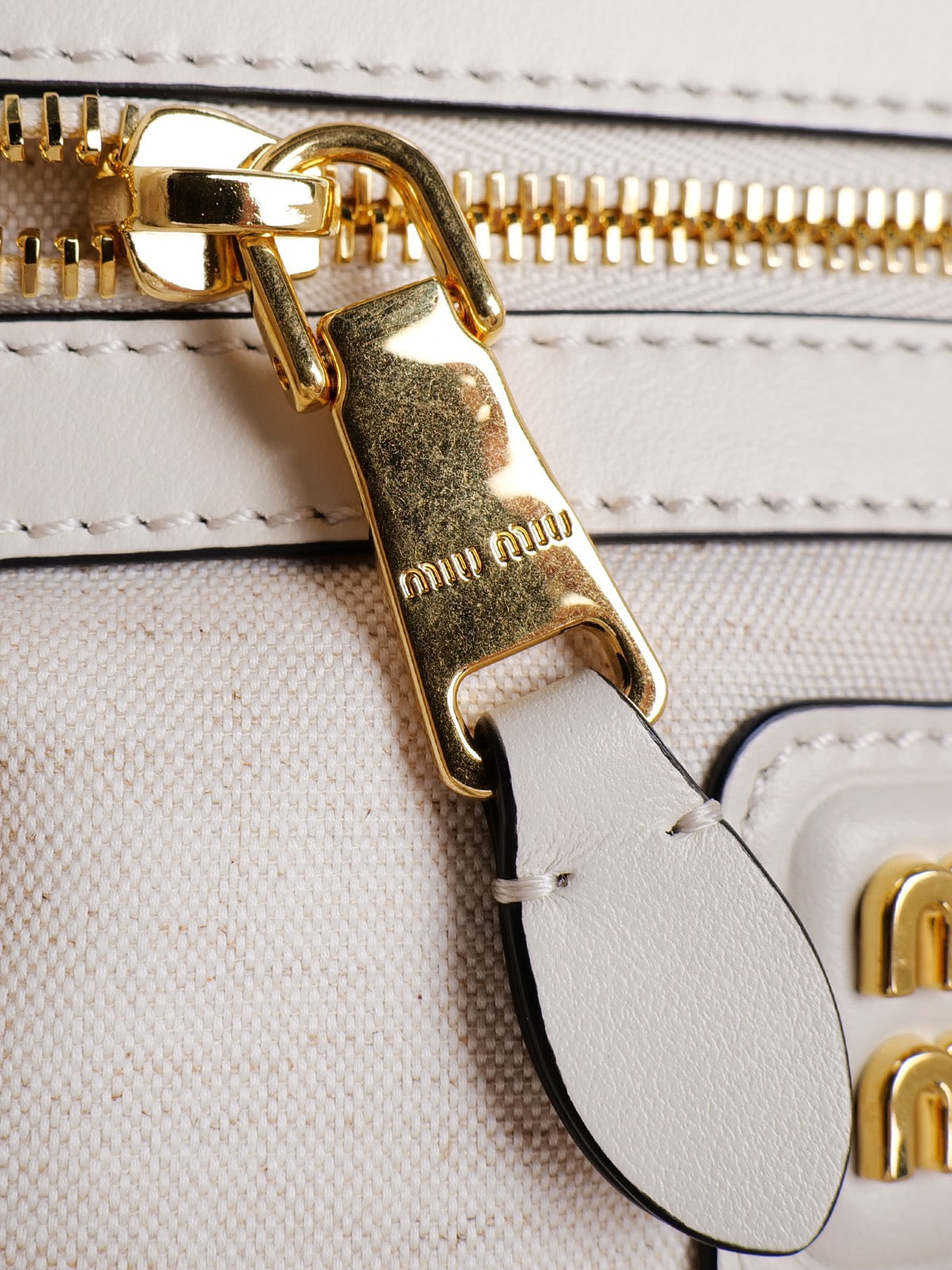 캔버스 외피, 소가죽 트리밍, 미우미우 로고 프린팅