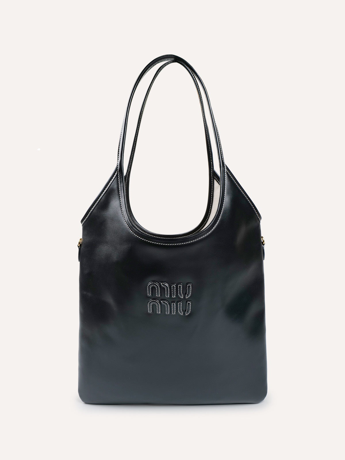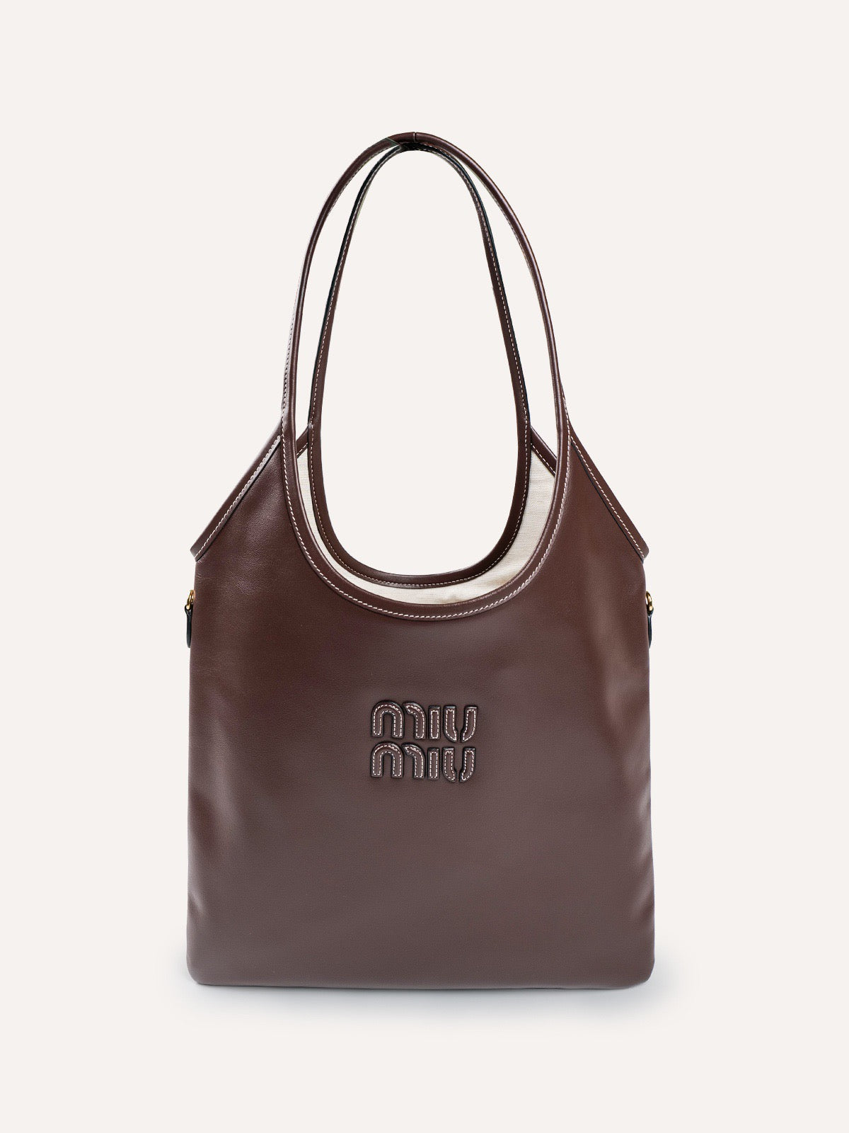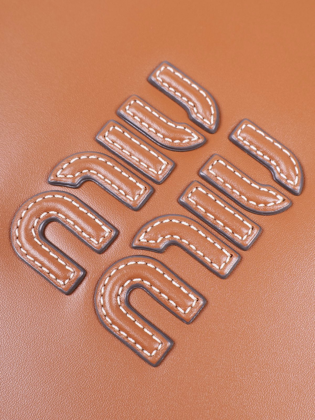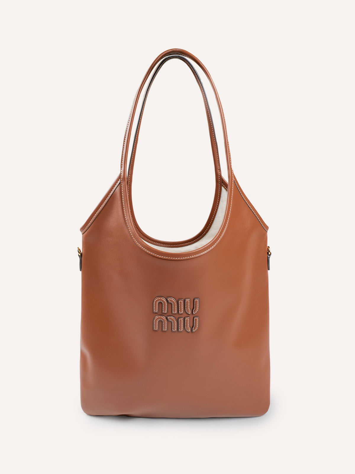 캔버스 외피, 소가죽 트리밍, 미우미우 로고 프린팅