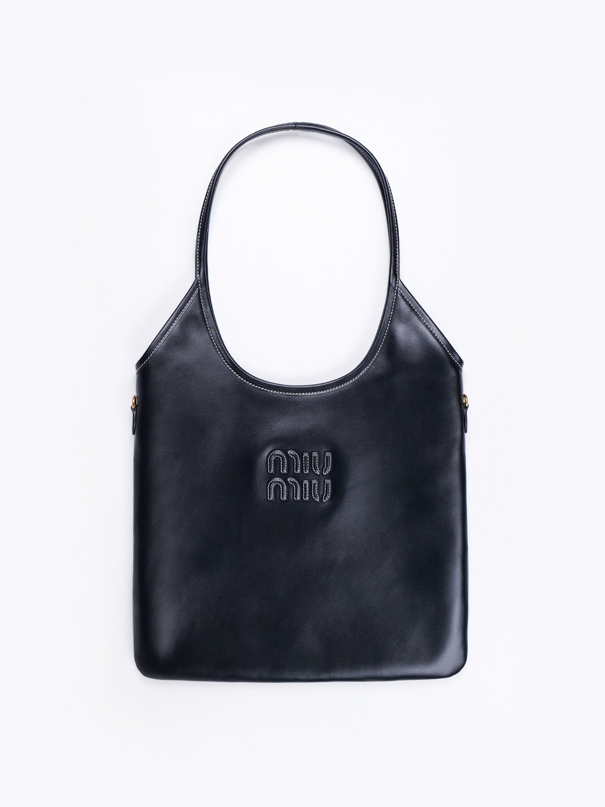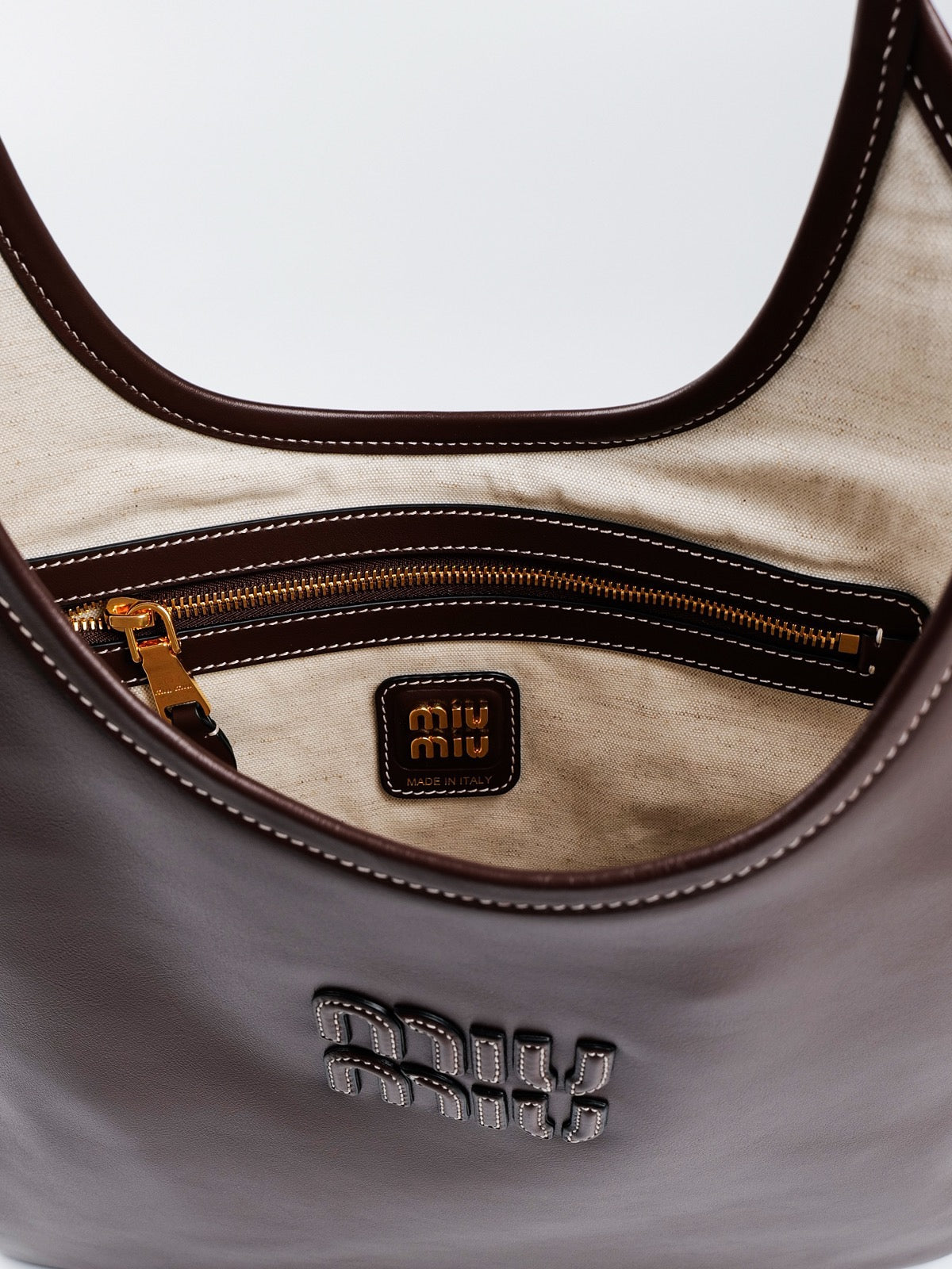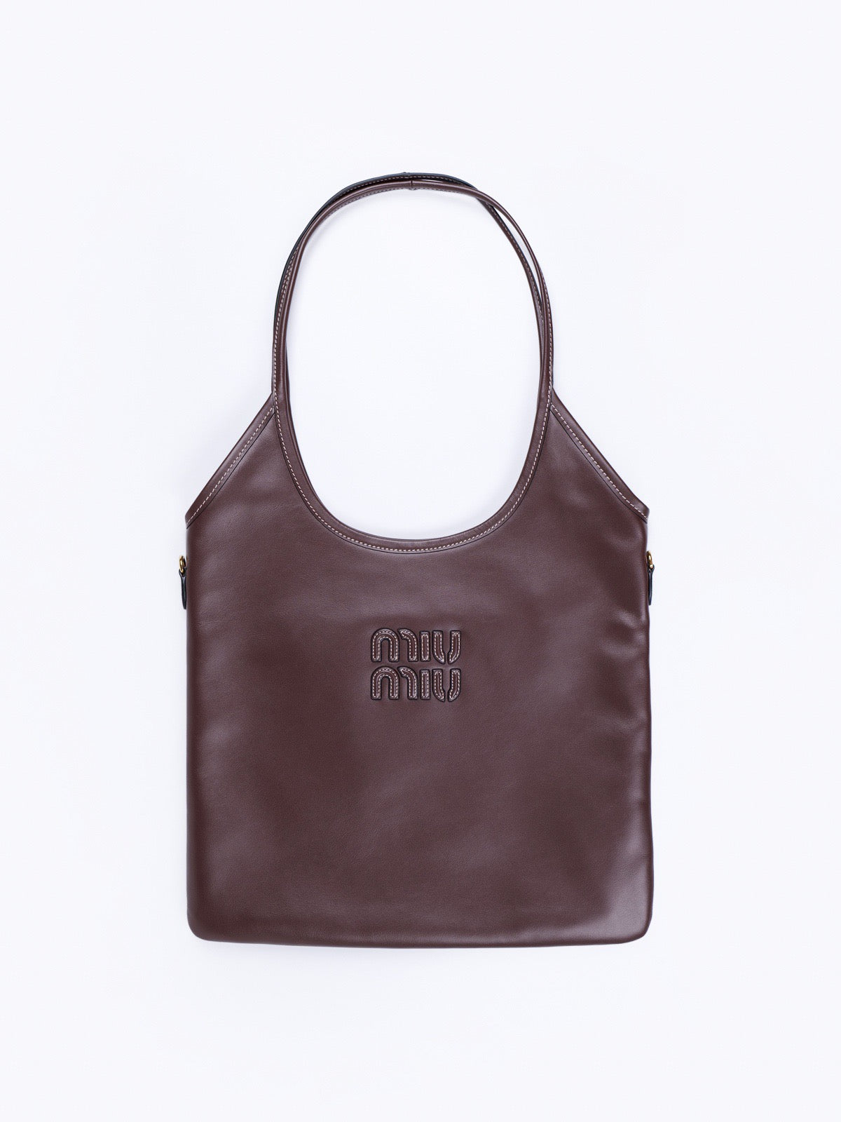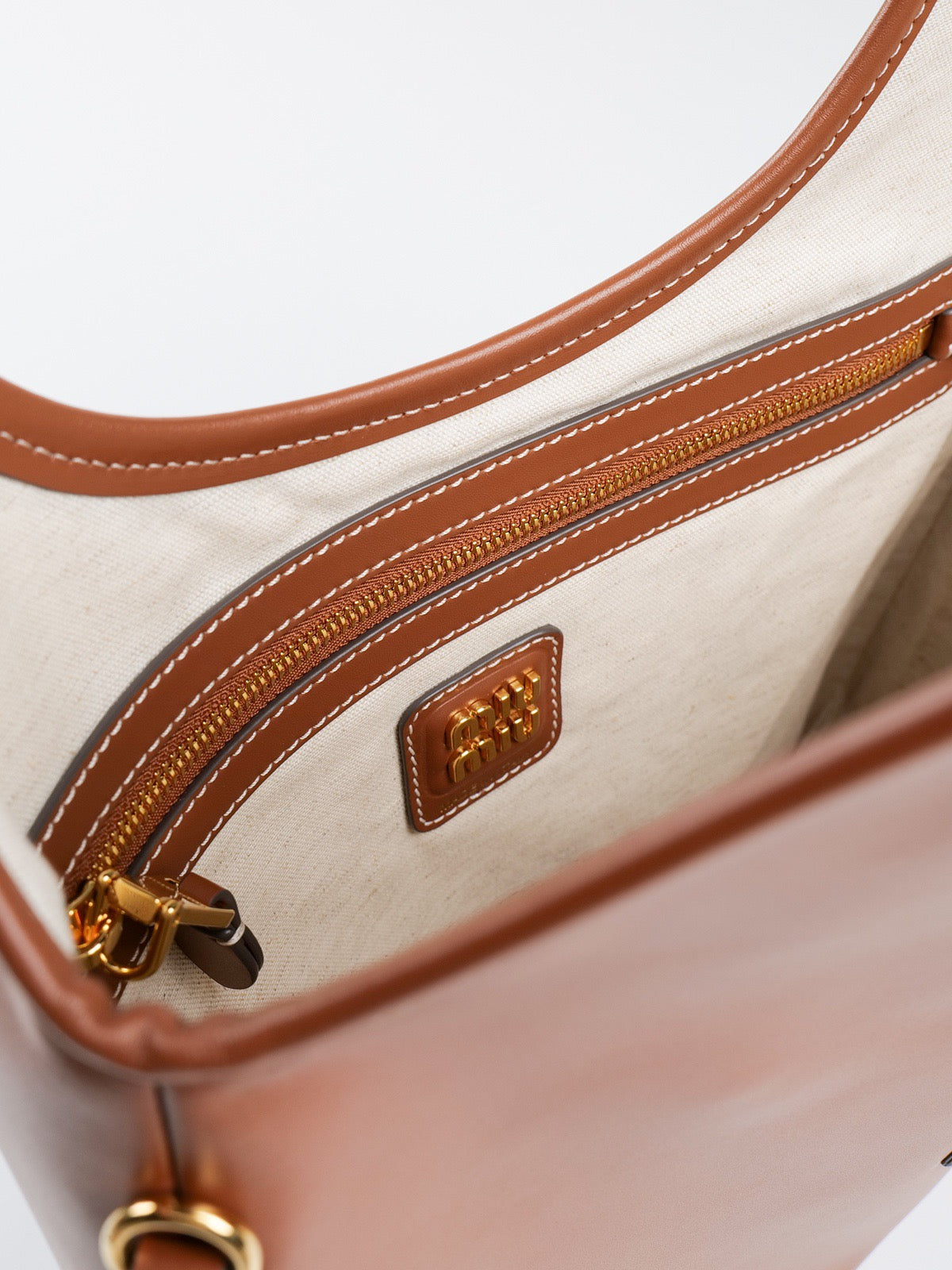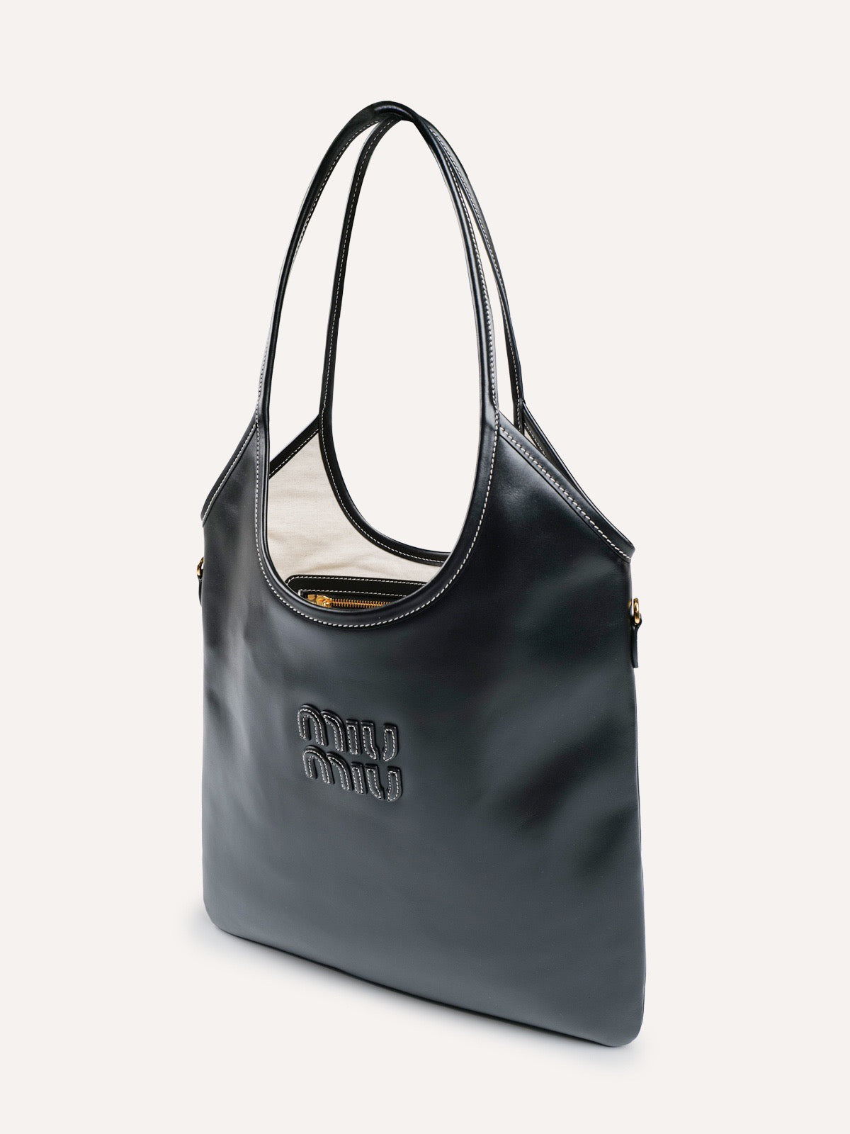 캔버스 외피, 소가죽 트리밍, 미우미우 로고 프린팅