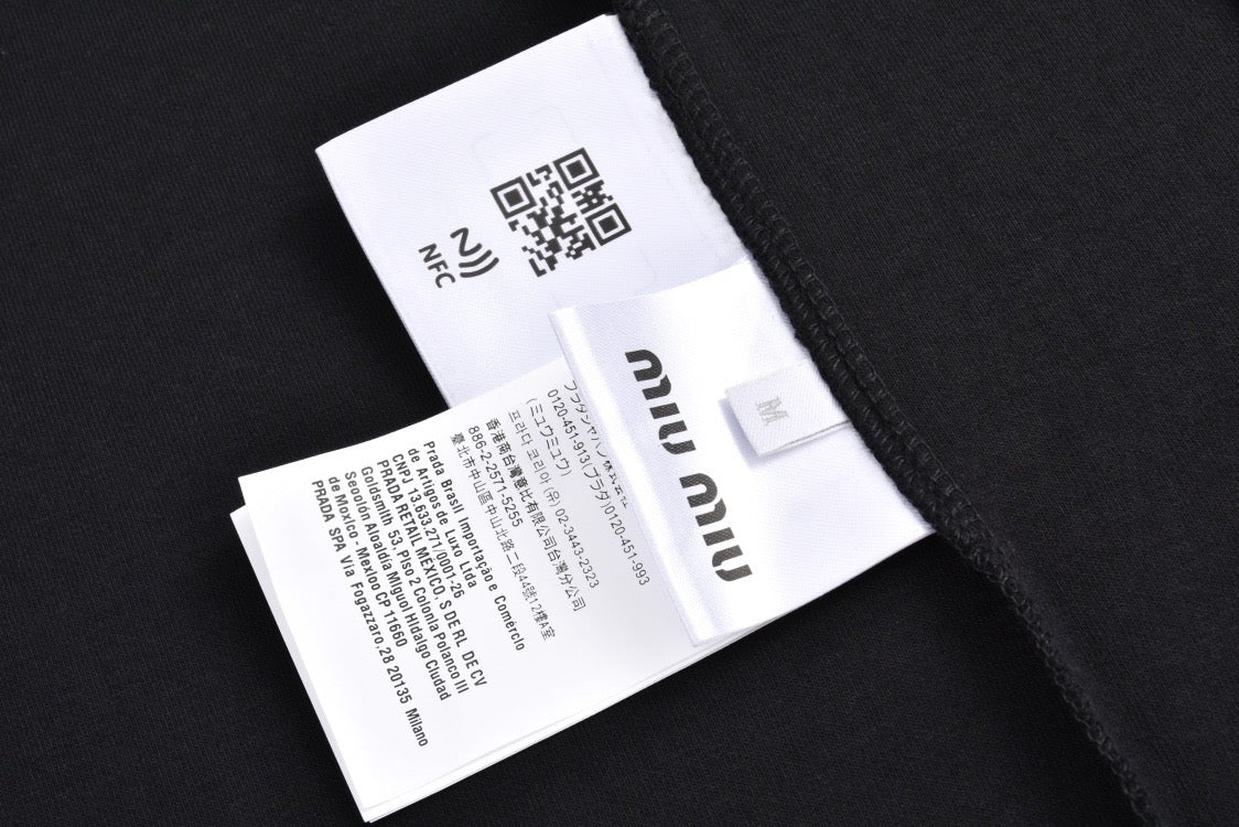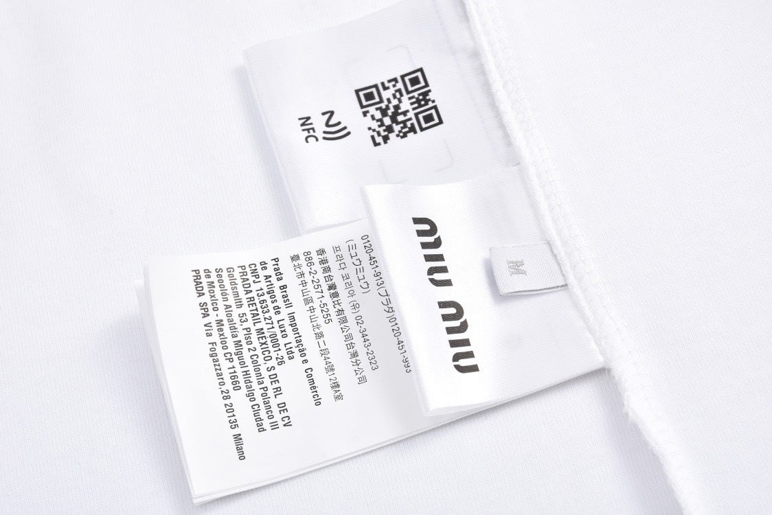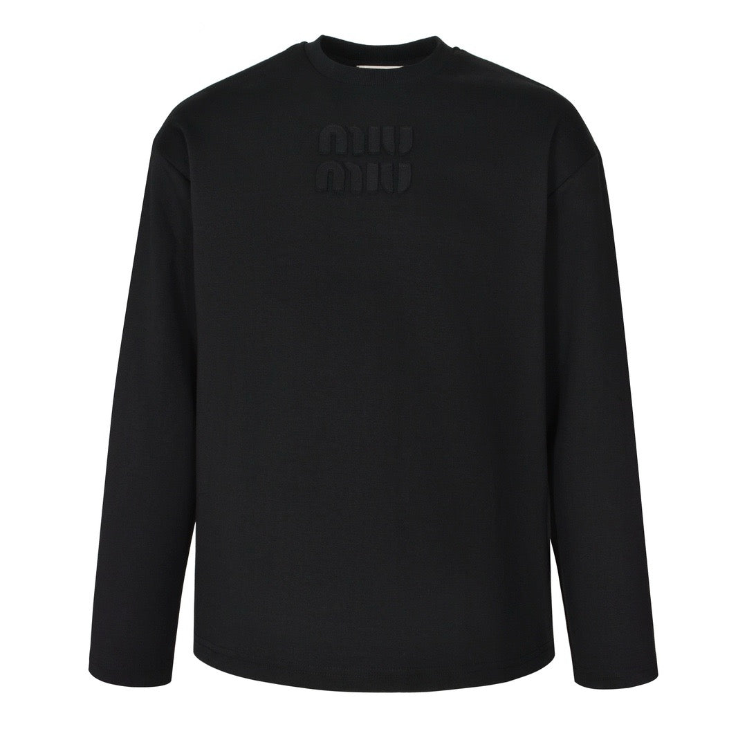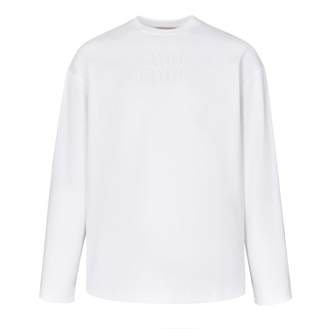 미우미우 자수 로고 롱슬리브 코튼 티셔츠