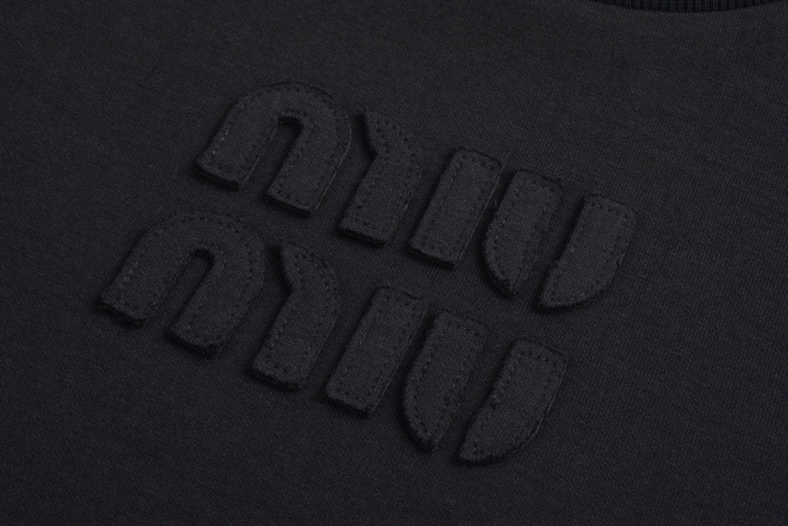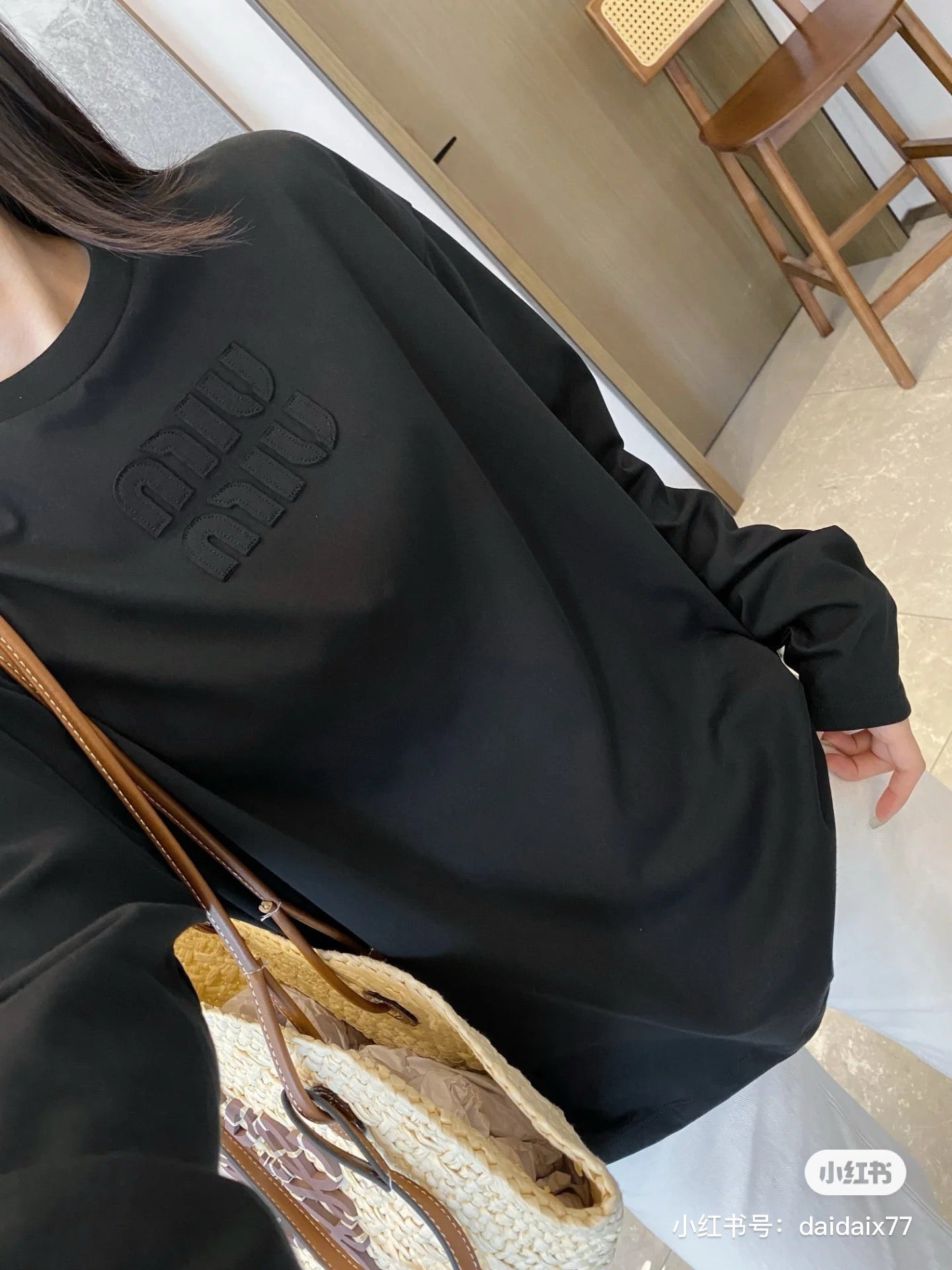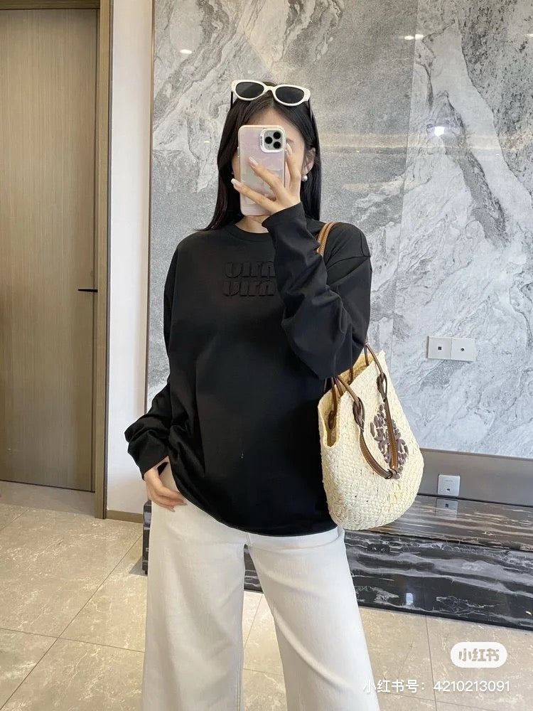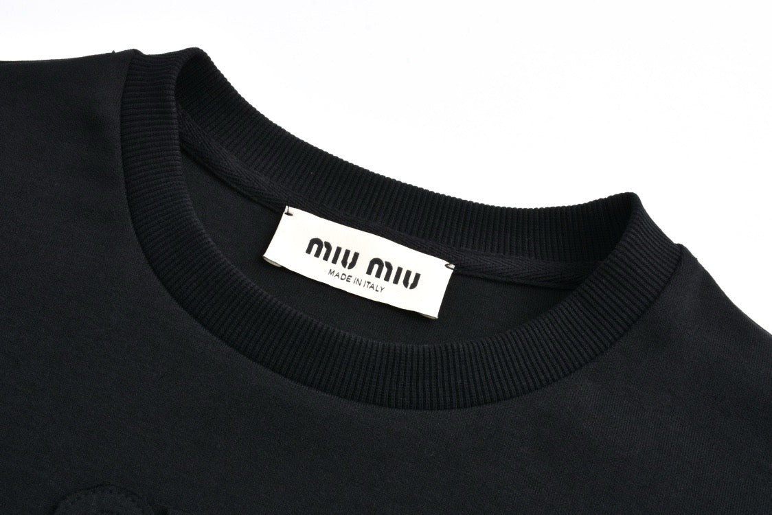 미우미우 자수 로고 롱슬리브 코튼 티셔츠
