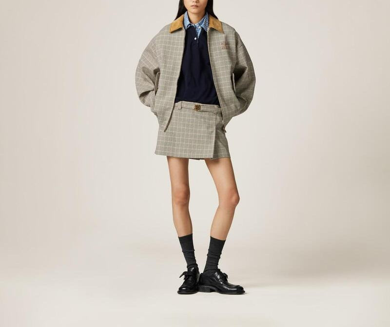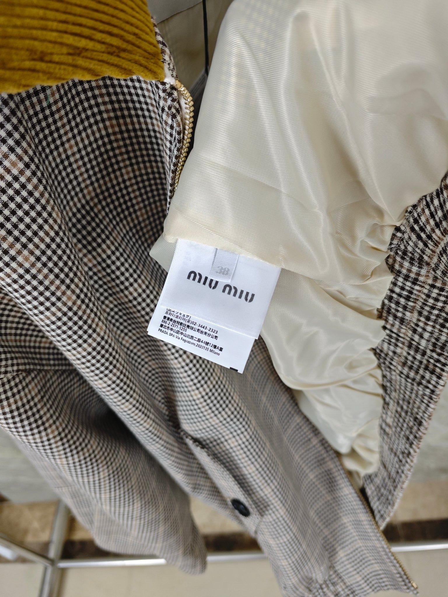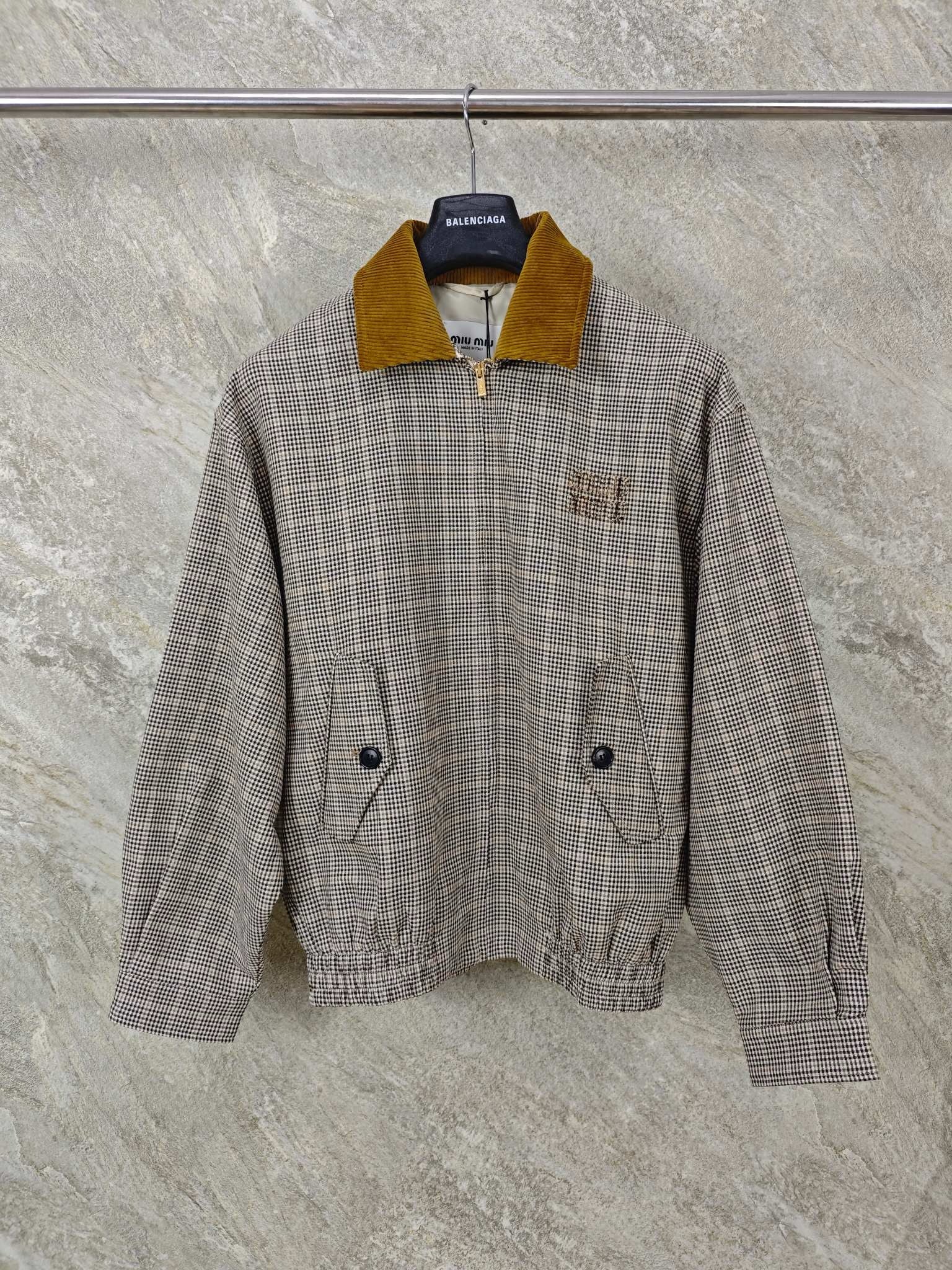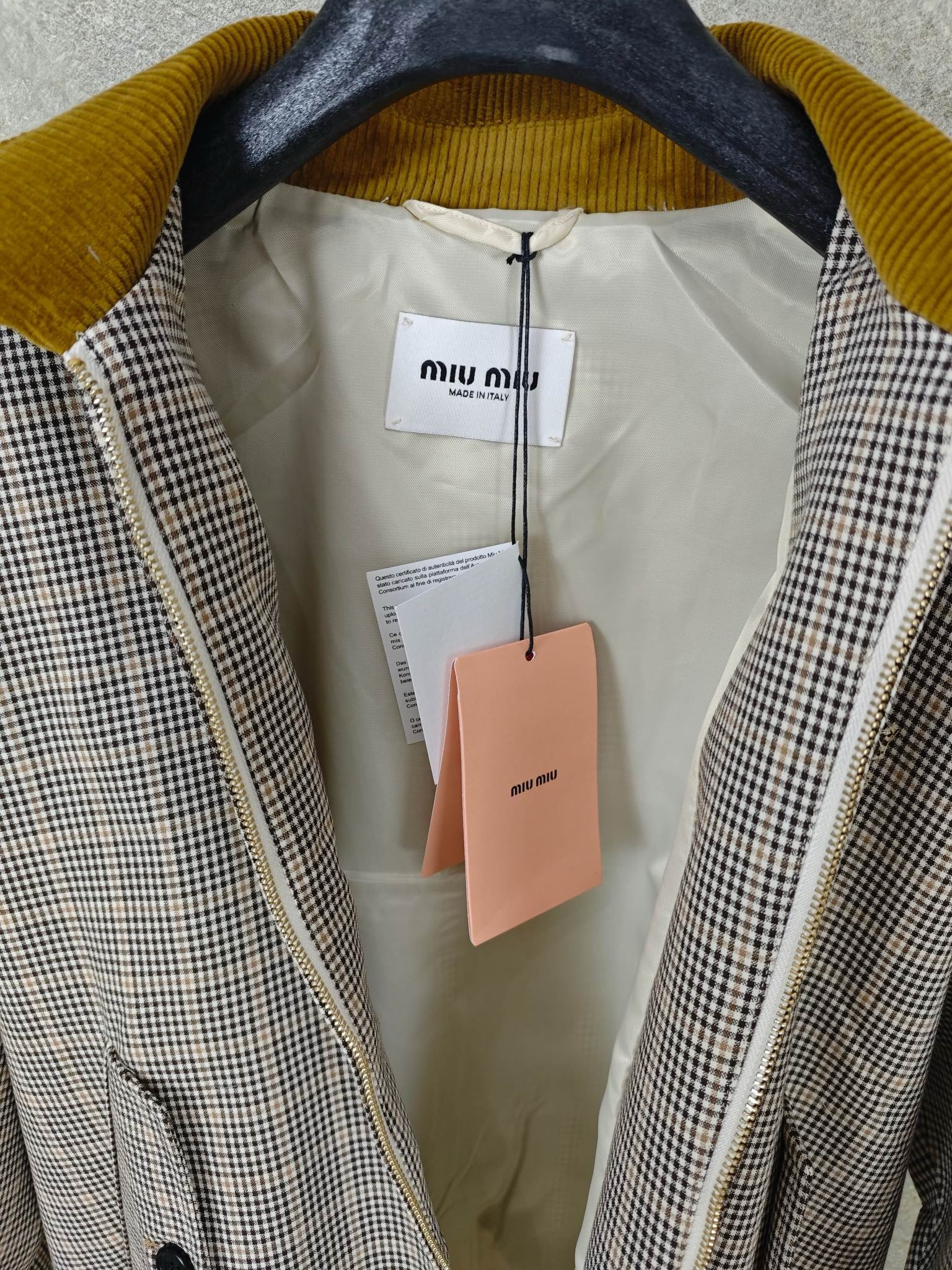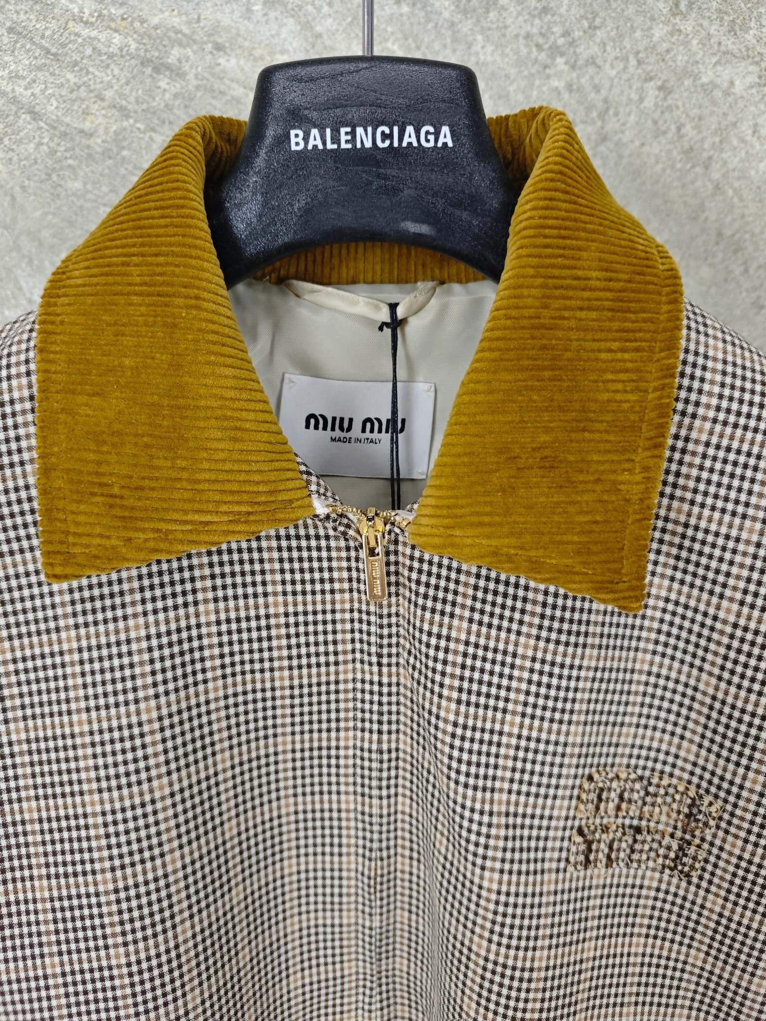 미우미우 체크무늬 더블 위브 블루종 자켓