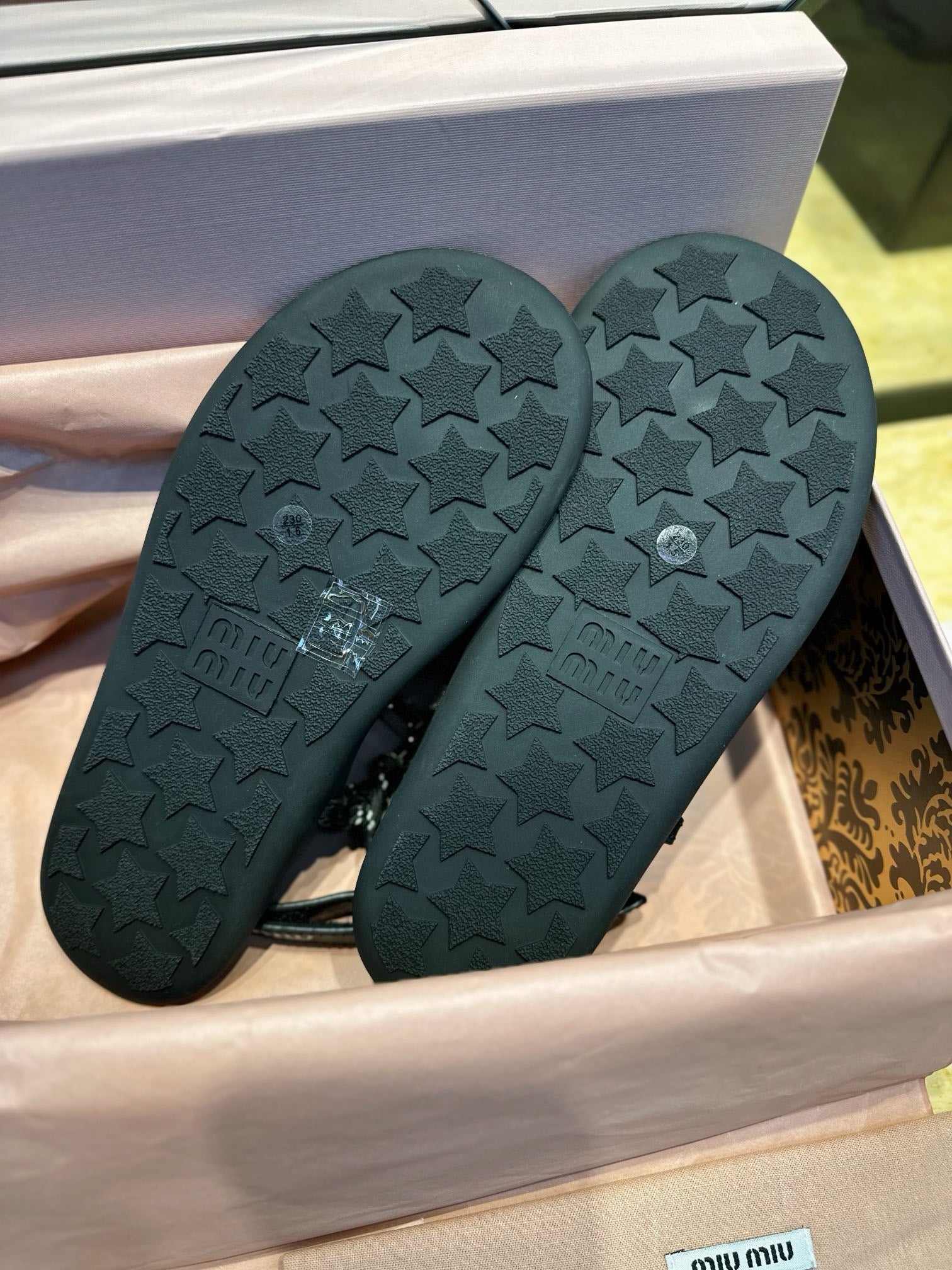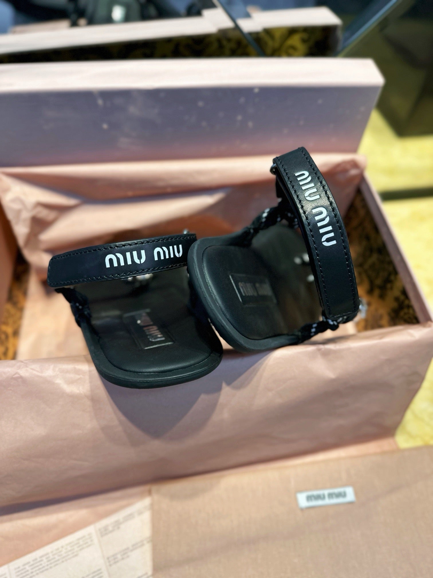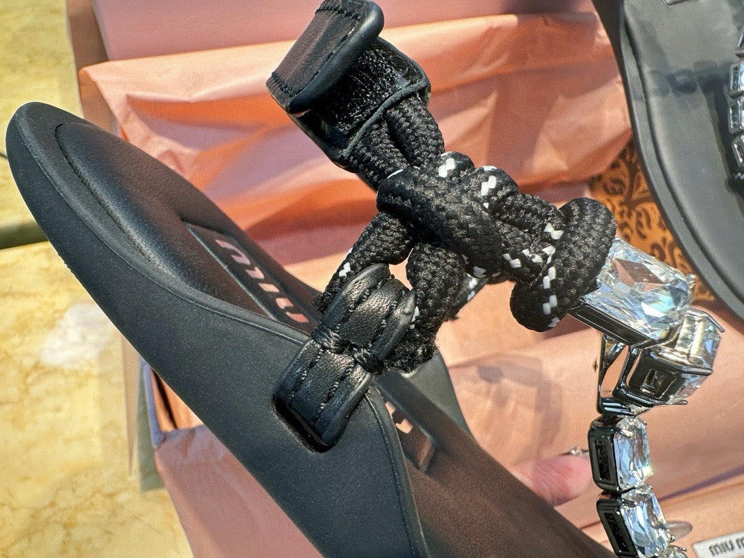 미우미우 코튼 코드 통 샌들 크리스탈(Miu Miu Cotton Cords Platform Sandals with Crystals) - 플랫폼의 안정감과 스타일