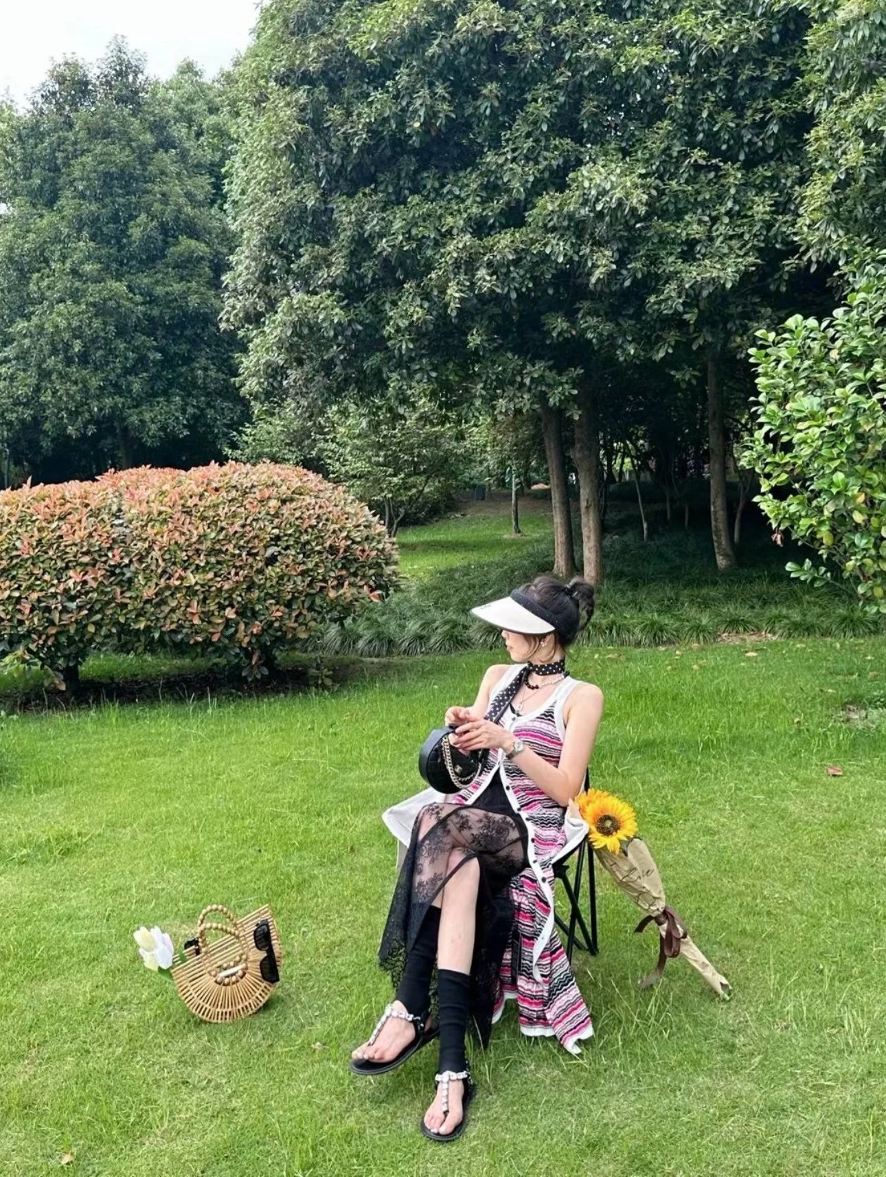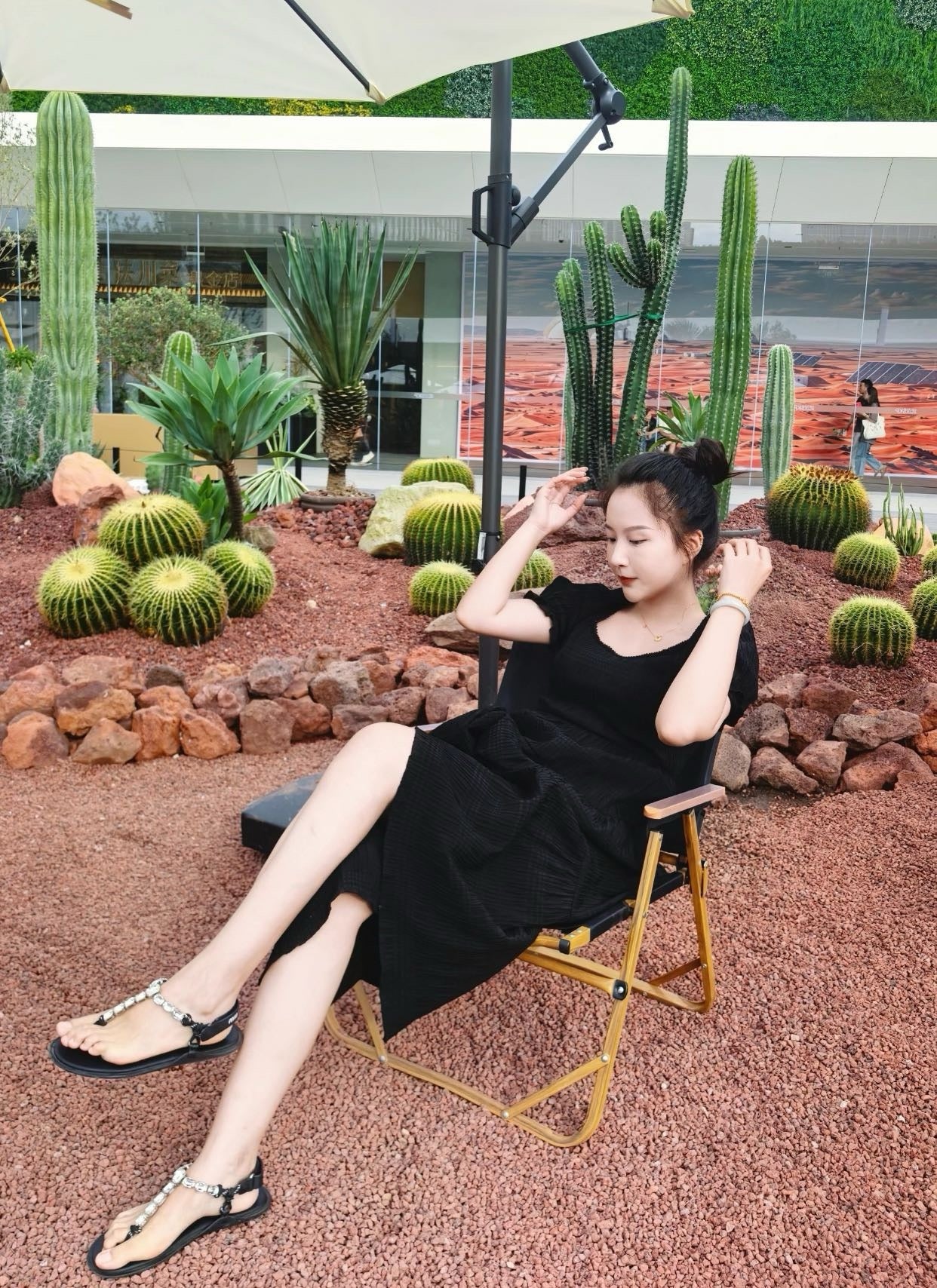 이 샌들은 미니멀한 원피스나 린넨 팬츠와 매치하면 포인트 아이템으로서 강렬한 인상을 줍니다. 크리스탈 장식이 돋보이기 때문에 액세서리는 간결하게 매치하는 것이 스타일의 균형을 맞추는 팁입니다.