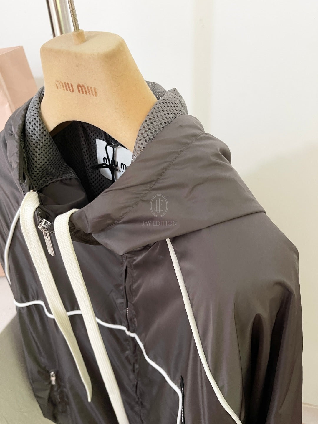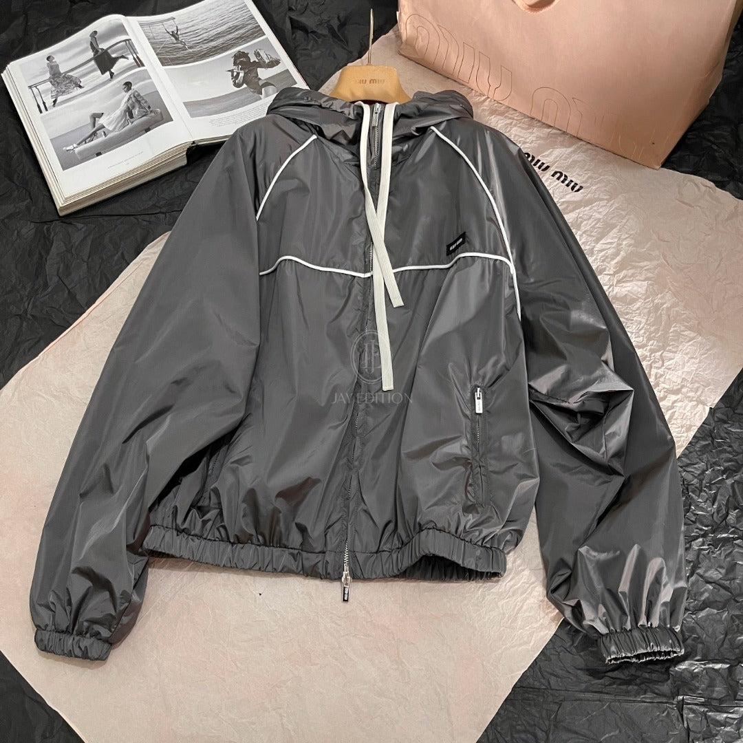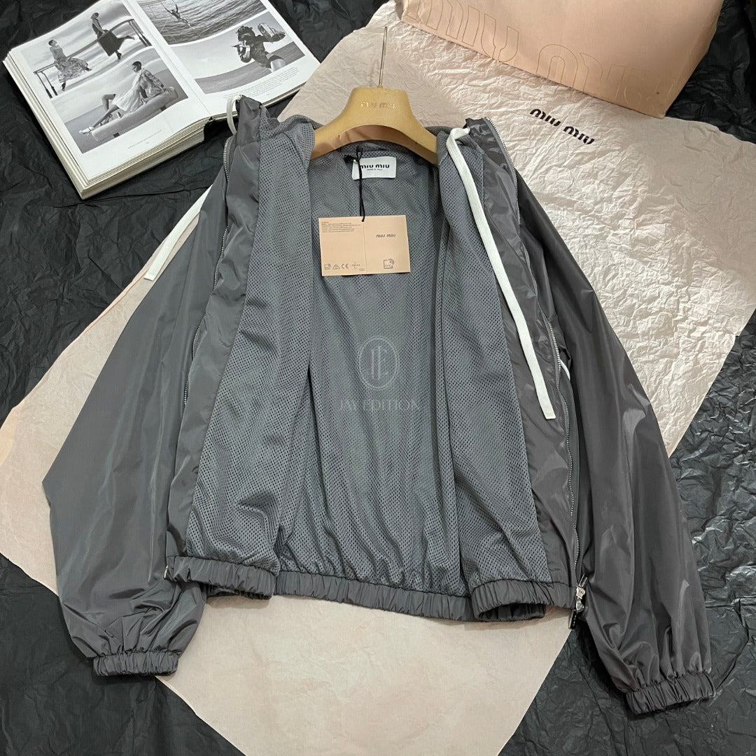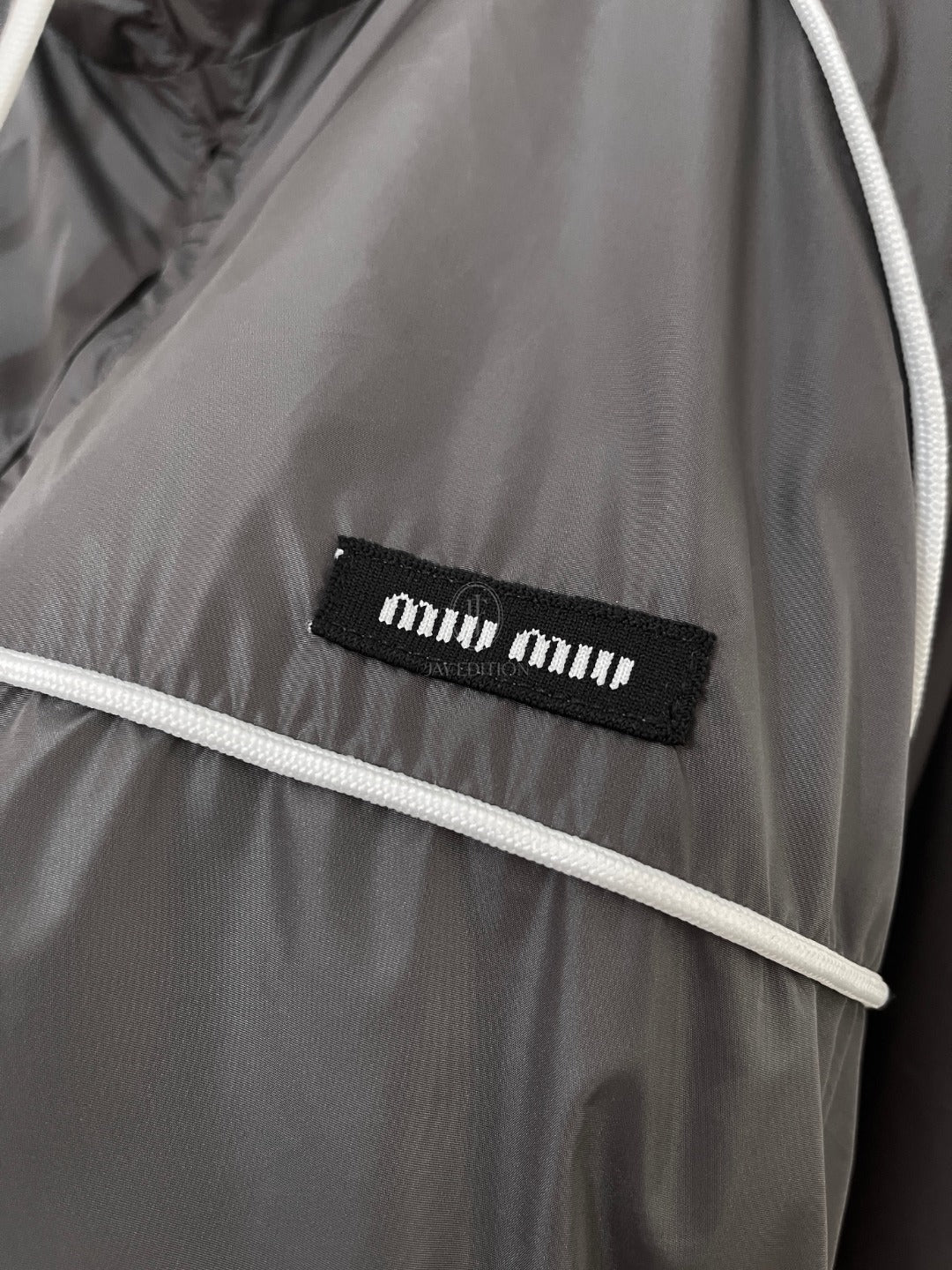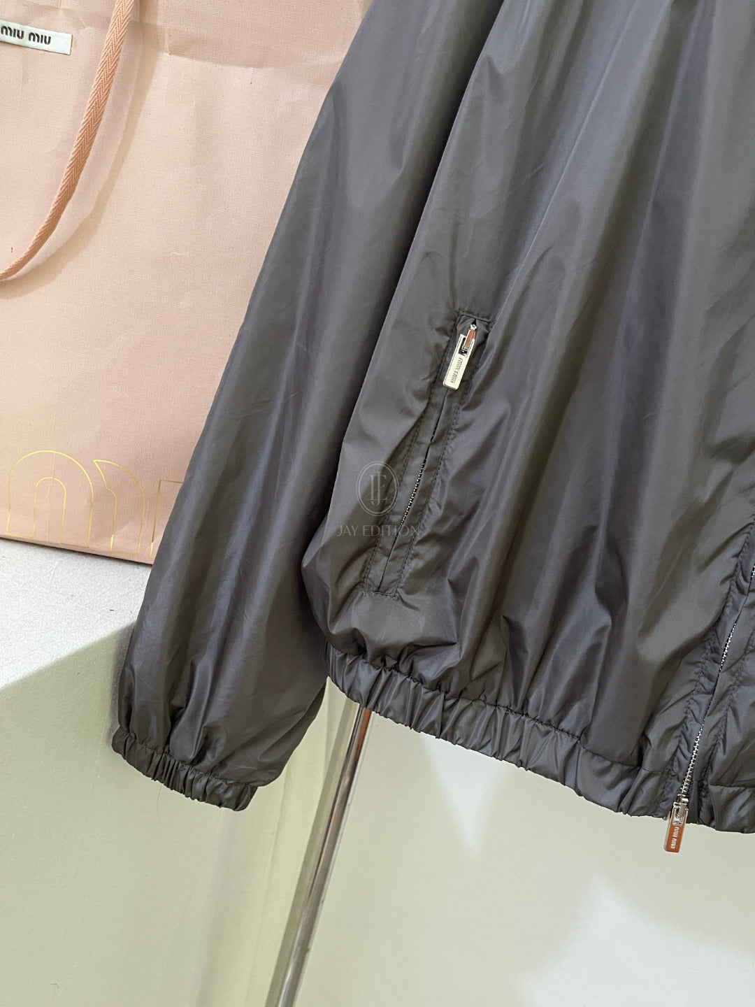 미우미우 테크니컬 실크 집 블루종 자켓 알루미늄