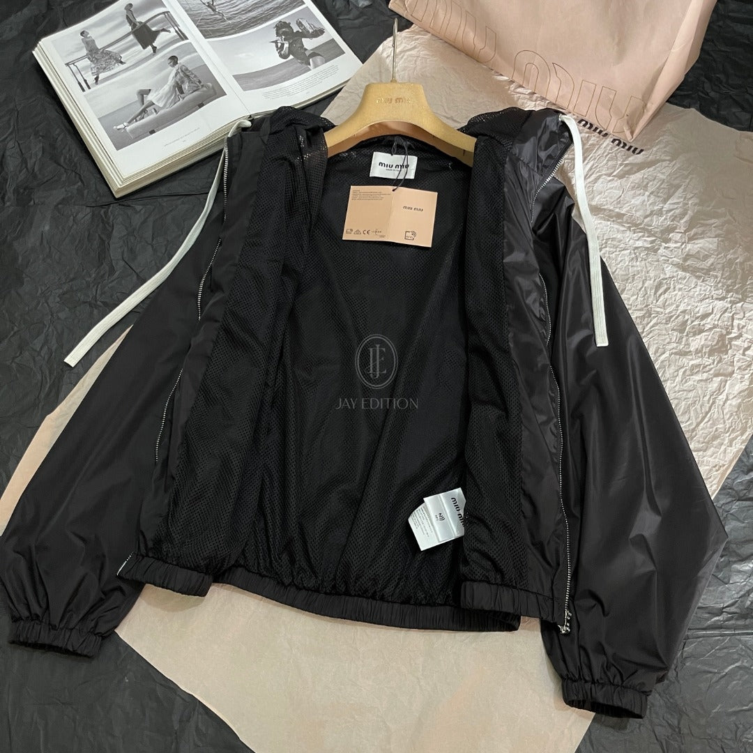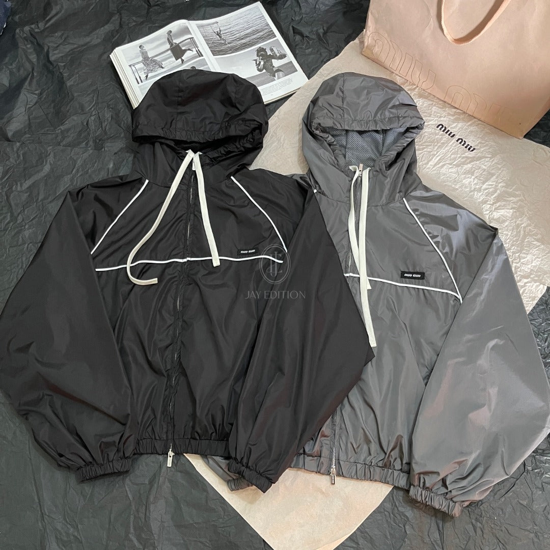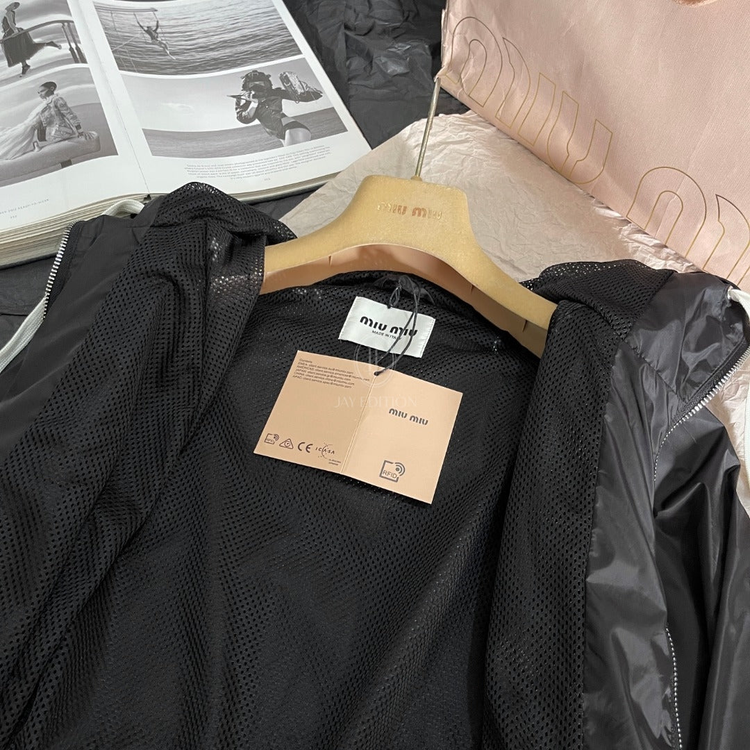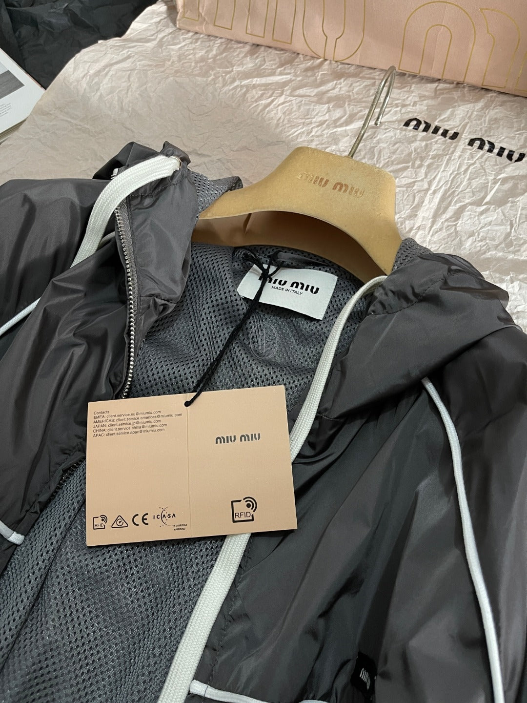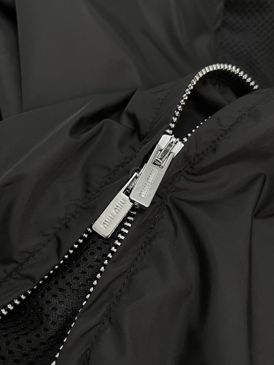 미우미우 테크니컬 실크 집 블루종 자켓 알루미늄
