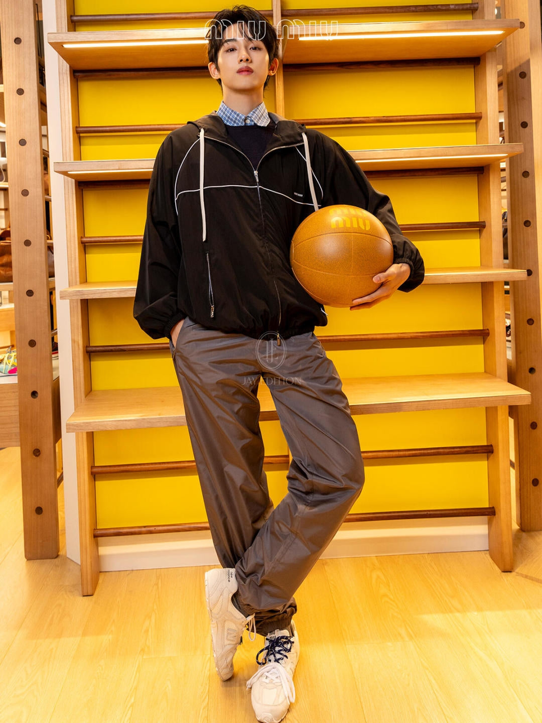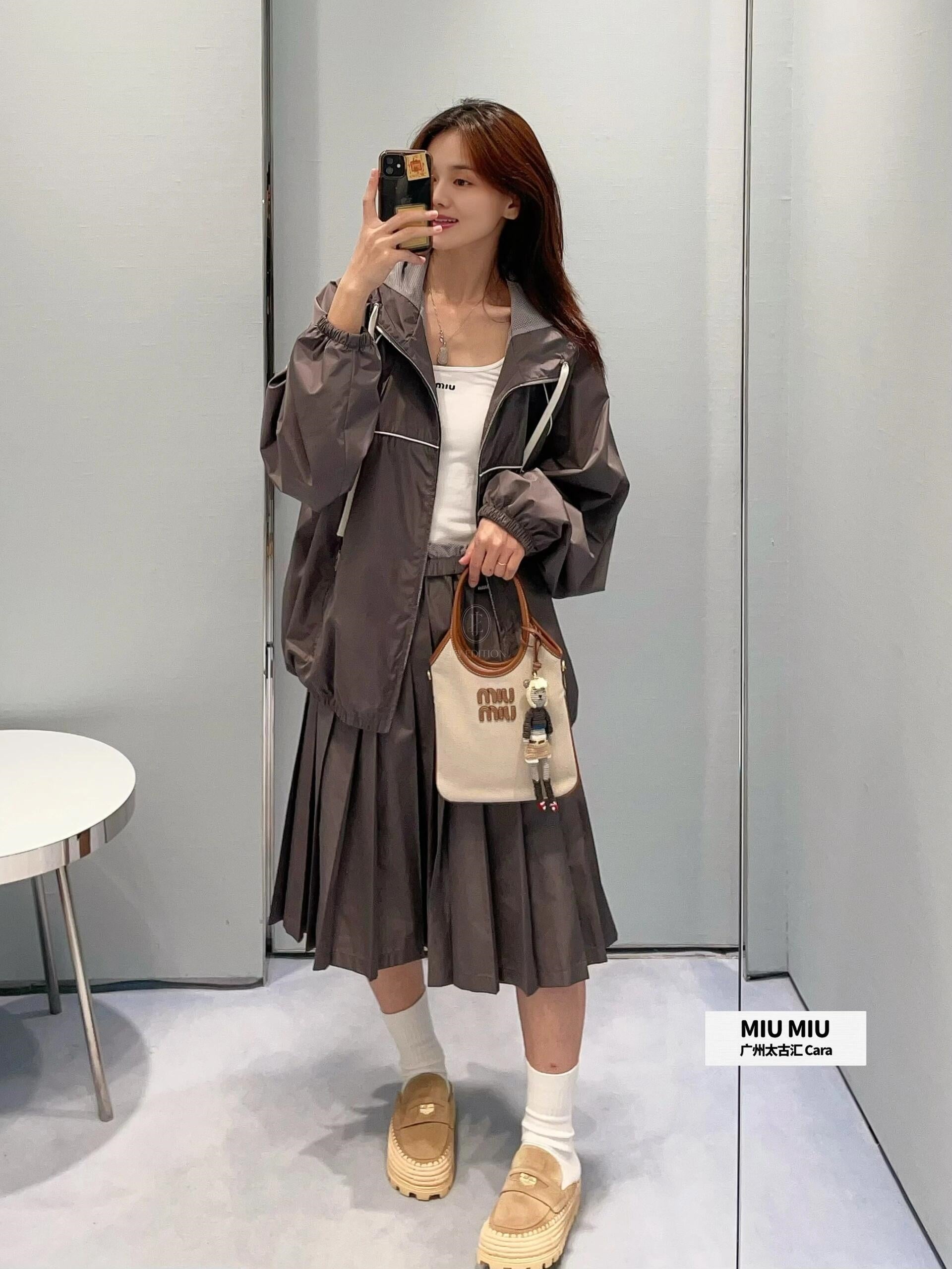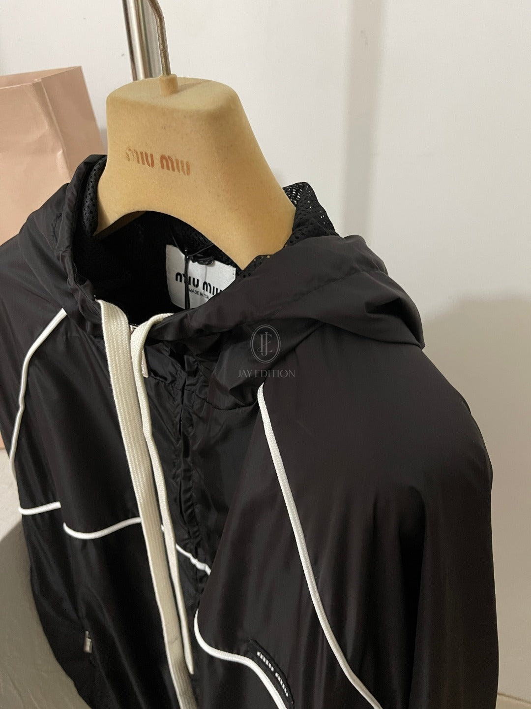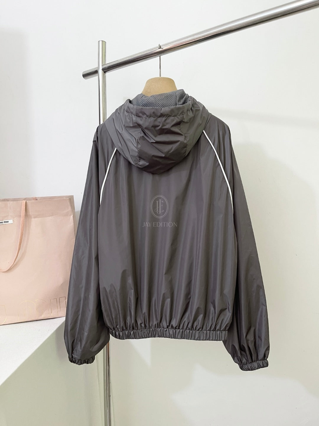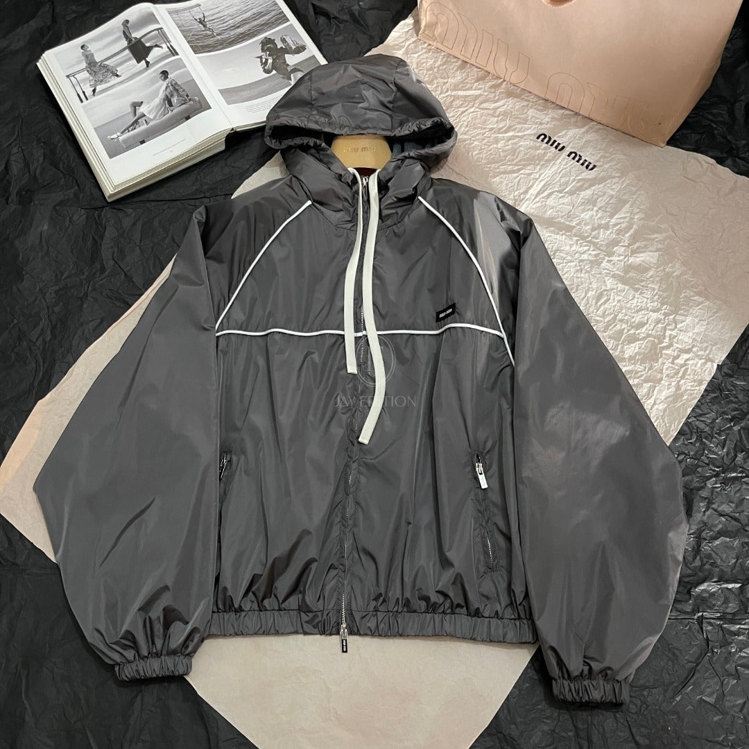 미우미우 테크니컬 실크 집 블루종 자켓 알루미늄