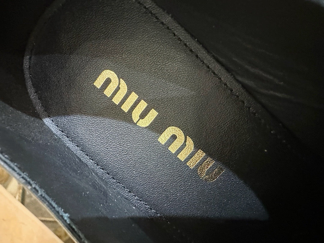 • 기타 디테일: 페니 슬롯, 미우미우 로고 각인, 블록 또는 슬림 힐 형태