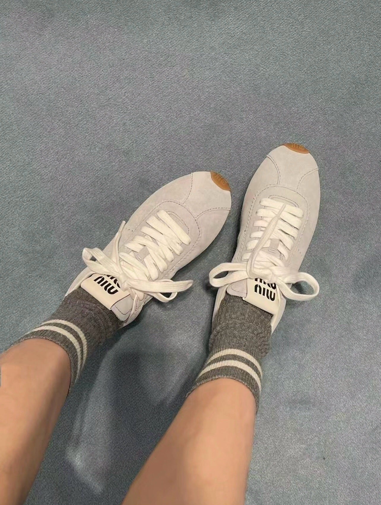 미우미우 플룸 스웨이드 스니커즈(Miu Miu Plume Suede Sneakers) - 스웨이드의 우아함과 캐주얼함의 조화