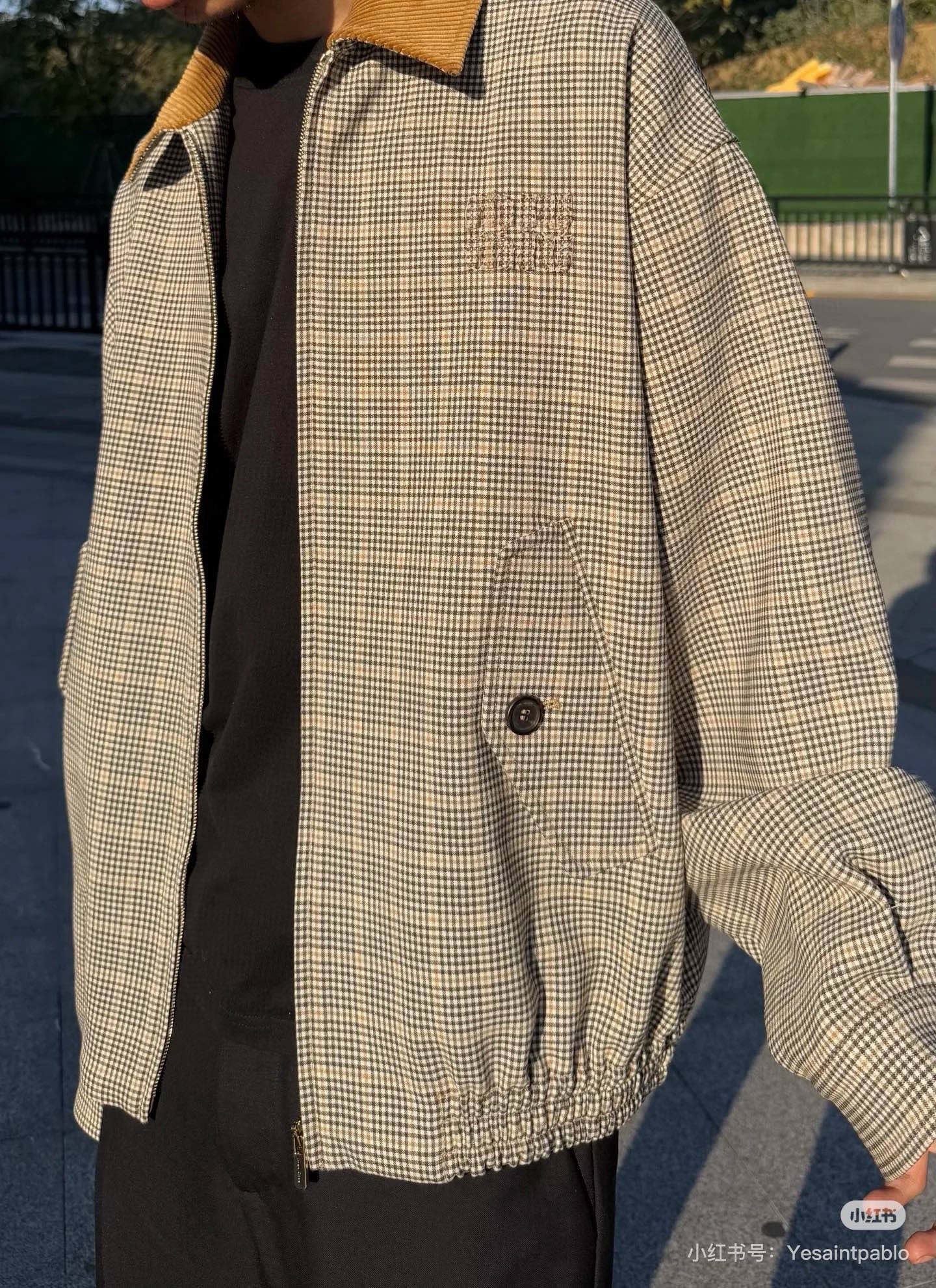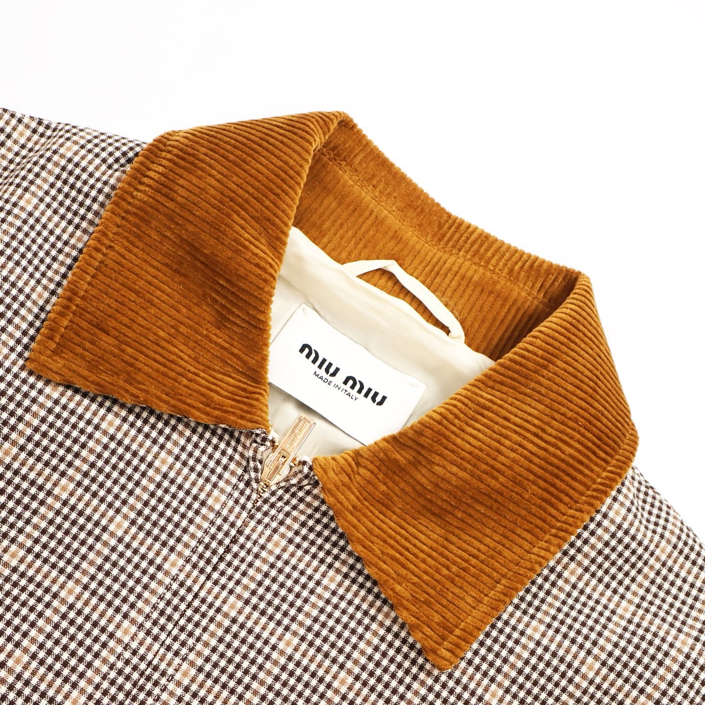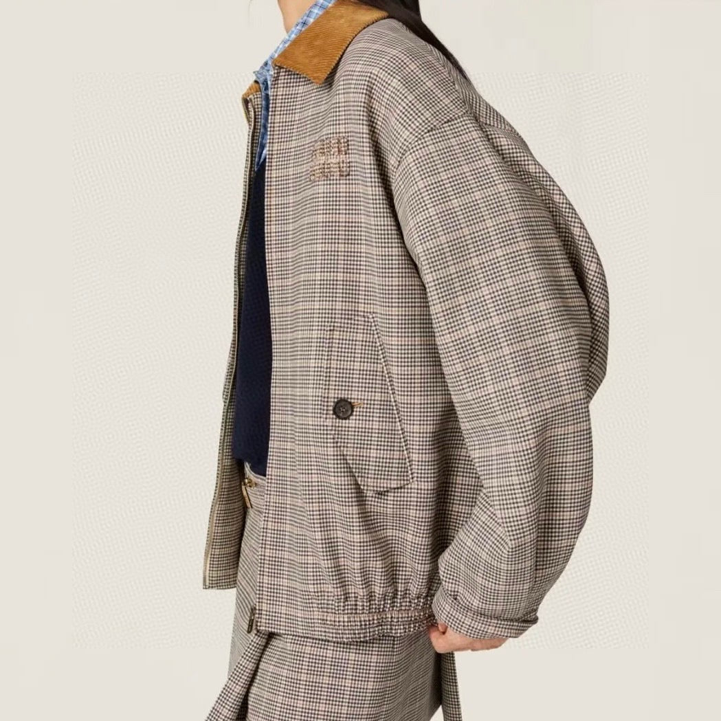 미우미우 2025 코르덴 카라 체크 로고와펜 자켓