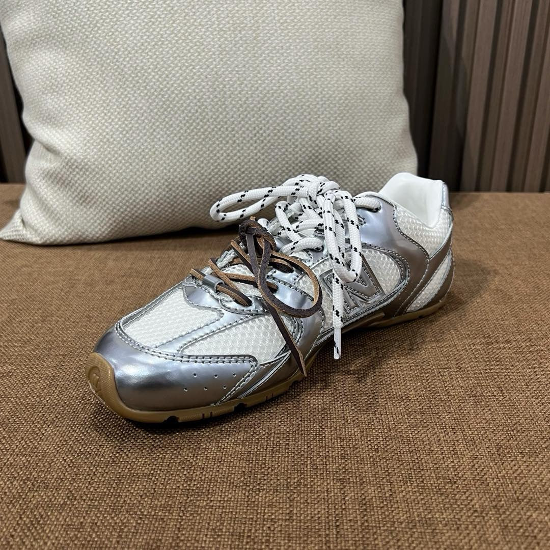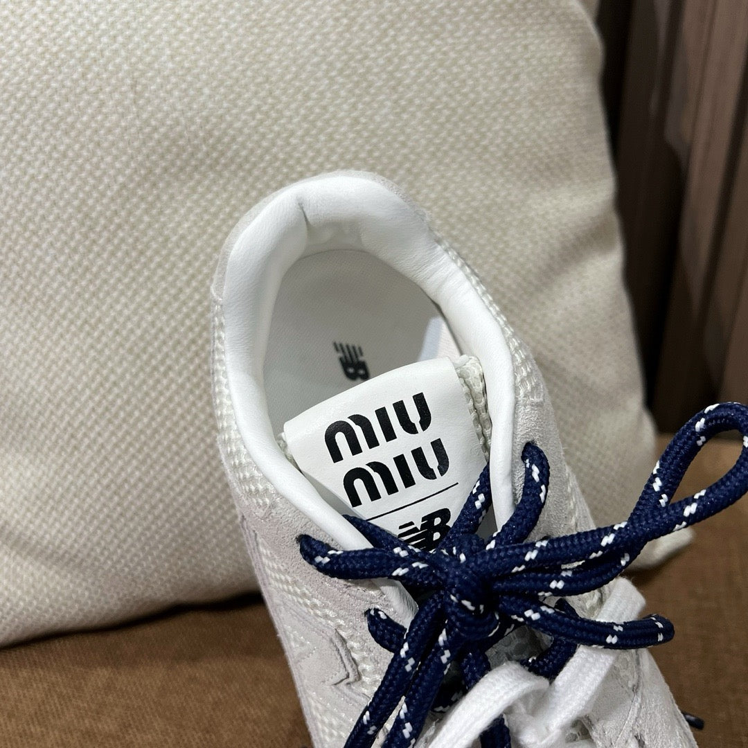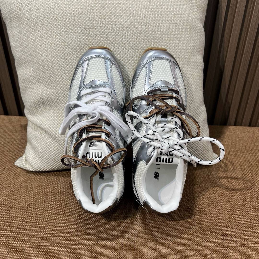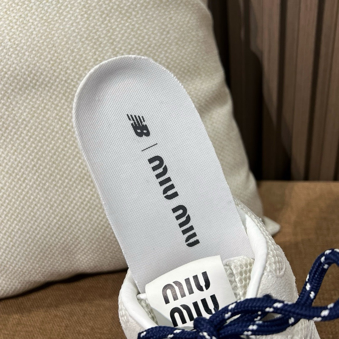 초경량 메쉬 소재를 중심으로 구성된 이 스니커즈는 통기성과 경량성을 극대화하여 장시간 착용에도 발의 피로를 줄여줍니다. 뉴발란스의 러닝화 실루엣을 기반으로 하되, 미우미우 특유의 미니멀하고 고급스러운 터치를 더해 하이패션 무드를 완성했습니다. 사이드에는 상징적인 'N' 로고와 함께 미우미우 브랜딩이 정교하게 적용되어 브랜드 정체성을 동시에 전달합니다.