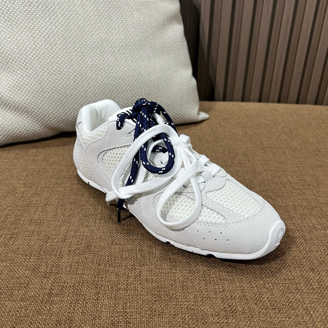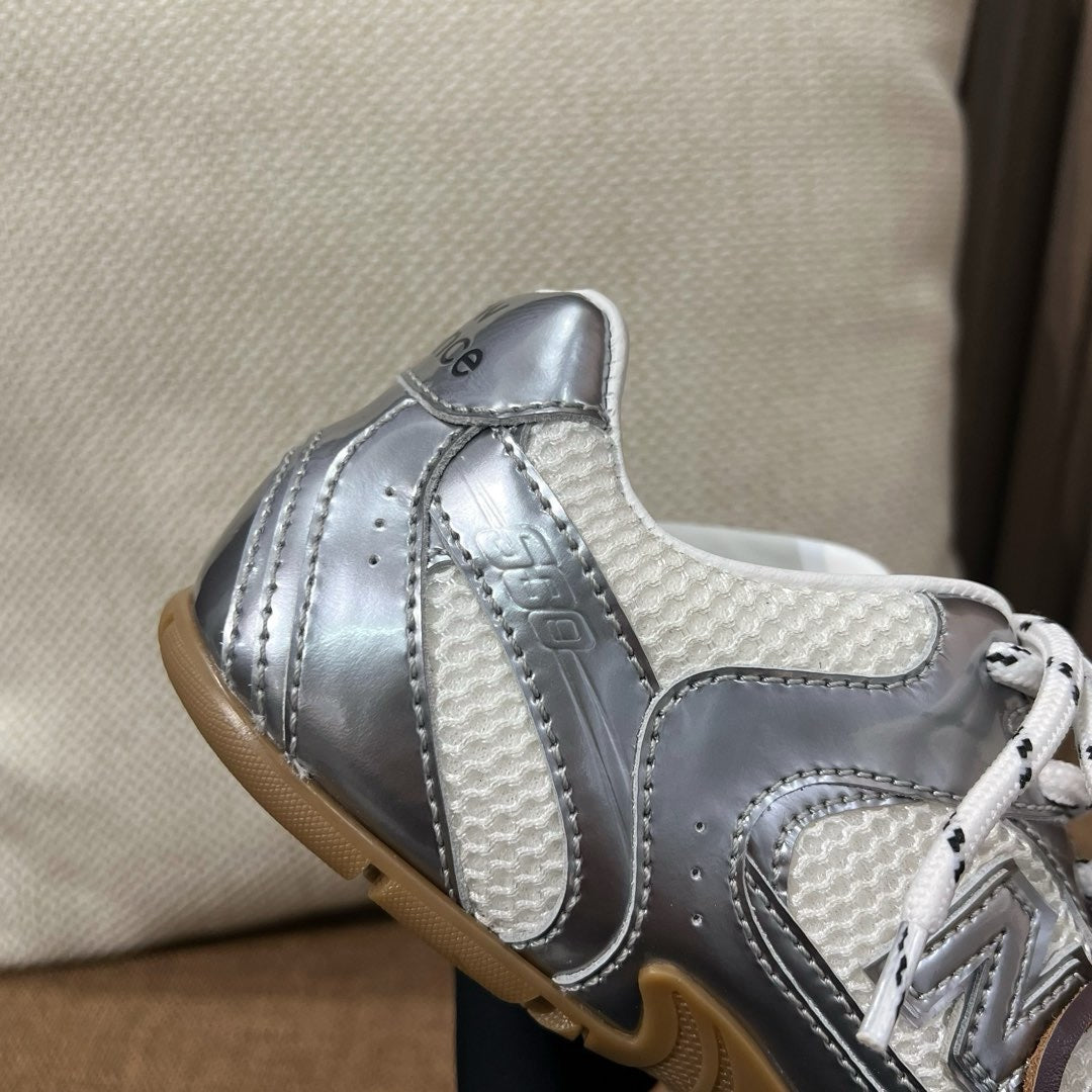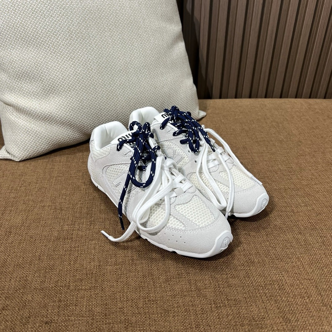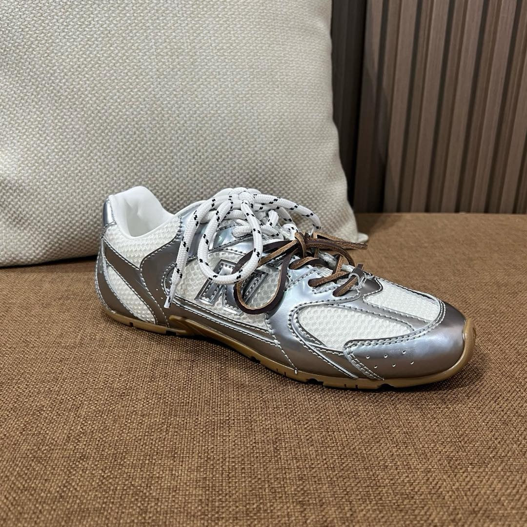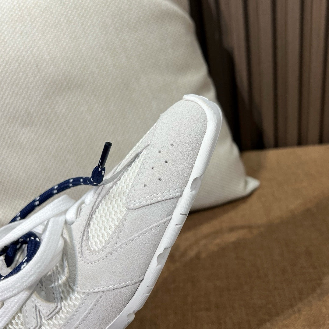 초경량 메쉬 소재를 중심으로 구성된 이 스니커즈는 통기성과 경량성을 극대화하여 장시간 착용에도 발의 피로를 줄여줍니다. 뉴발란스의 러닝화 실루엣을 기반으로 하되, 미우미우 특유의 미니멀하고 고급스러운 터치를 더해 하이패션 무드를 완성했습니다. 사이드에는 상징적인 'N' 로고와 함께 미우미우 브랜딩이 정교하게 적용되어 브랜드 정체성을 동시에 전달합니다.