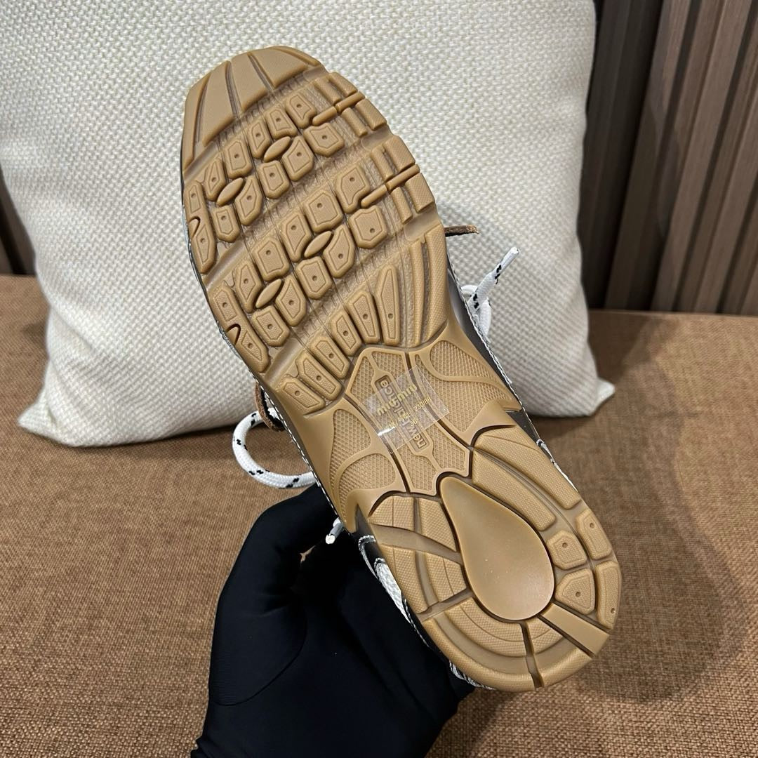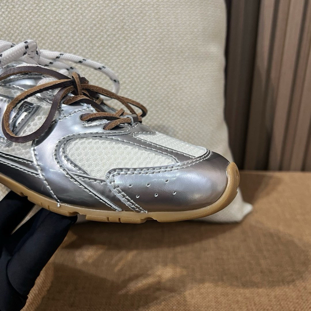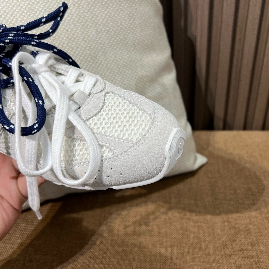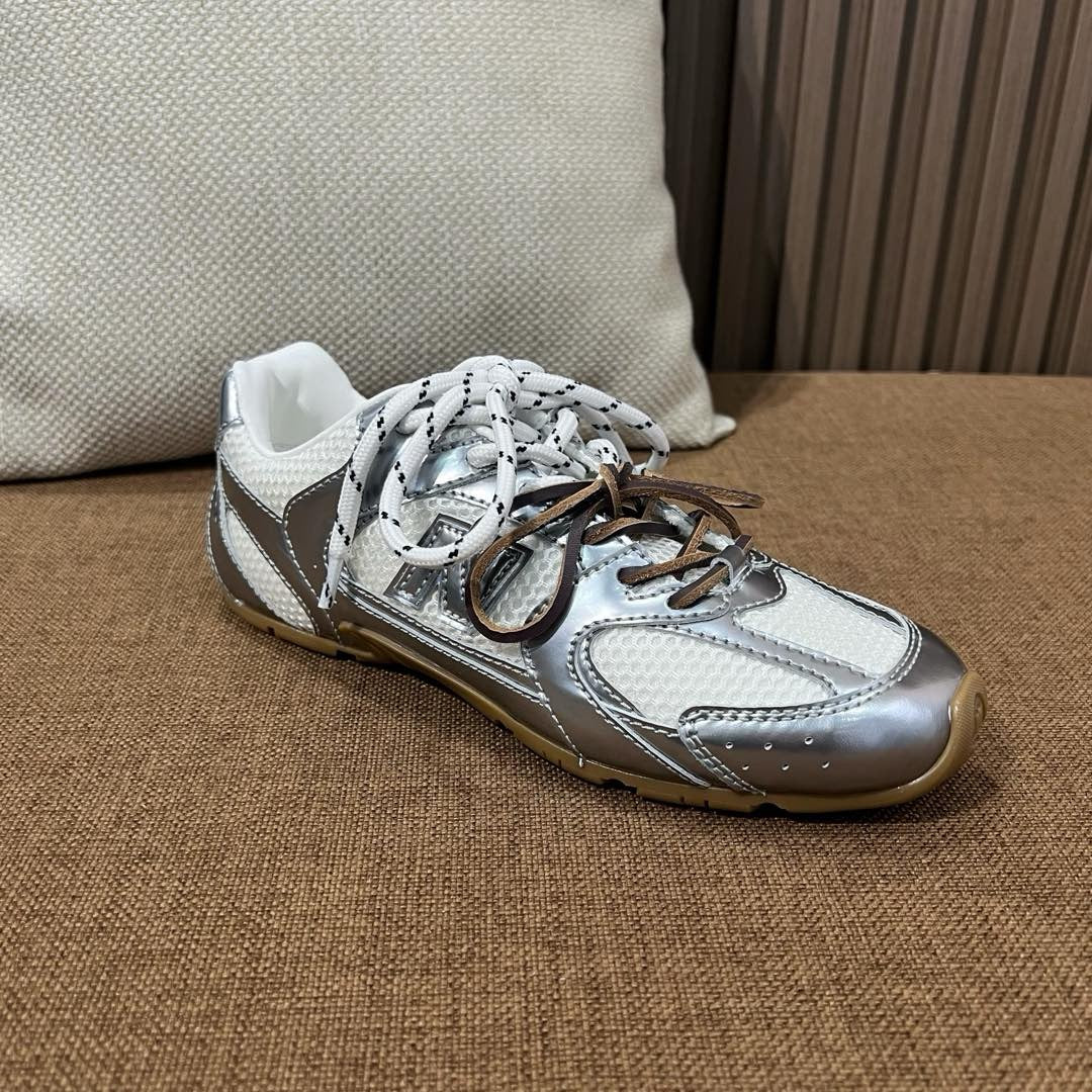 초경량 메쉬 소재를 중심으로 구성된 이 스니커즈는 통기성과 경량성을 극대화하여 장시간 착용에도 발의 피로를 줄여줍니다. 뉴발란스의 러닝화 실루엣을 기반으로 하되, 미우미우 특유의 미니멀하고 고급스러운 터치를 더해 하이패션 무드를 완성했습니다. 사이드에는 상징적인 'N' 로고와 함께 미우미우 브랜딩이 정교하게 적용되어 브랜드 정체성을 동시에 전달합니다.
