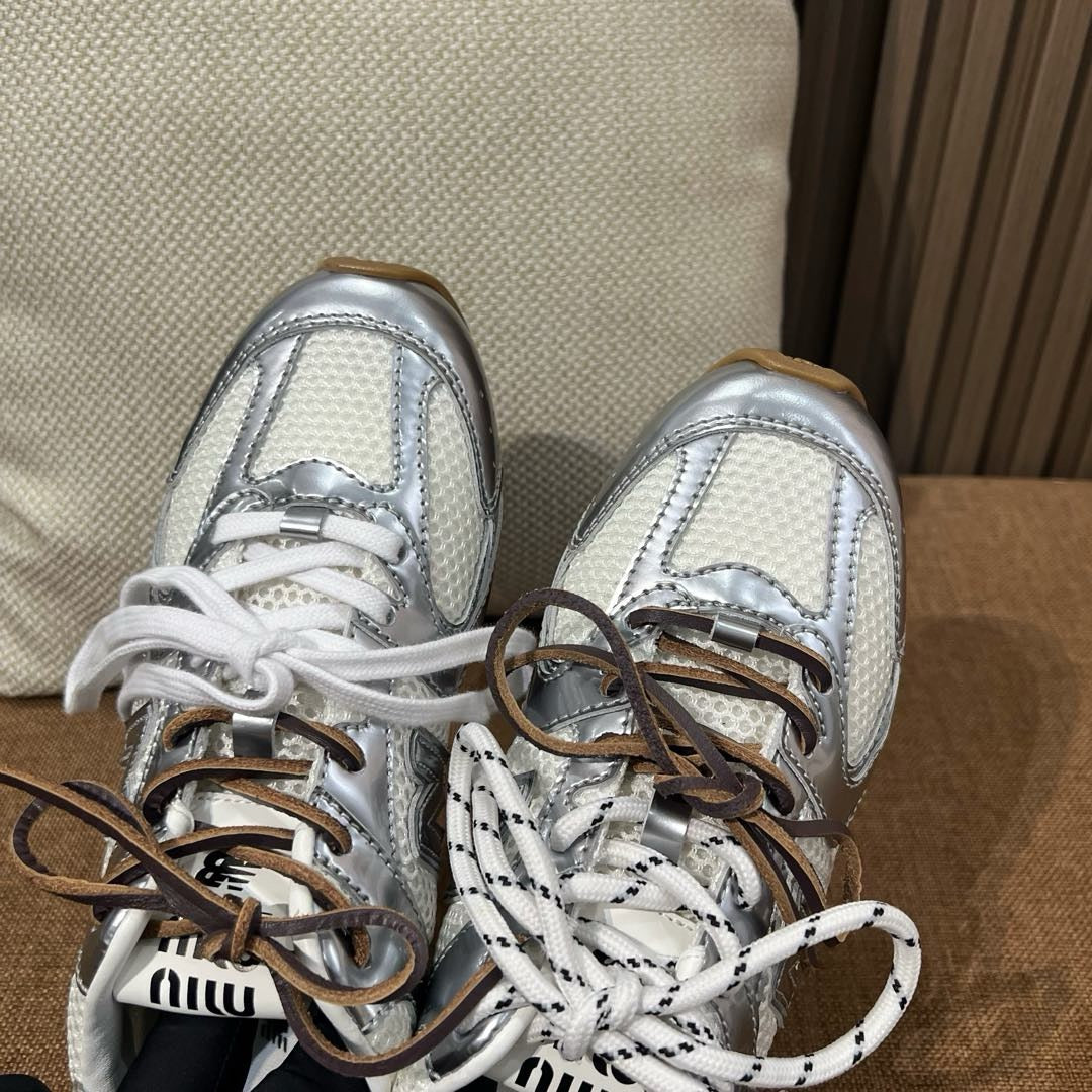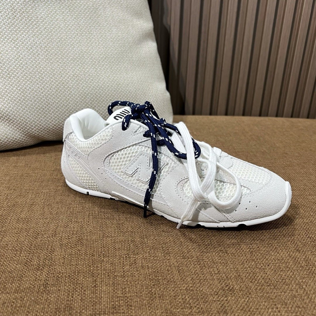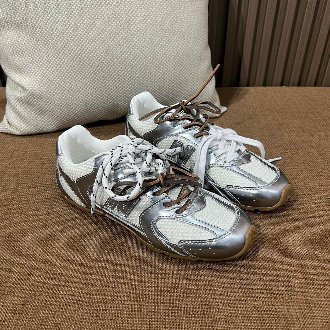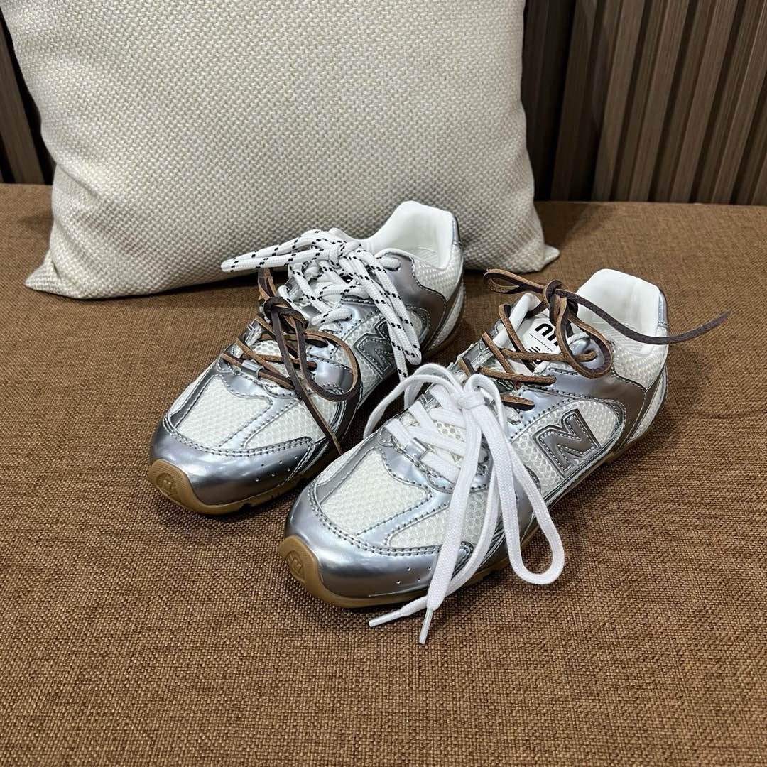디자인: 뉴발란스 530 실루엣 기반, 미우미우 디테일, 슬림하고 가벼운 구조