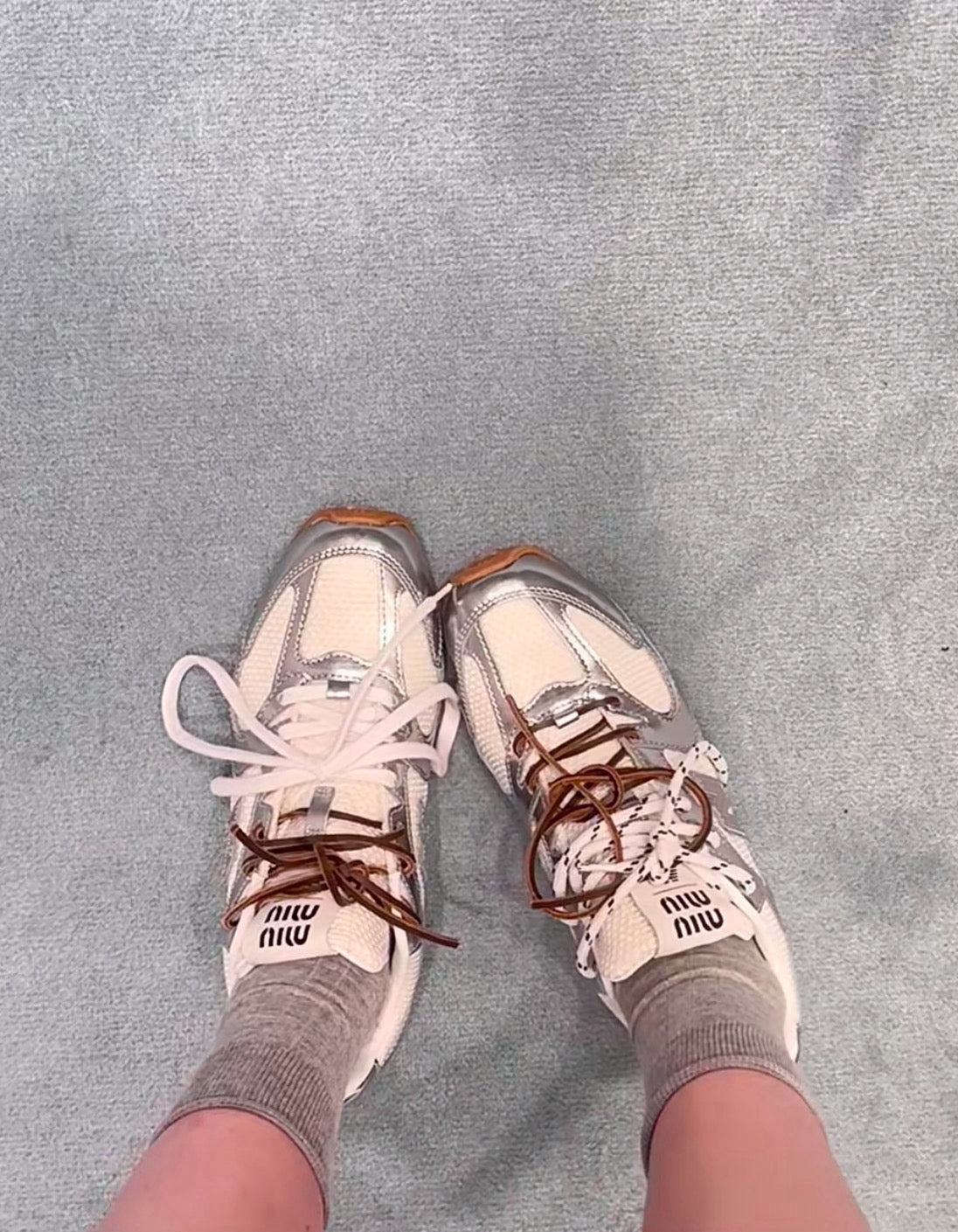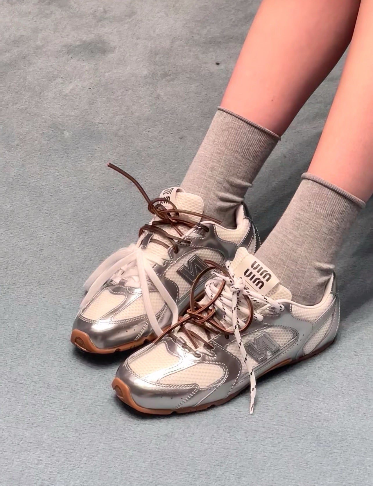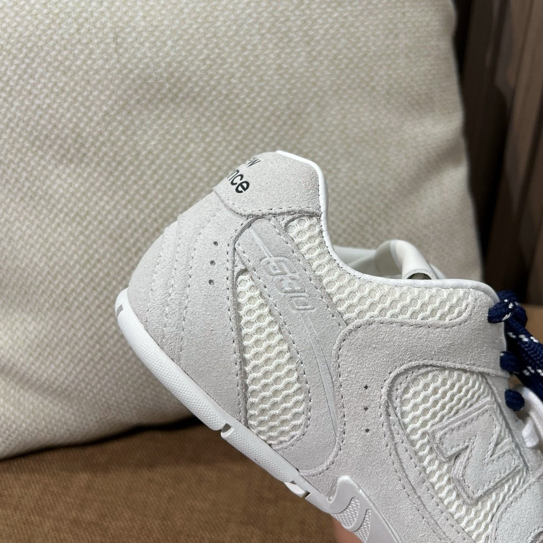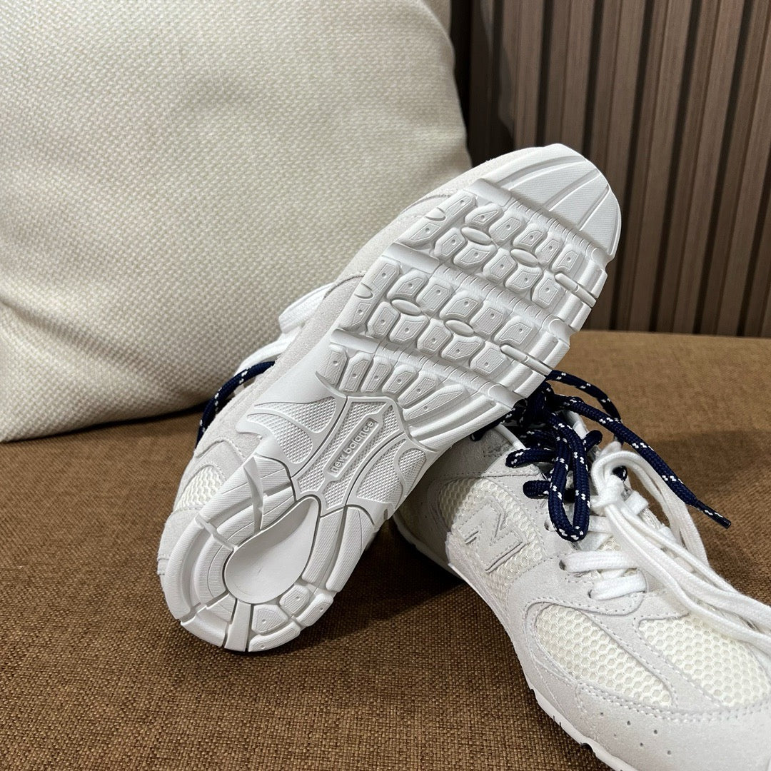 디자인: 뉴발란스 530 실루엣 기반, 미우미우 디테일, 슬림하고 가벼운 구조