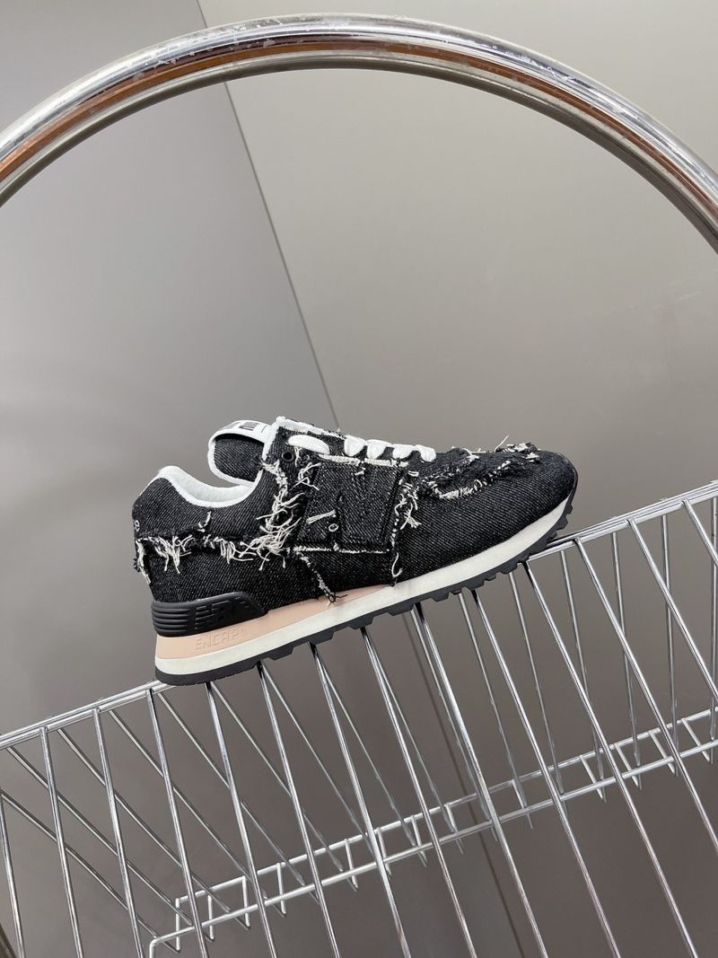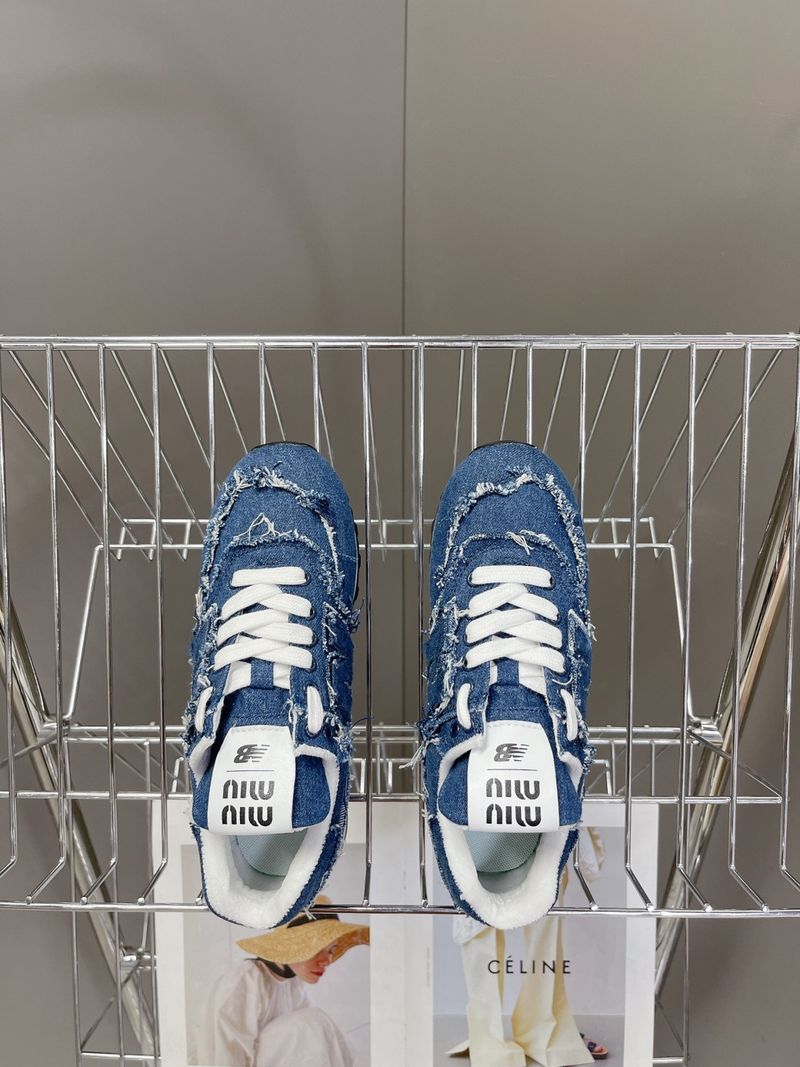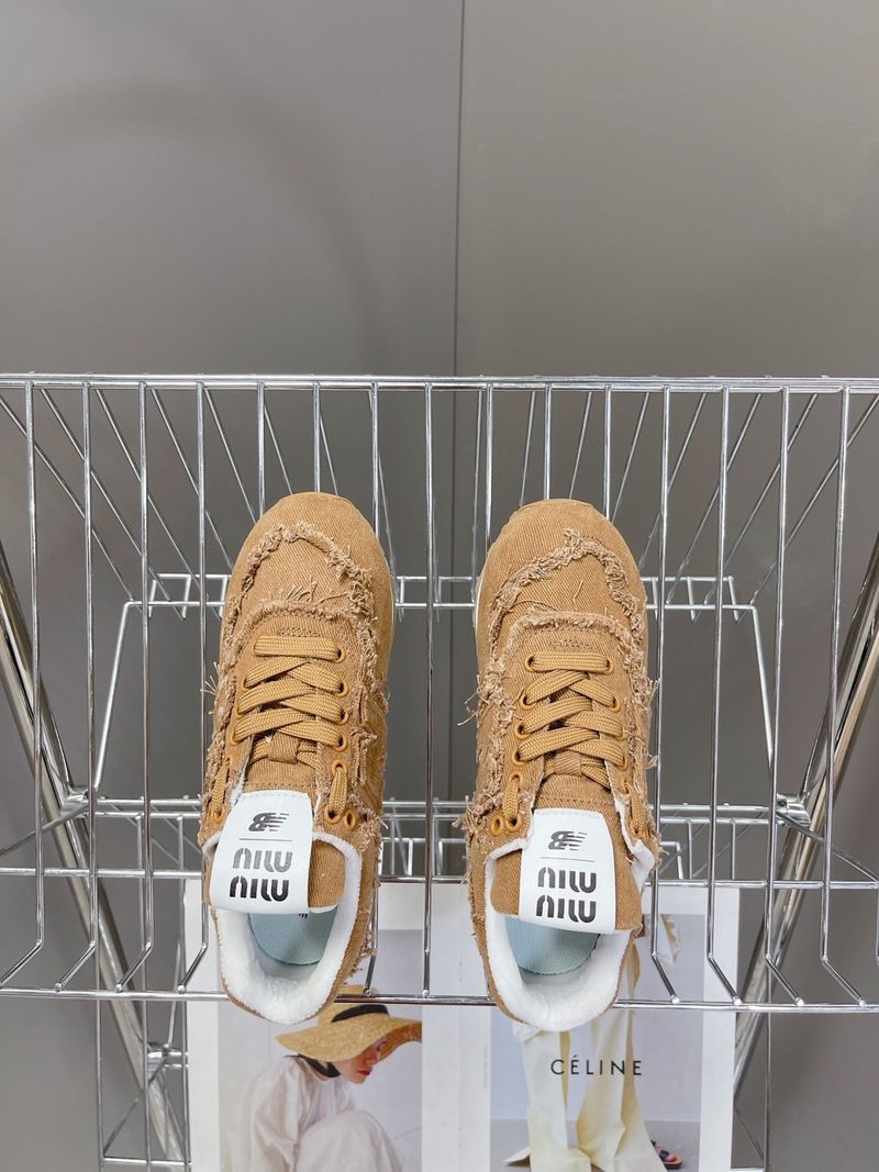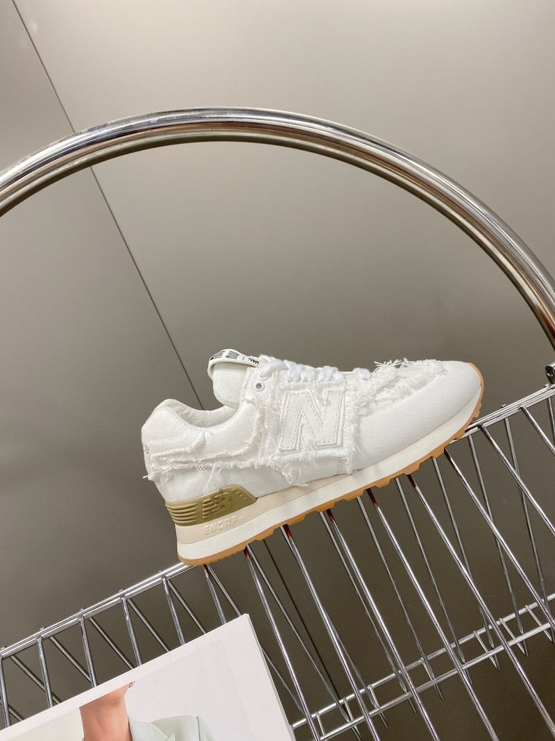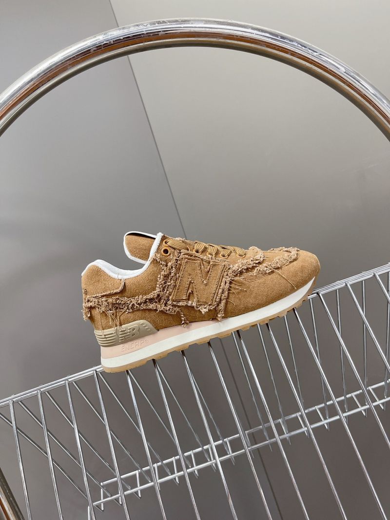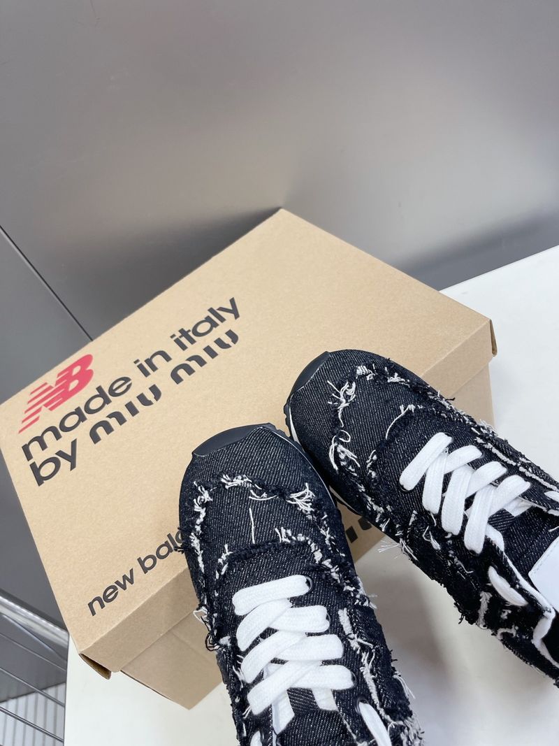 이 스니커즈는 뉴발란스의 아이코닉한 574 모델을 기반으로 미우미우 특유의 해체적이고 실험적인 디자인이 가미된 것이 특징입니다. 컷오프 디테일, 프레이 진 소재, 데님 또는 가죽 마감 등으로 고급스럽고 개성 있는 무드를 연출합니다.
