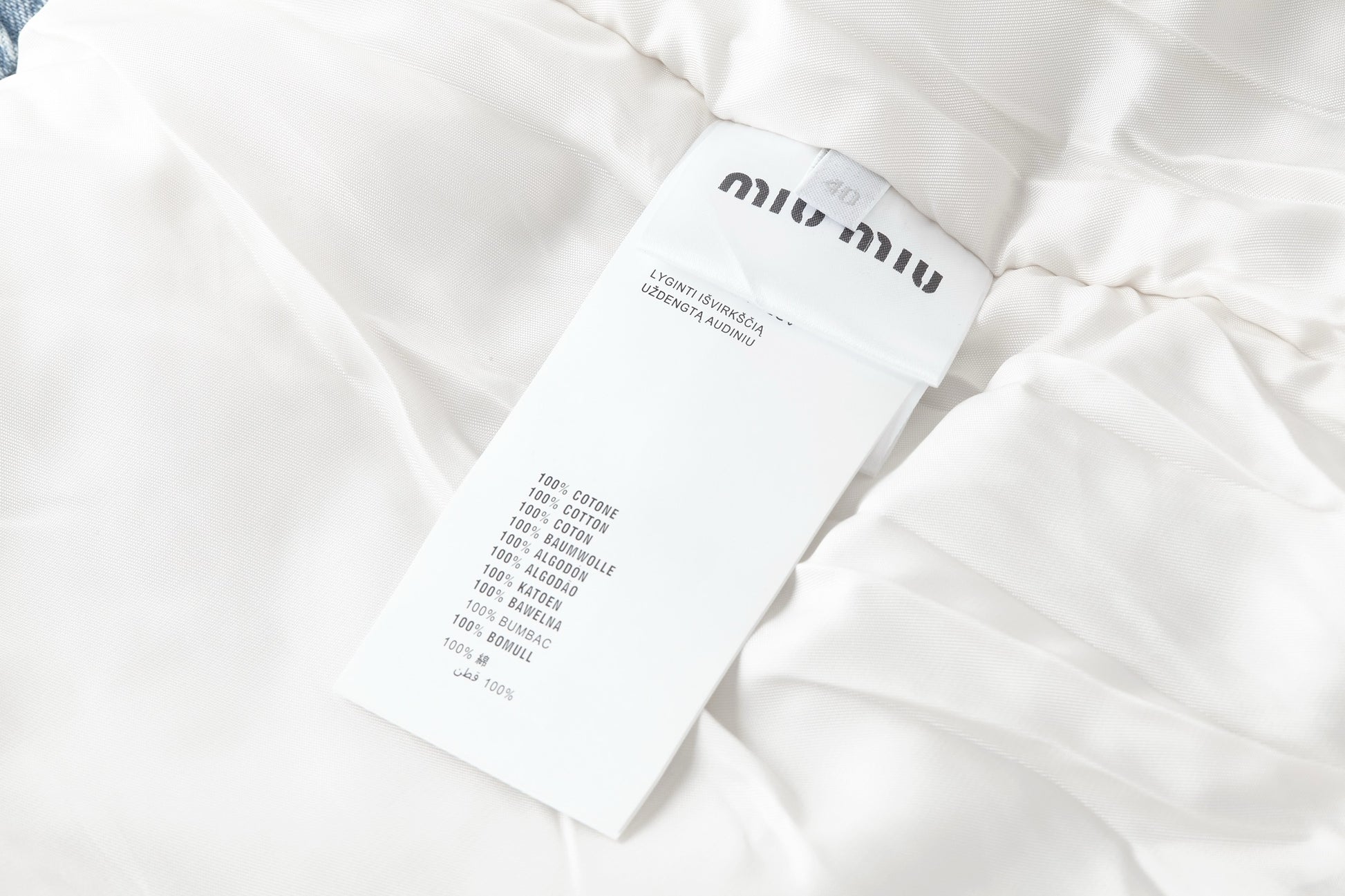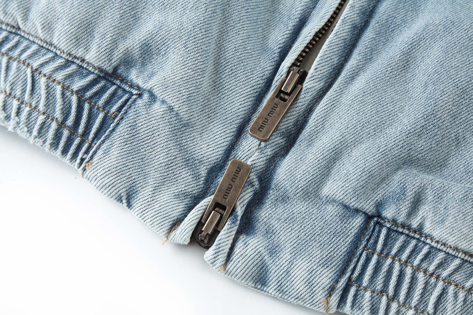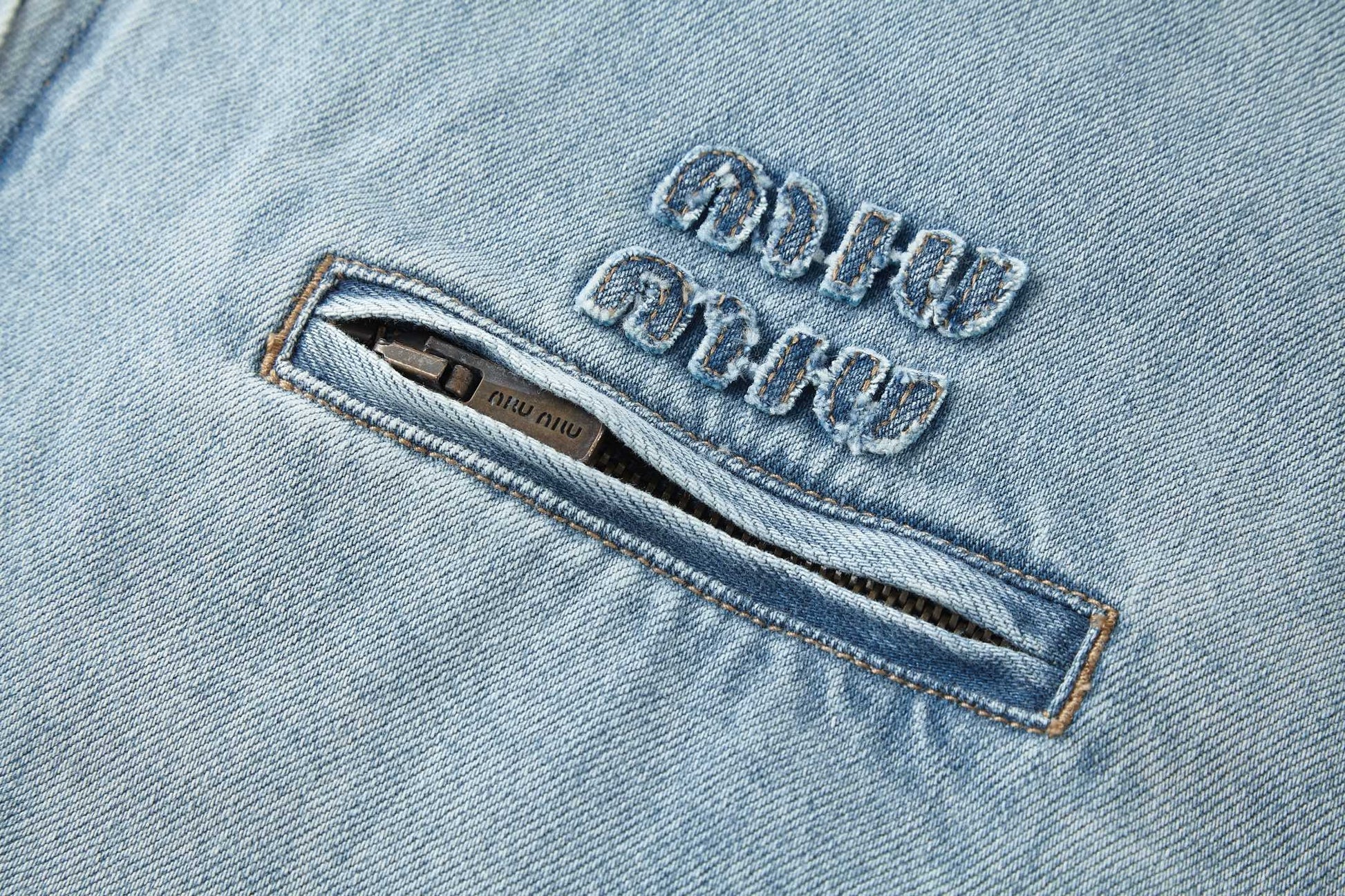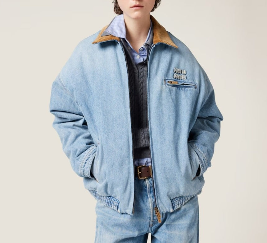 미우미우 데님 자켓 벨벳 칼라 사파이어 블루