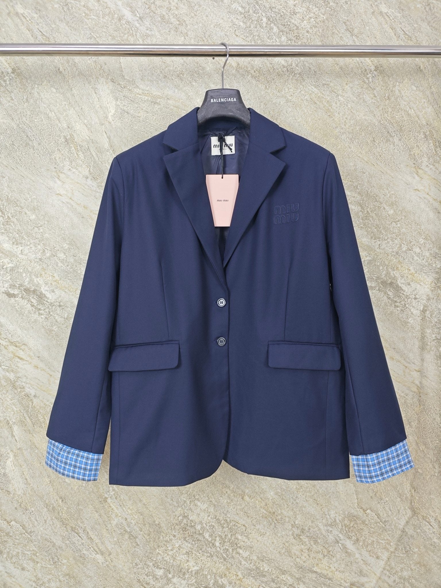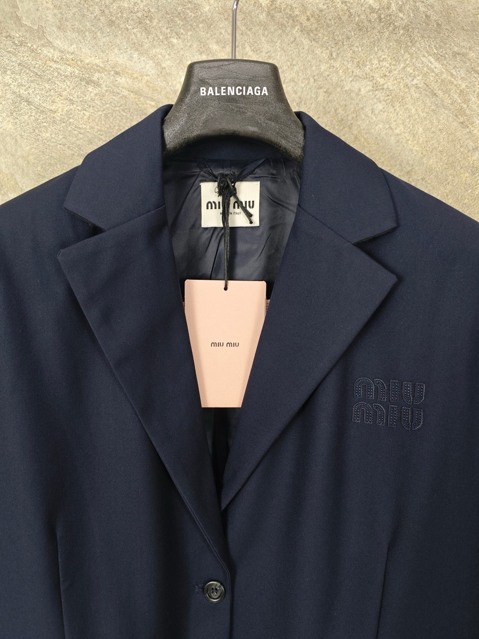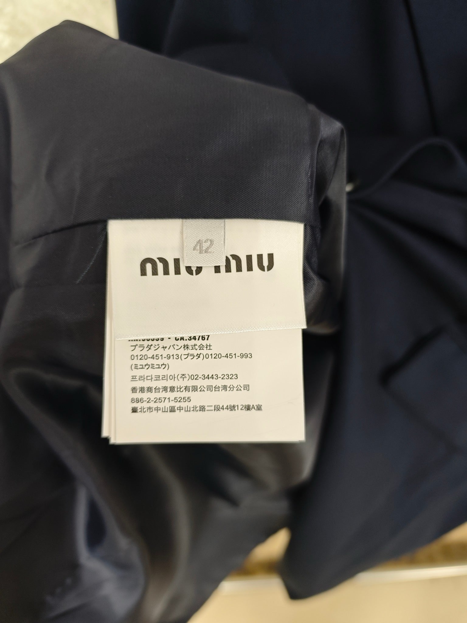 미우 미우 싱글 브레스티드 개버딘 자켓 네이비