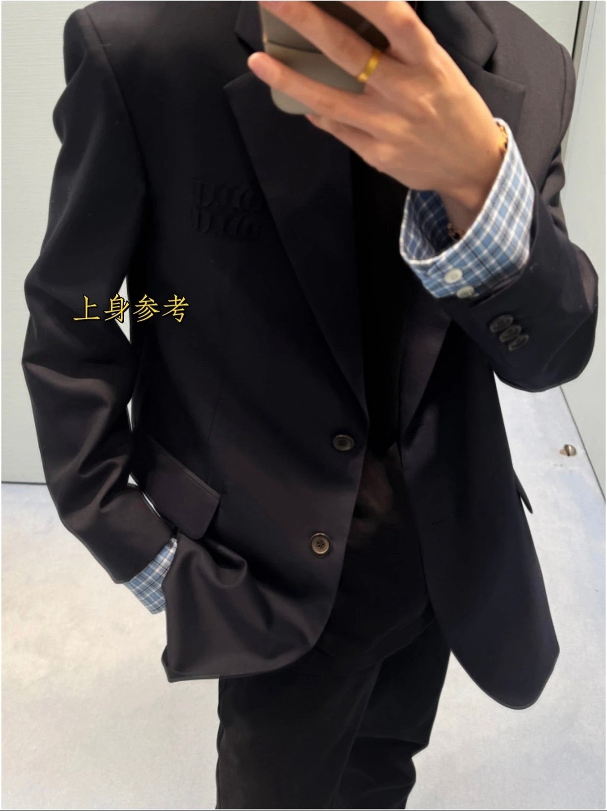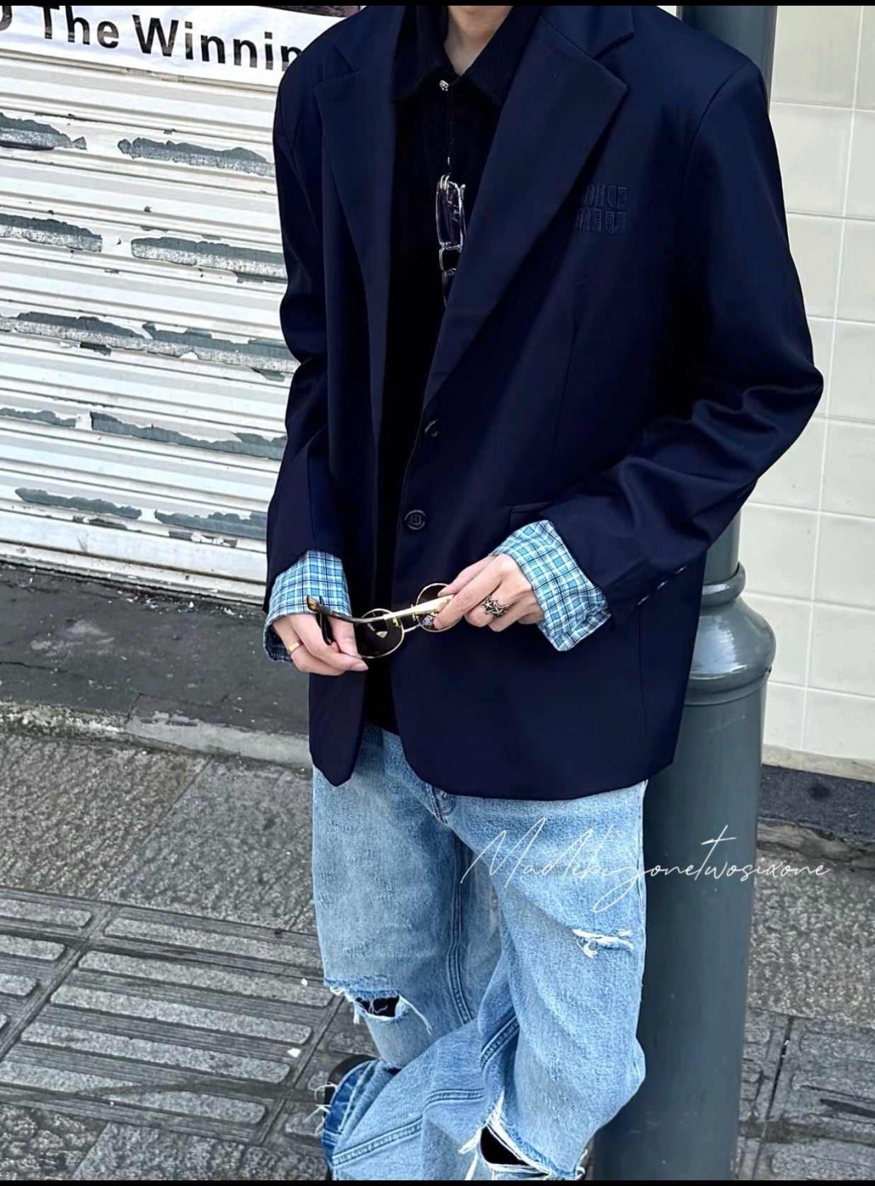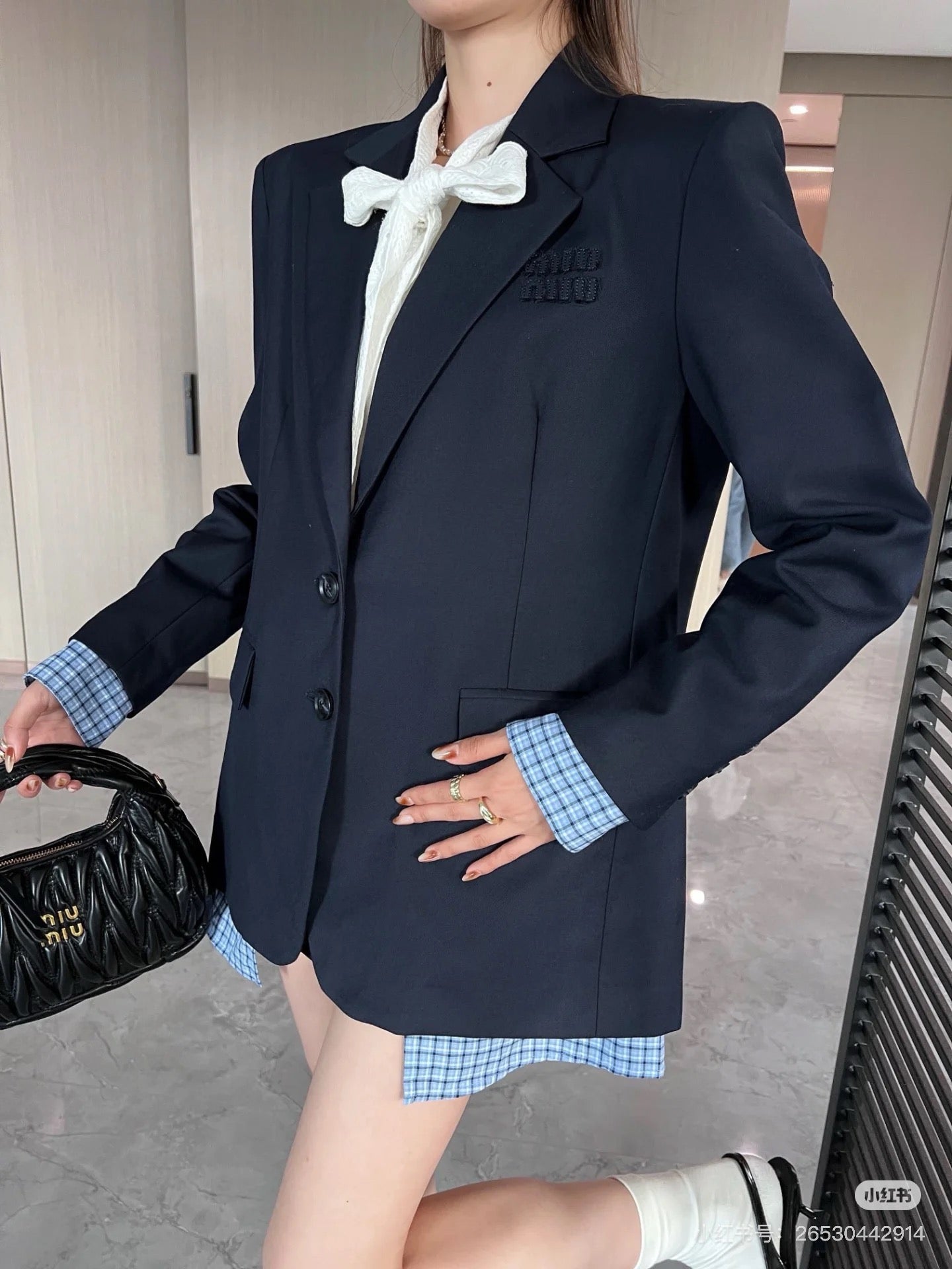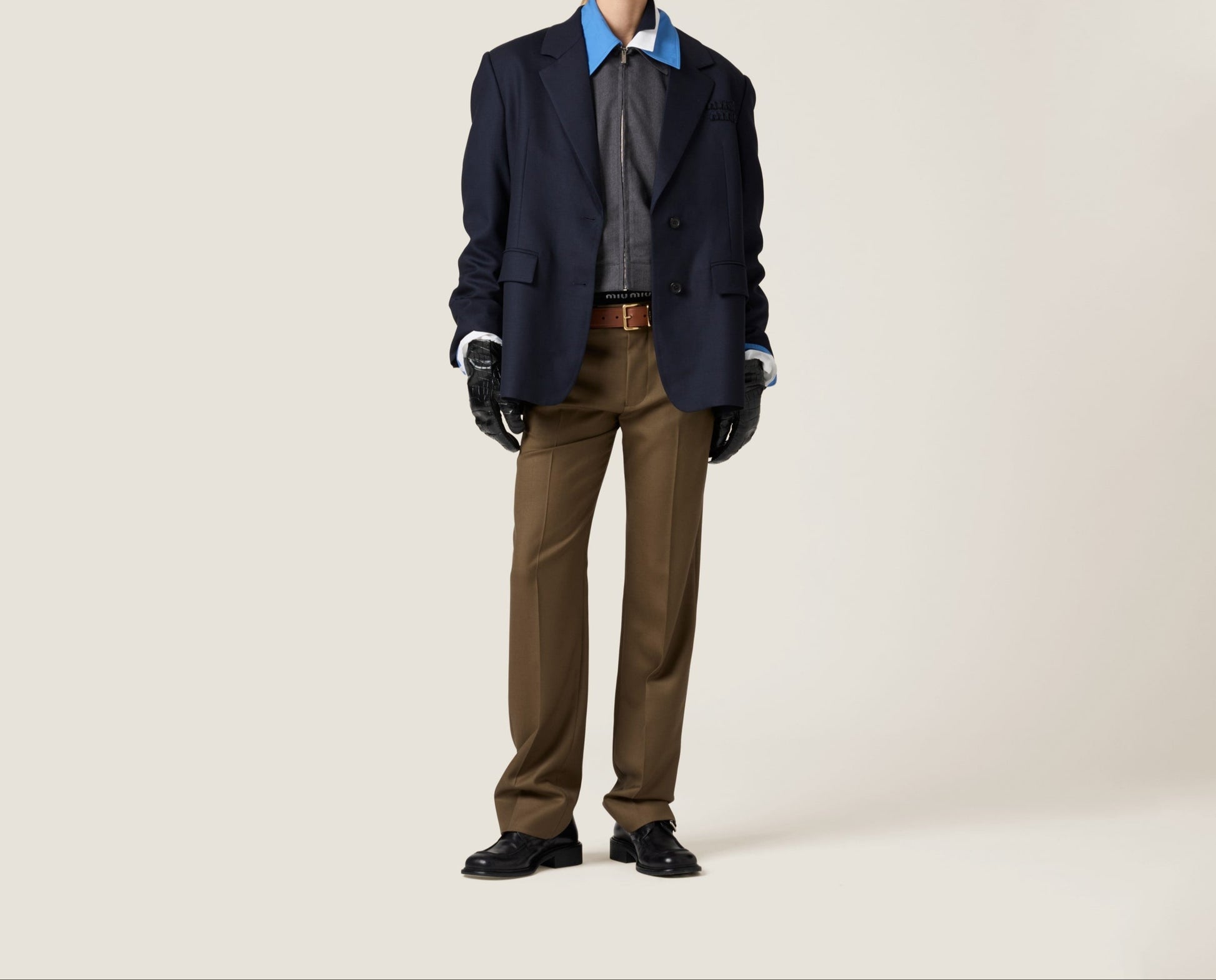 미우 미우 싱글 브레스티드 개버딘 자켓 네이비