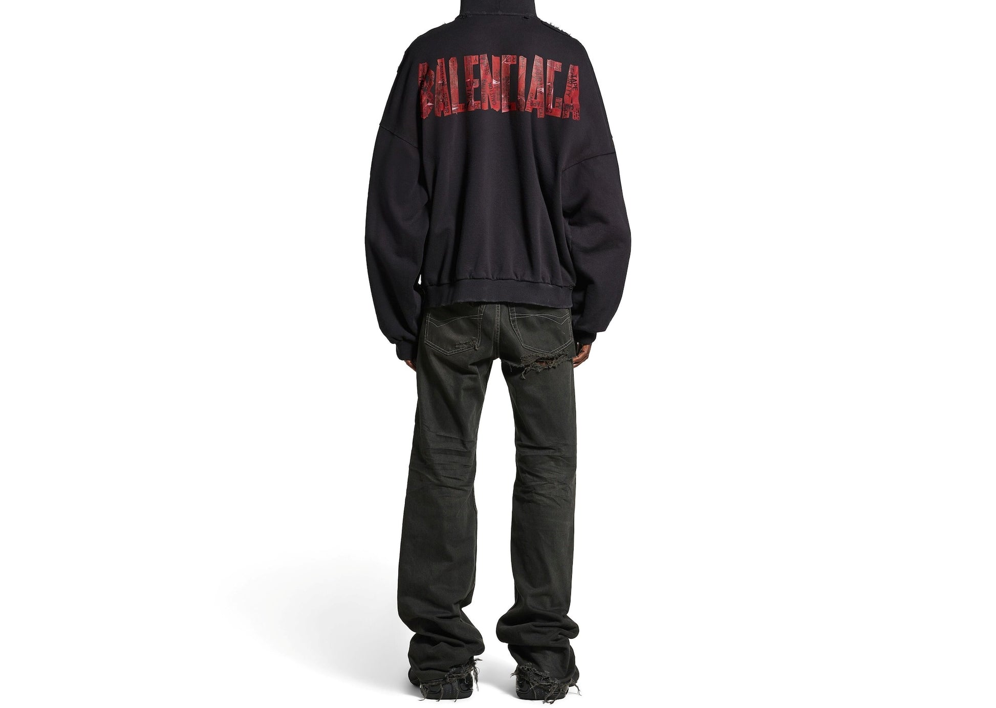 발렌시아가 남성 시큐리티 테이프 로고 라지 집업 후디 페이드