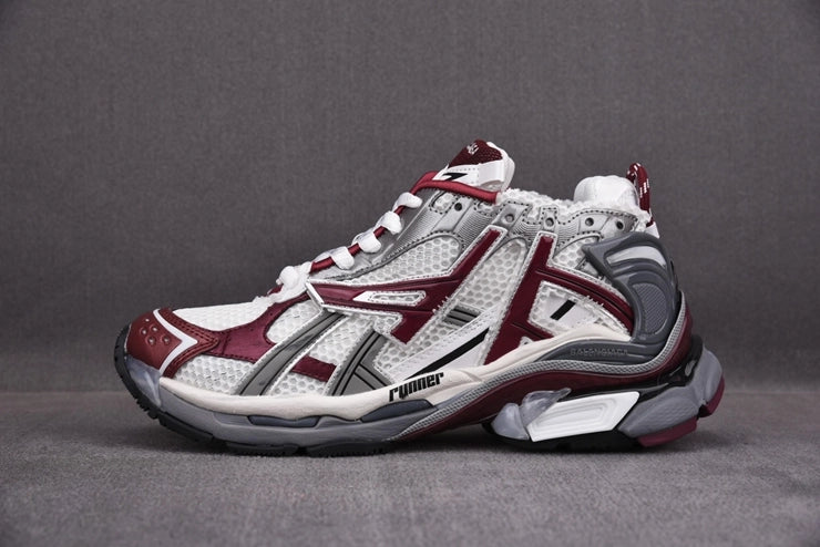 발렌시아가 러너 7 화이트 버건디 스니커즈(Balenciaga Runner 7 White Burgundy Sneakers) - 퍼포먼스와 데일리룩의 조화