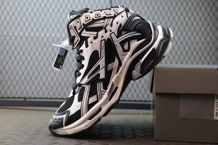 발렌시아가 러너 7 화이트 블랙 하이탑 스니커즈(Balenciaga Runner 7 White Black High-top Sneakers) - 실루엣과 색상의 조화