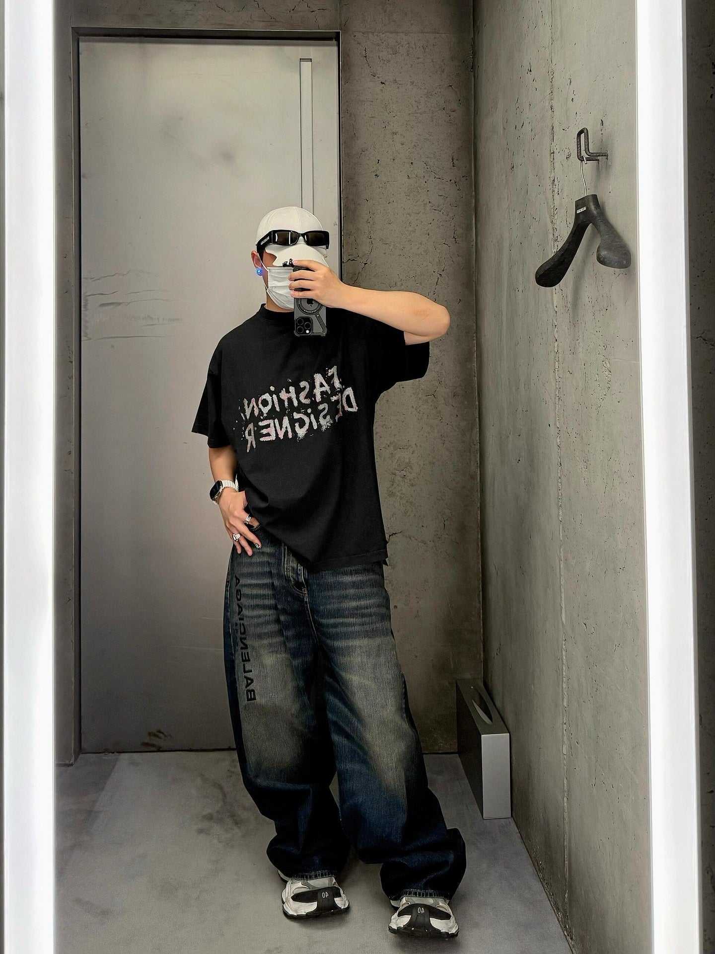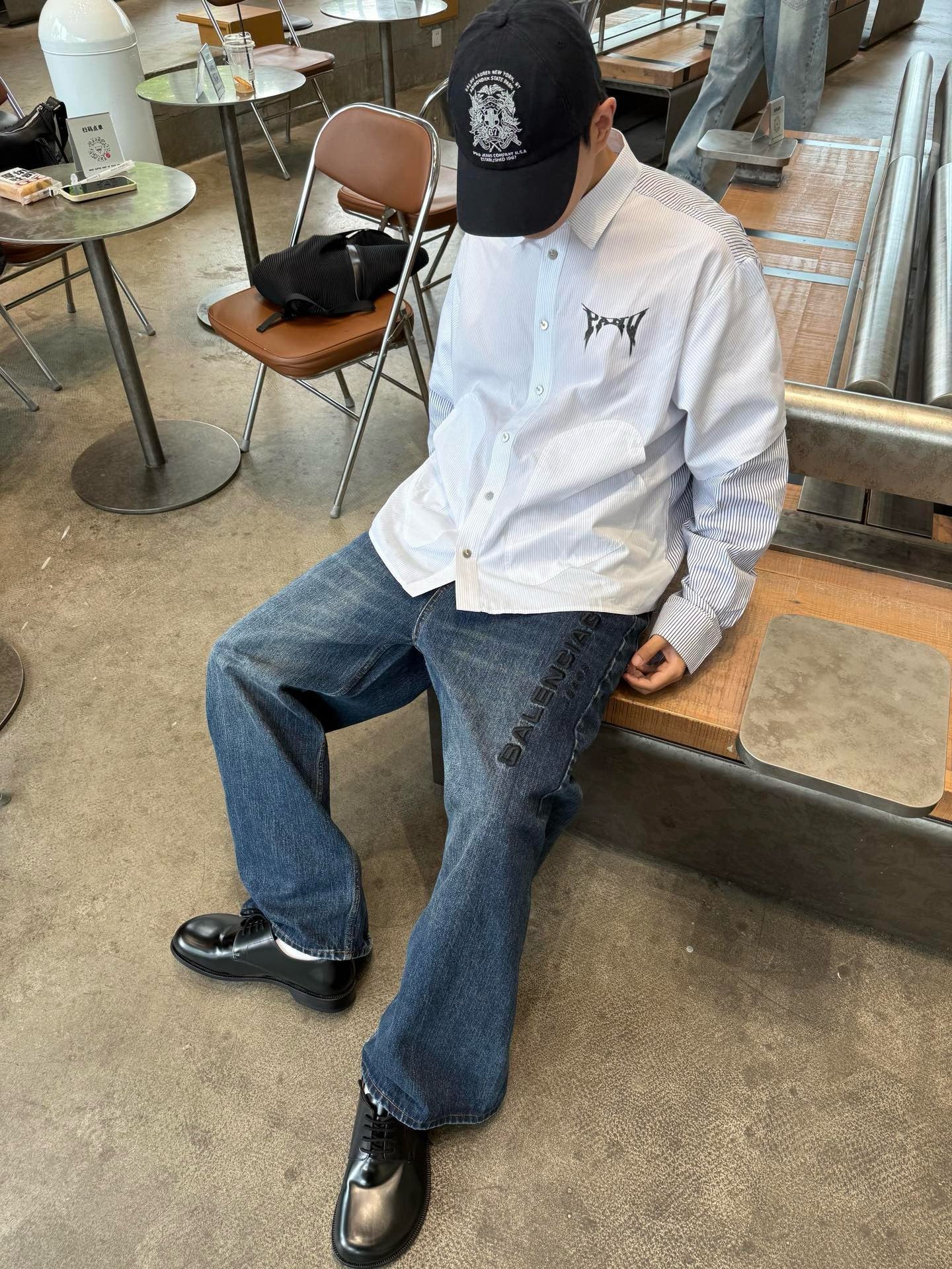발렌시아가 로고 워싱 배기 데님 팬츠