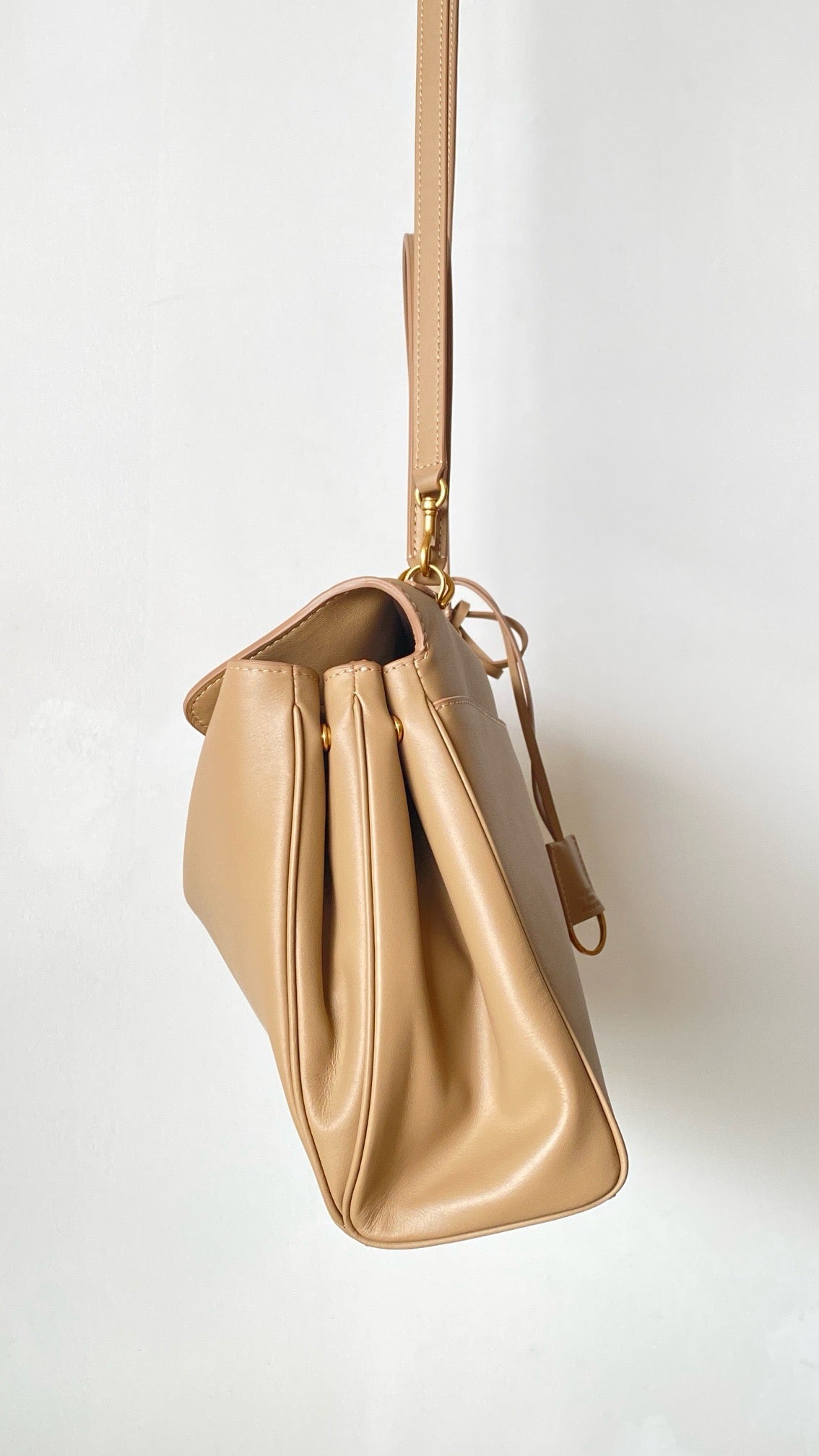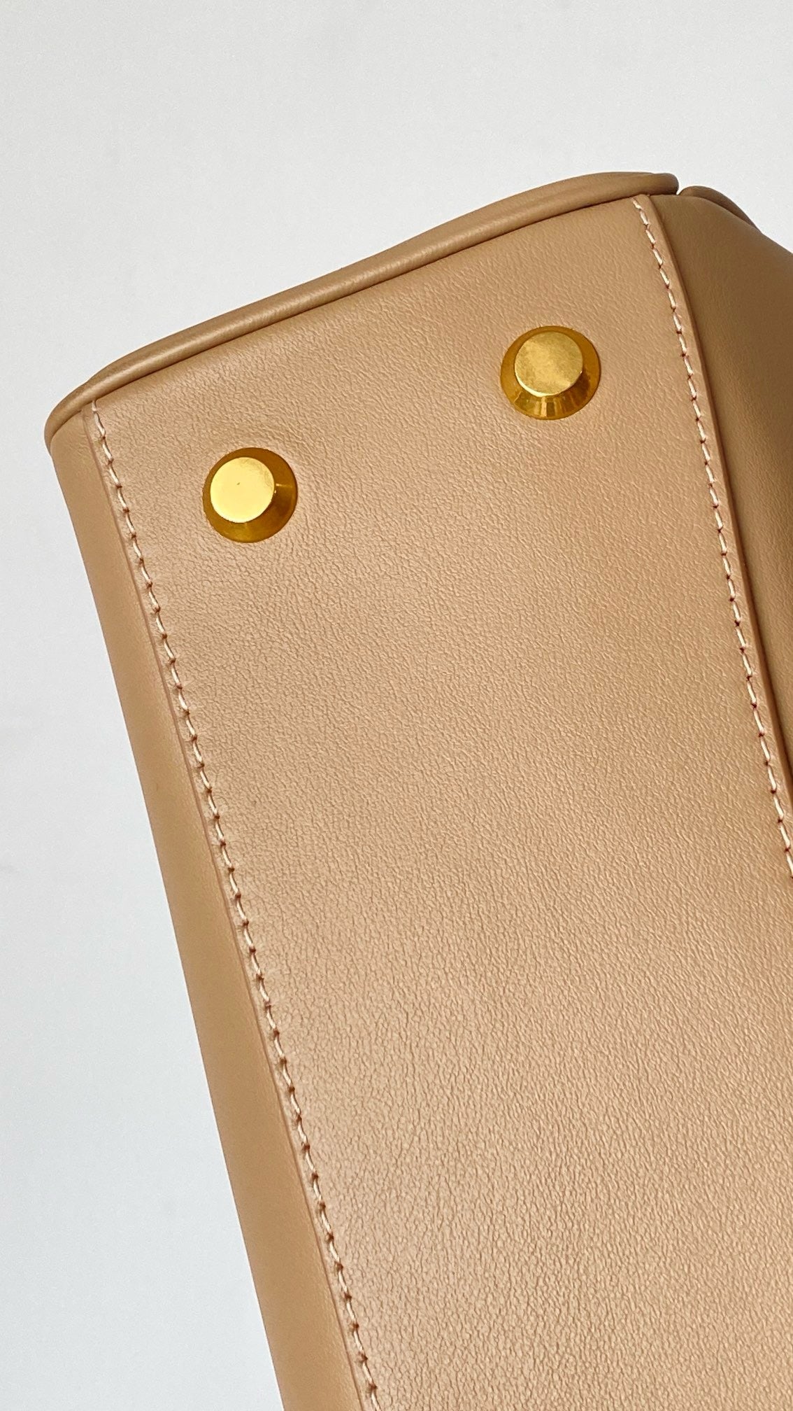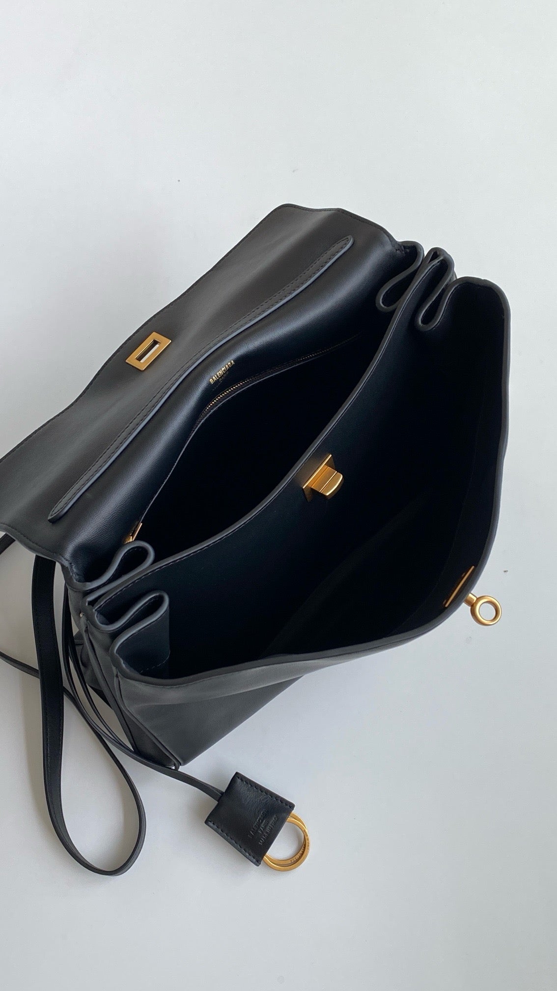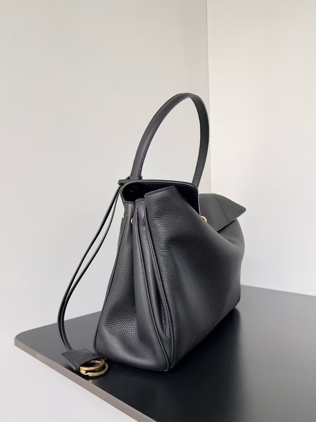 로데오 핸드백은 곡선형의 소프트한 쉐입과 날렵한 라인이 조화를 이루는 독창적인 형태로, 부드러운 가죽 소재 위에 미니멀한 로고 장식과 매트한 하드웨어 디테일이 조화롭게 어우러집니다. 미디움 사이즈는 데일리백으로 적절하며, 견고한 구조로 실용성과 스타일을 동시에 만족시킵니다.