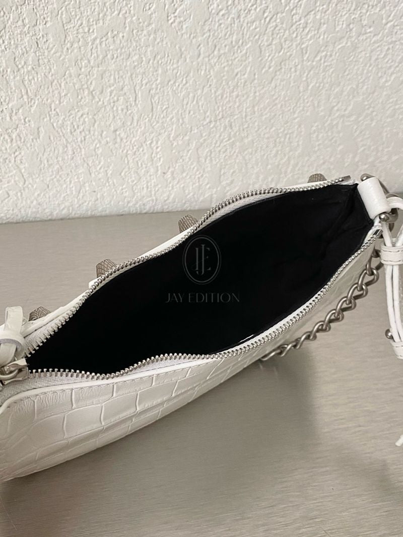 미니백이지만 지퍼 포켓, 내부 공간, 그리고 탈부착 가능한 하트 미러 참 등 다양한 디테일이 구성되어 있어 실용성 또한 뛰어납니다. 스트랩 길이는 조절 가능하여 숄더백 또는 크로스백으로 자유롭게 연출할 수 있습니다.