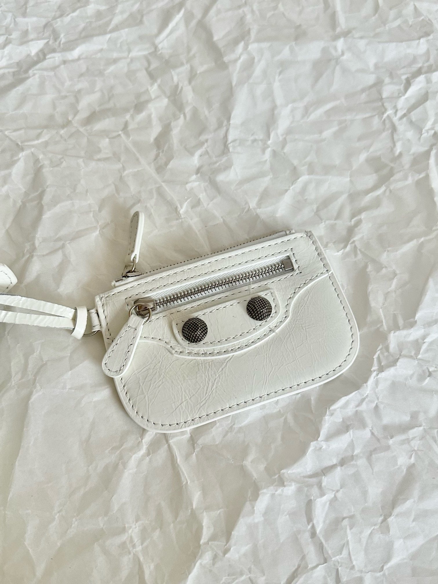작은 지갑, 카드홀더, 립스틱, 무선 이어폰 등 필수 아이템 위주로 수납이 가능하며, 실용성을 갖춘 미니백입니다.