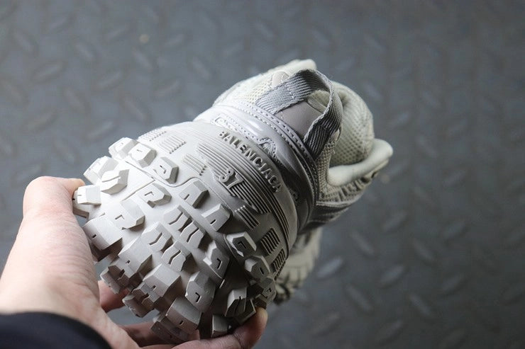 베이지 컬러는 따뜻하고 부드러운 인상을 주며, 발렌시아가 바운서 특유의 입체적인 실루엣과 어우러져 안정감 있는 디자인을 완성합니다. 메시와 합성 섬유를 활용한 갑피는 다양한 텍스처감을 더하며, 두꺼운 러버 아웃솔은 전체적인 균형감을 제공합니다.