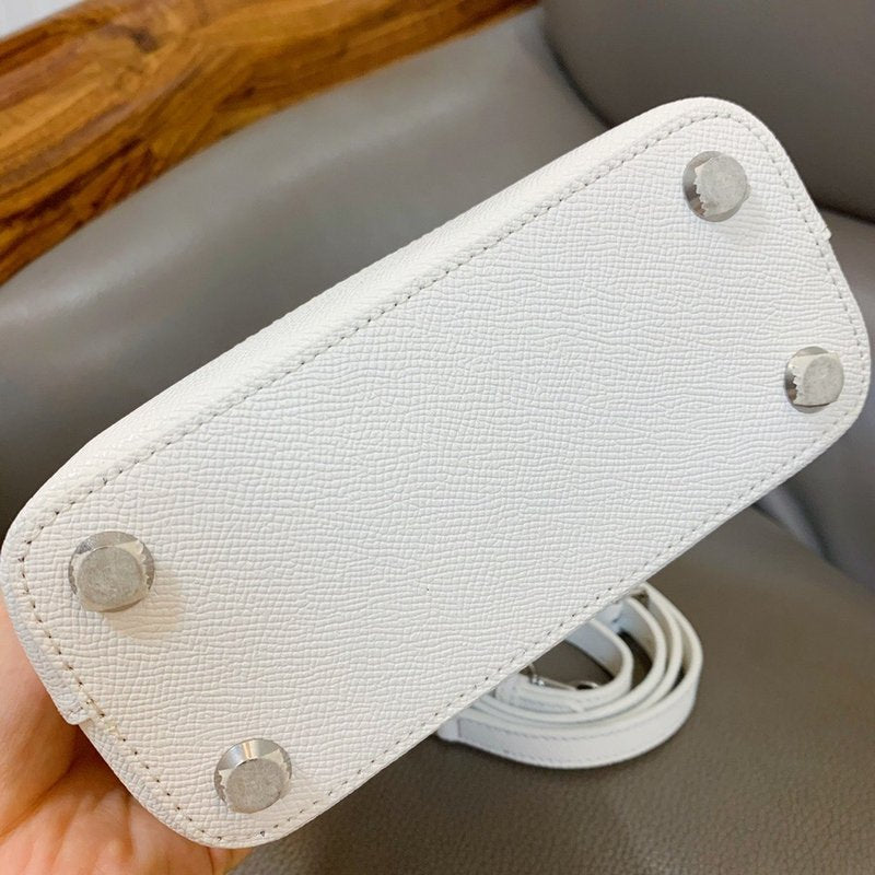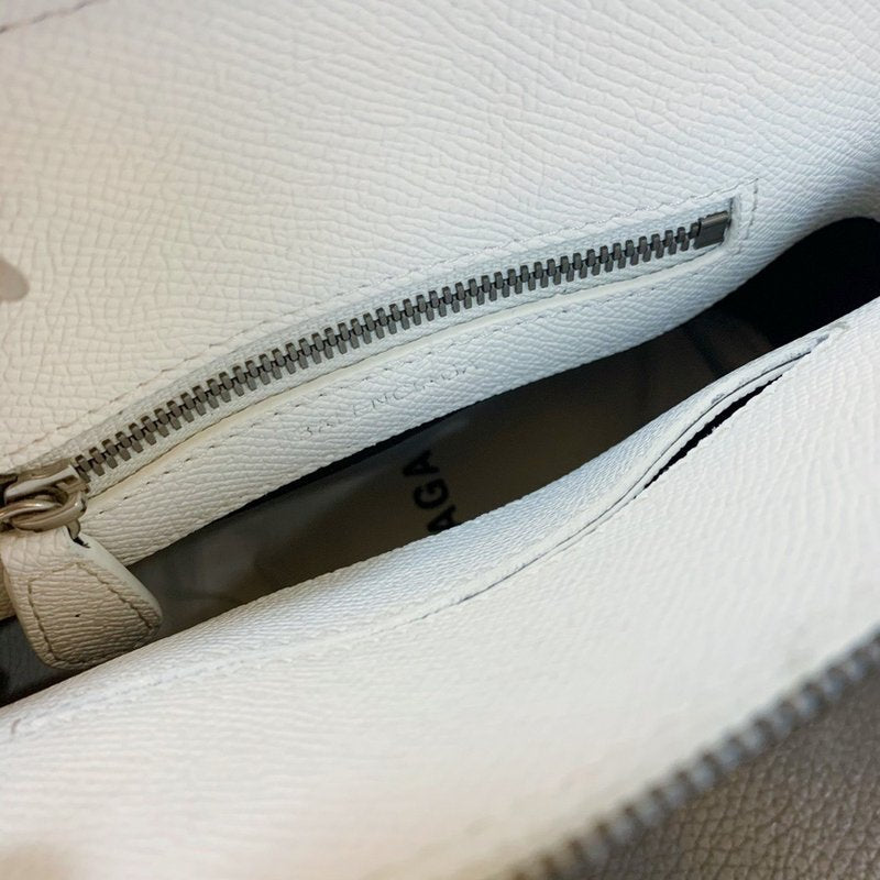 정사각형에 가까운 구조와 부드러운 곡선의 상단 라인이 특징으로, 발렌시아가 로고가 프론트에 심플하게 프린팅되어 브랜드 아이덴티티를 강조합니다. 구조감 있는 실루엣으로 안정감 있게 들 수 있으며, 부드러운 가죽 질감이 손에 닿는 촉감을 한층 고급스럽게 만들어 줍니다.