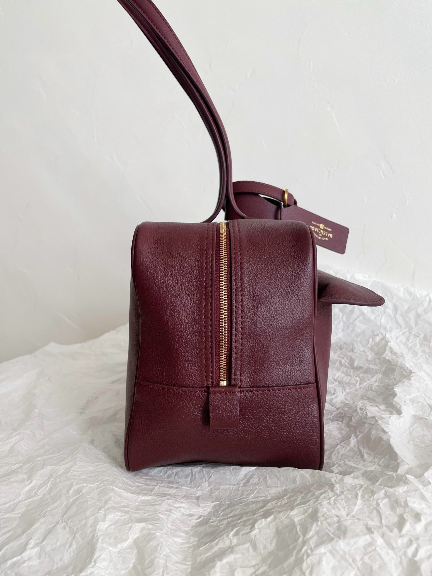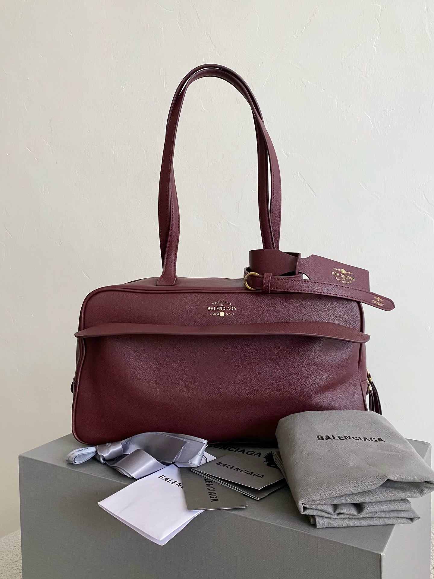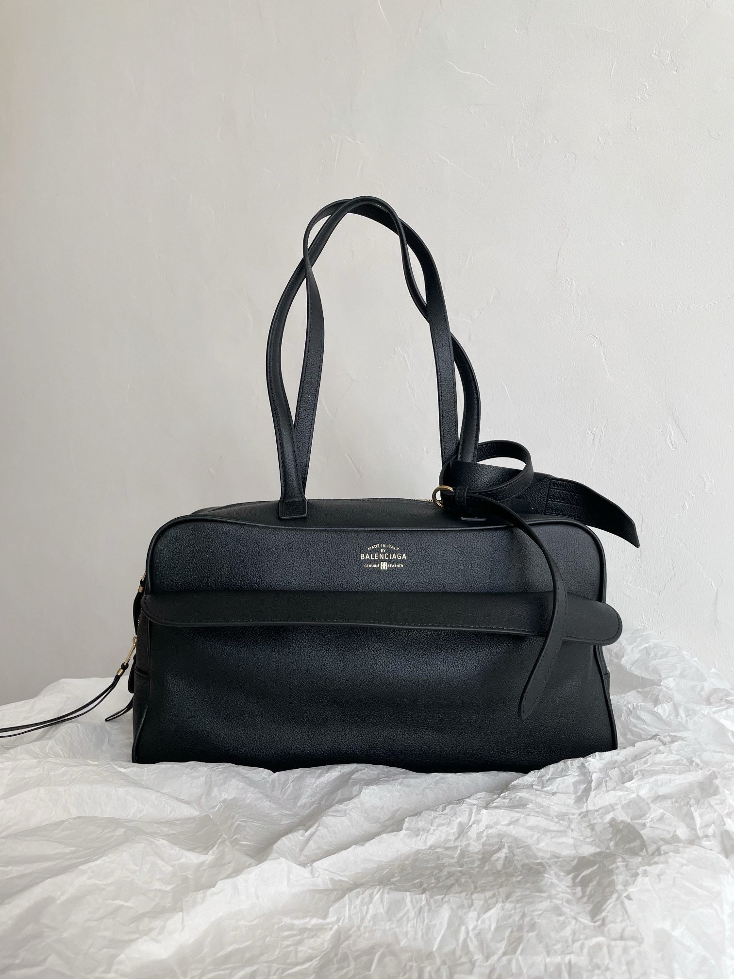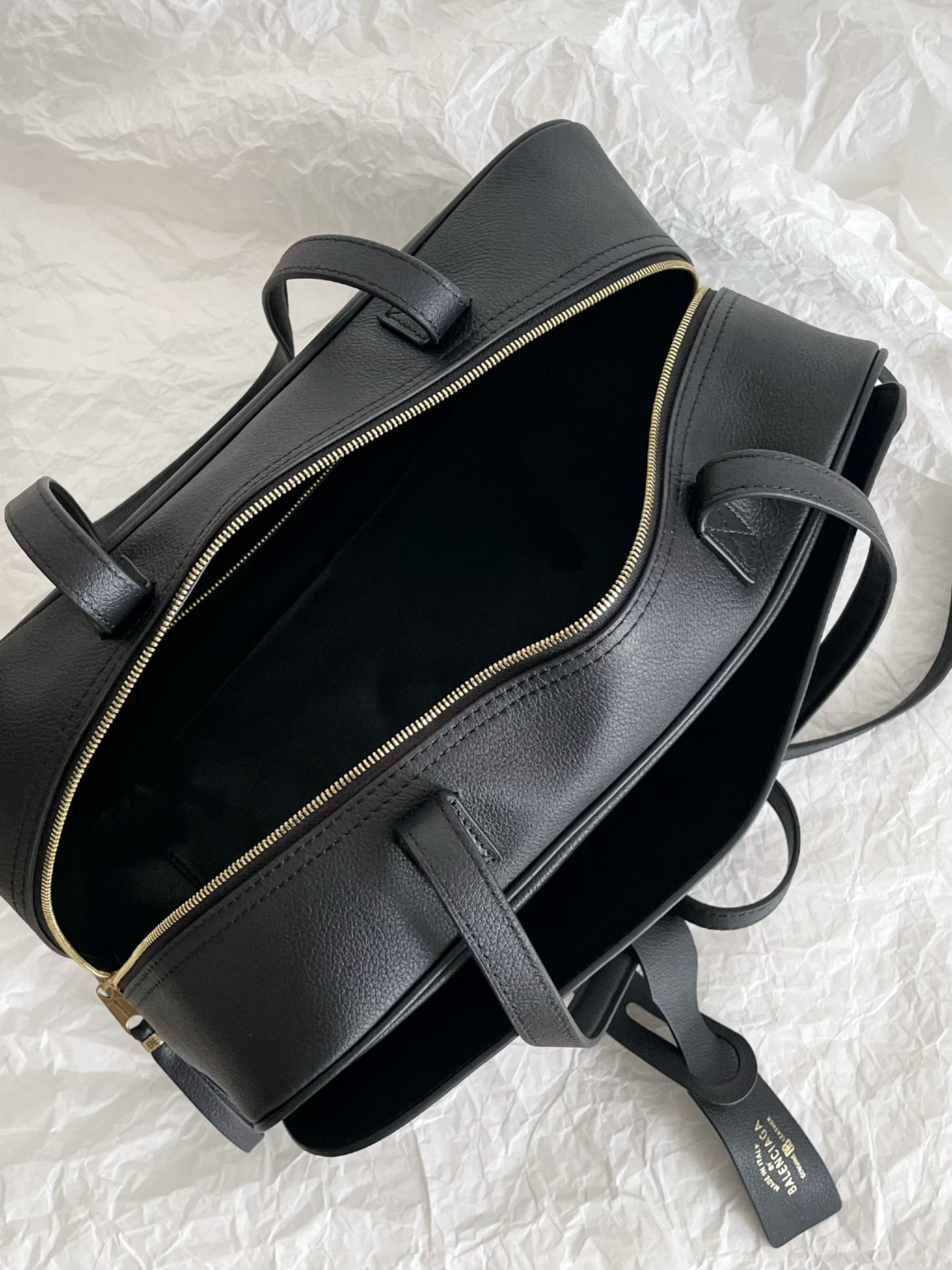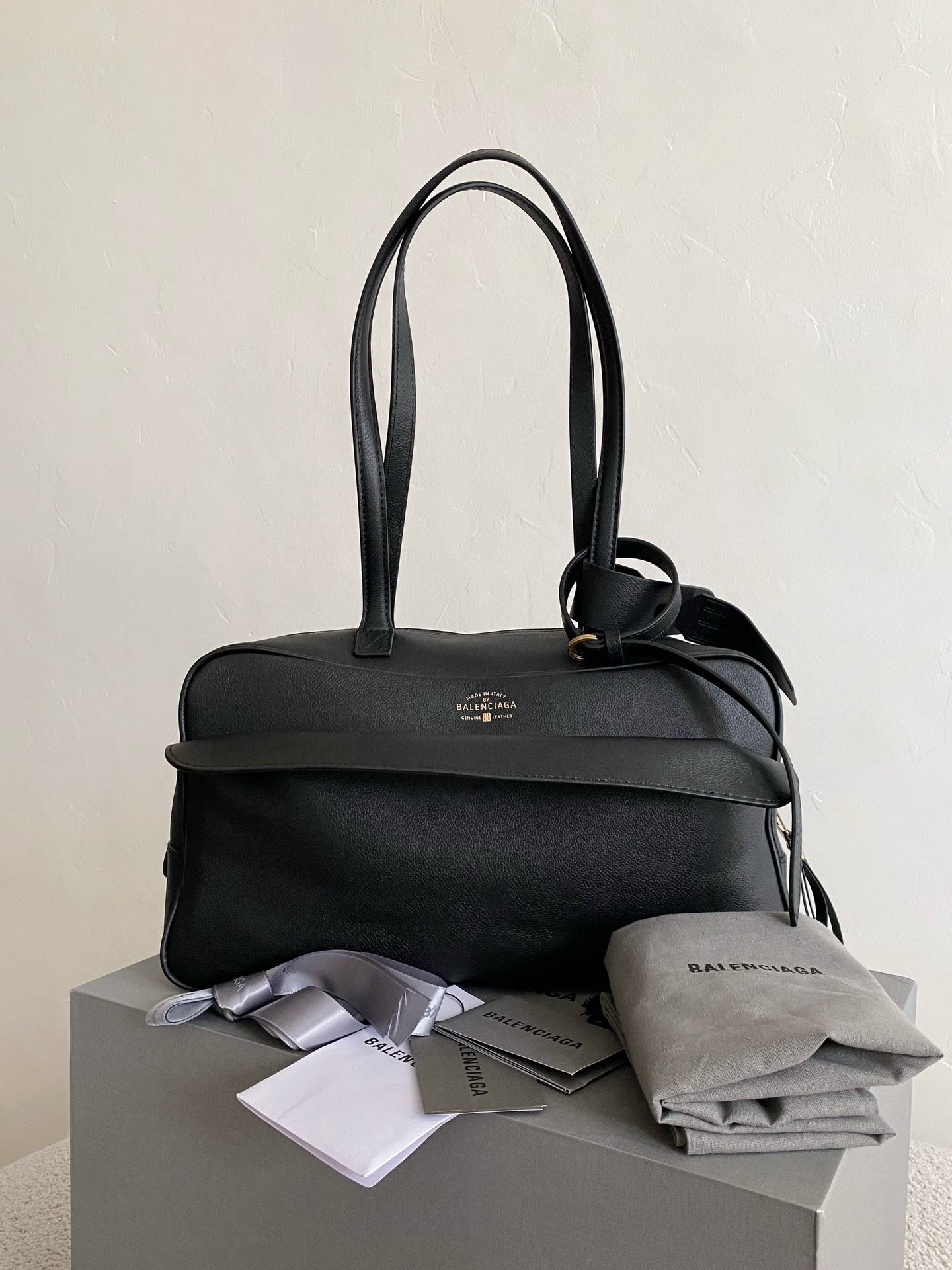 발렌시아가 캐리 레더 미디움 볼링백