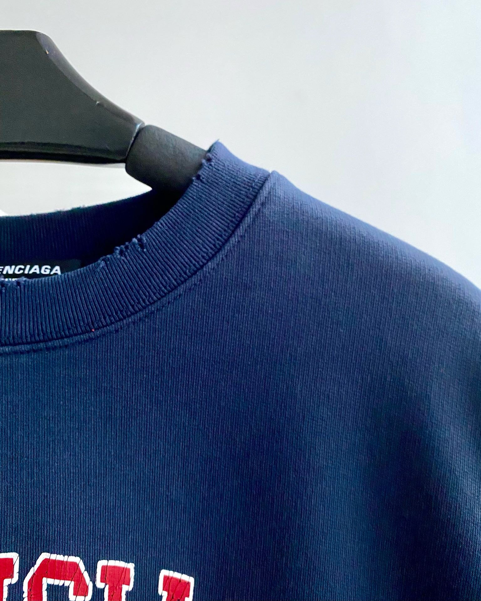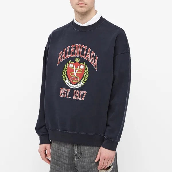 발렌시아가 코튼 컬리지 로고 크루넥 스웨트셔츠