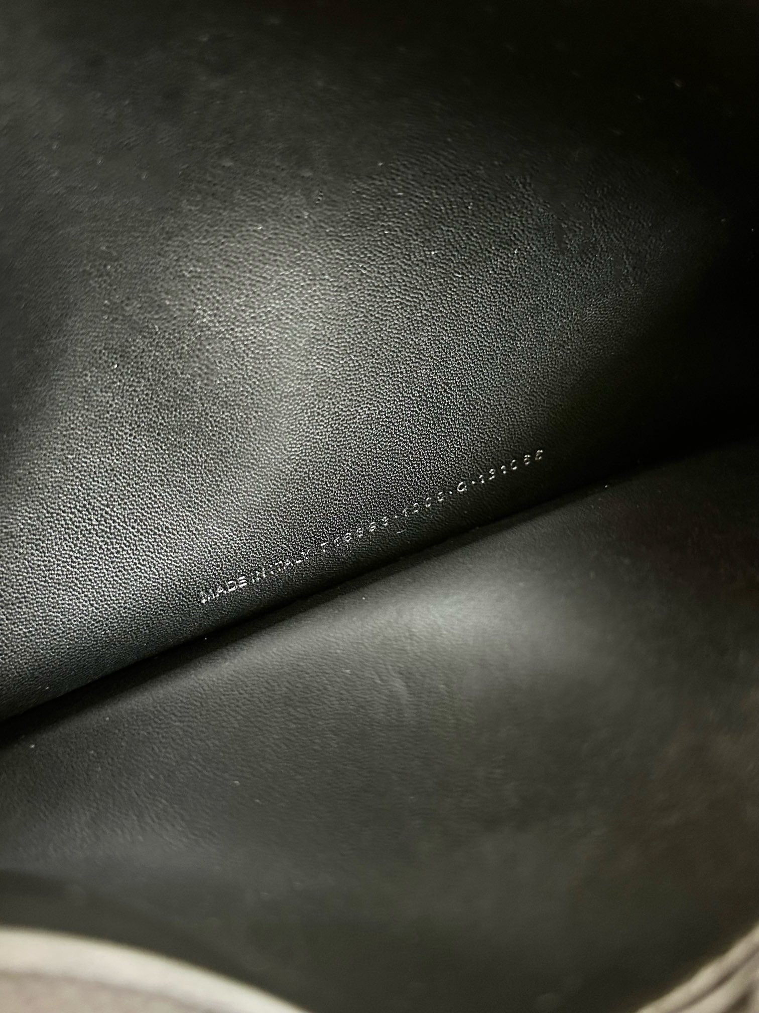 미디움 사이즈는 포멀한 룩에도 캐주얼 룩에도 적절하게 어우러지며, 특히 뉴트럴 톤의 의상과 함께 매치하면 고급스러운 분위기를 강조할 수 있습니다. 실버 또는 골드 체인과 블랙 가죽의 조합은 모던하면서도 감각적인 스타일링을 완성해 줍니다.