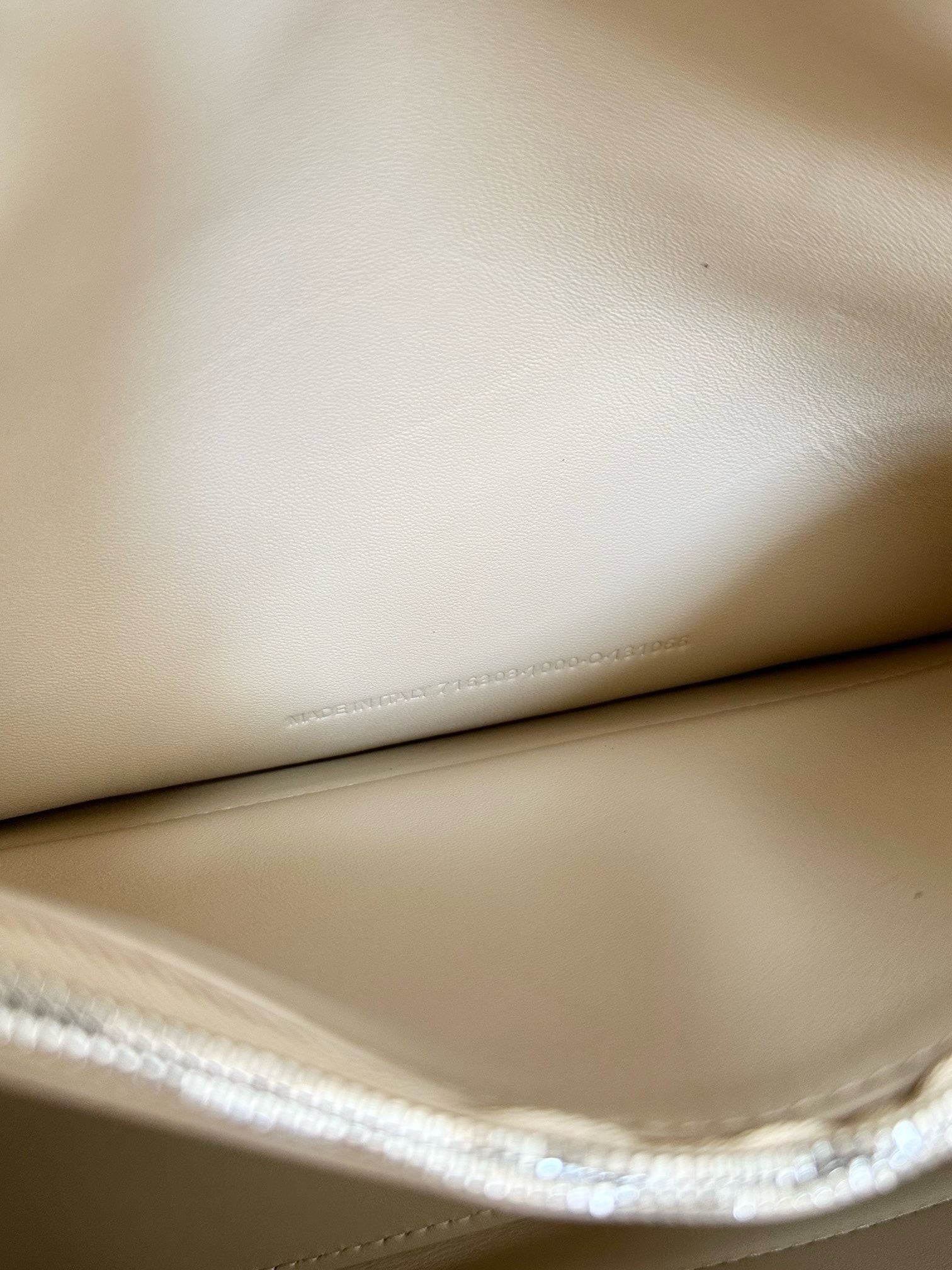 크러쉬 백 특유의 말랑한 형태감과 부드러운 송아지 가죽 소재는 착용자의 움직임에 따라 유연하게 변화하며 자연스러운 멋을 더합니다. 미디움 사이즈는 적당한 수납공간과 휴대성을 갖추어 데일리 백으로 사용하기에 적합합니다. 독특한 실루엣과 대담한 퀼팅 패턴, 메탈 B 로고 장식이 발렌시아가만의 감각을 담고 있습니다.