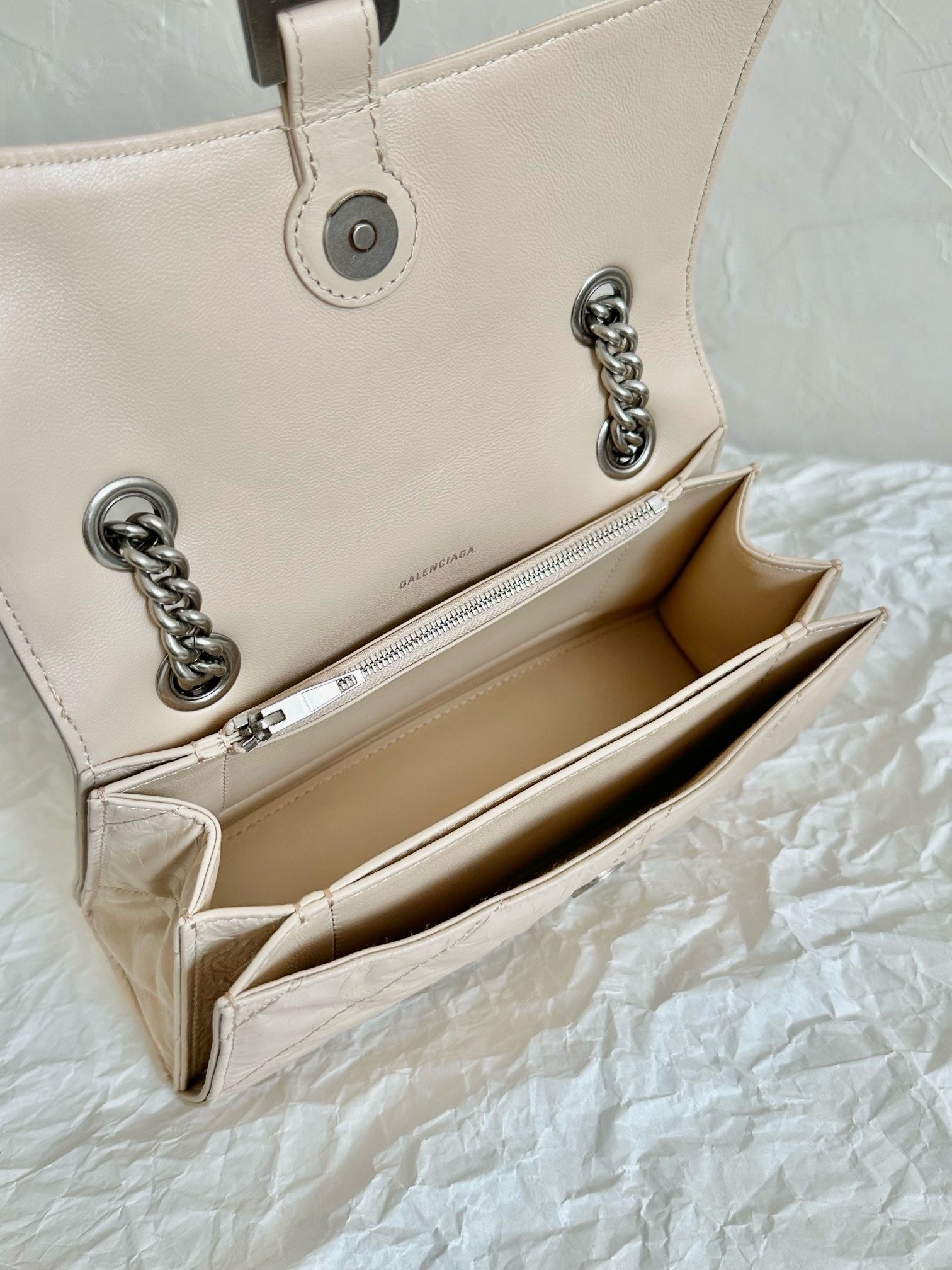 발렌시아가 크러쉬 체인 퀄티드 숄더백 스몰(Balenciaga Crush Chain Quilted Shoulder Bag Small) 사이즈 및 소재