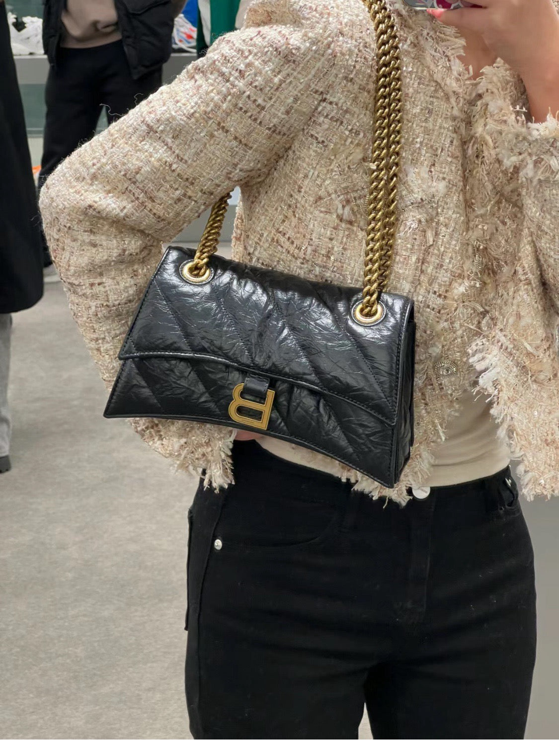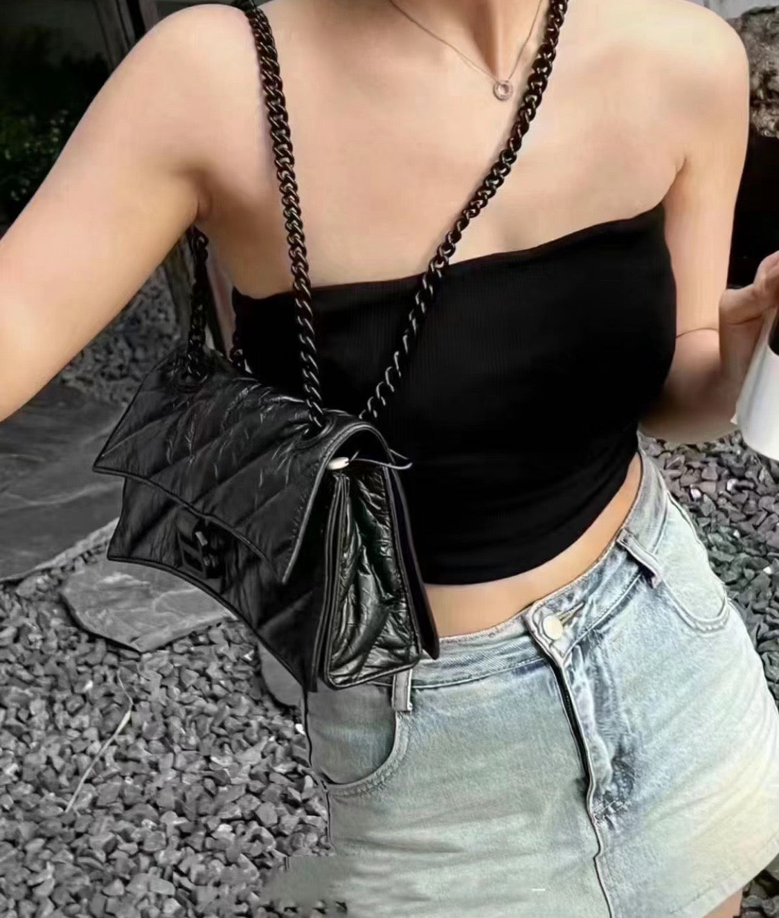 발렌시아가 크러쉬 체인 퀄티드 숄더백 스몰(Balenciaga Crush Chain Quilted Shoulder Bag Small) - 다양한 착용 스타일